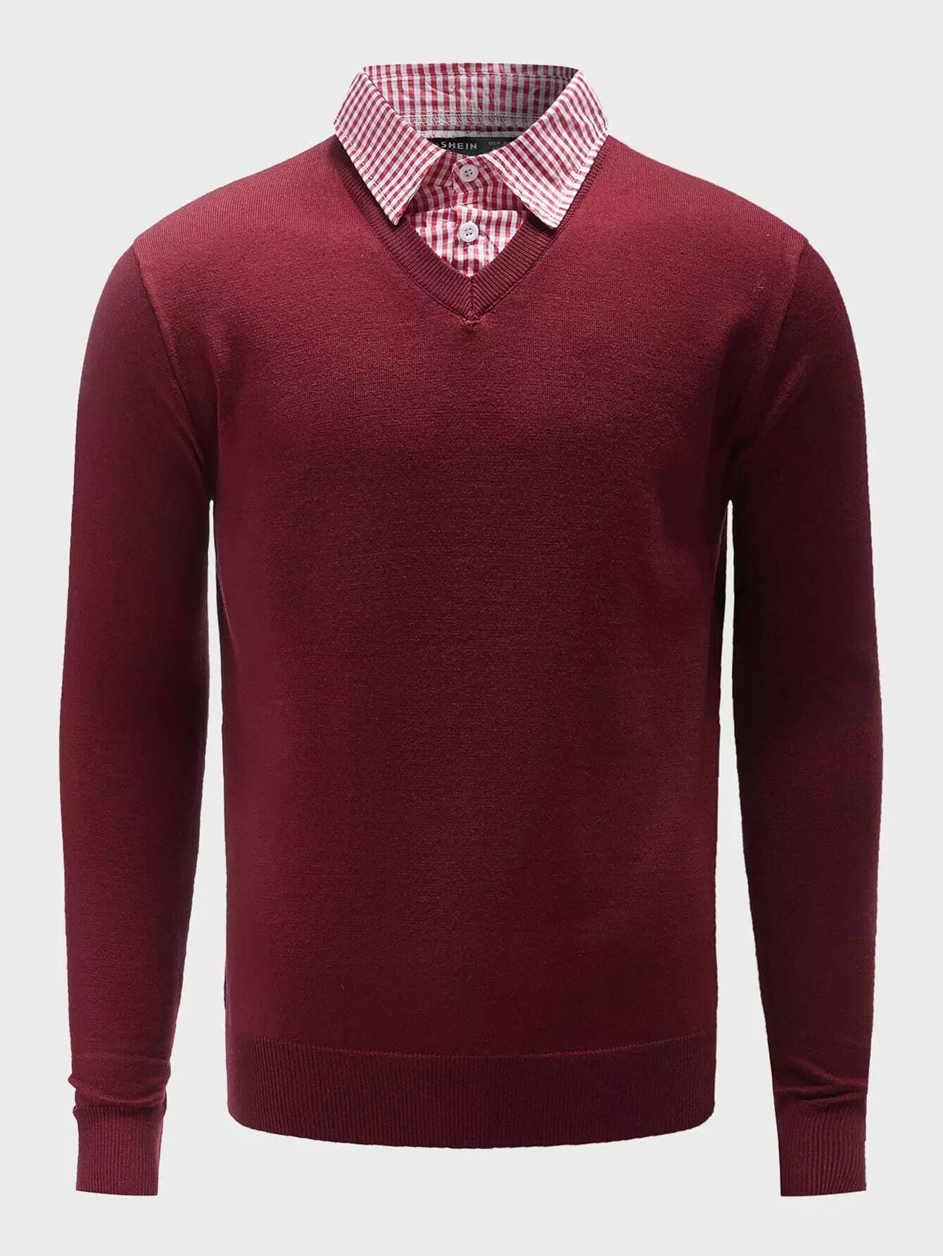 سترة رجالية بياقة مخططة بلون متباين 2 في 1