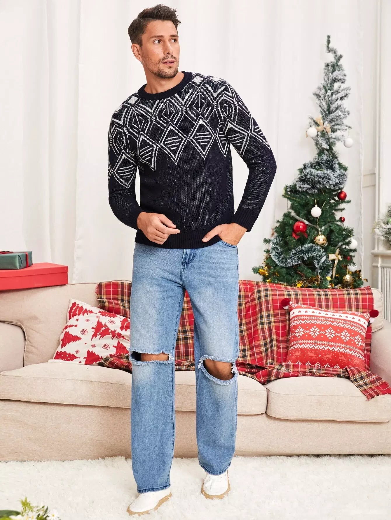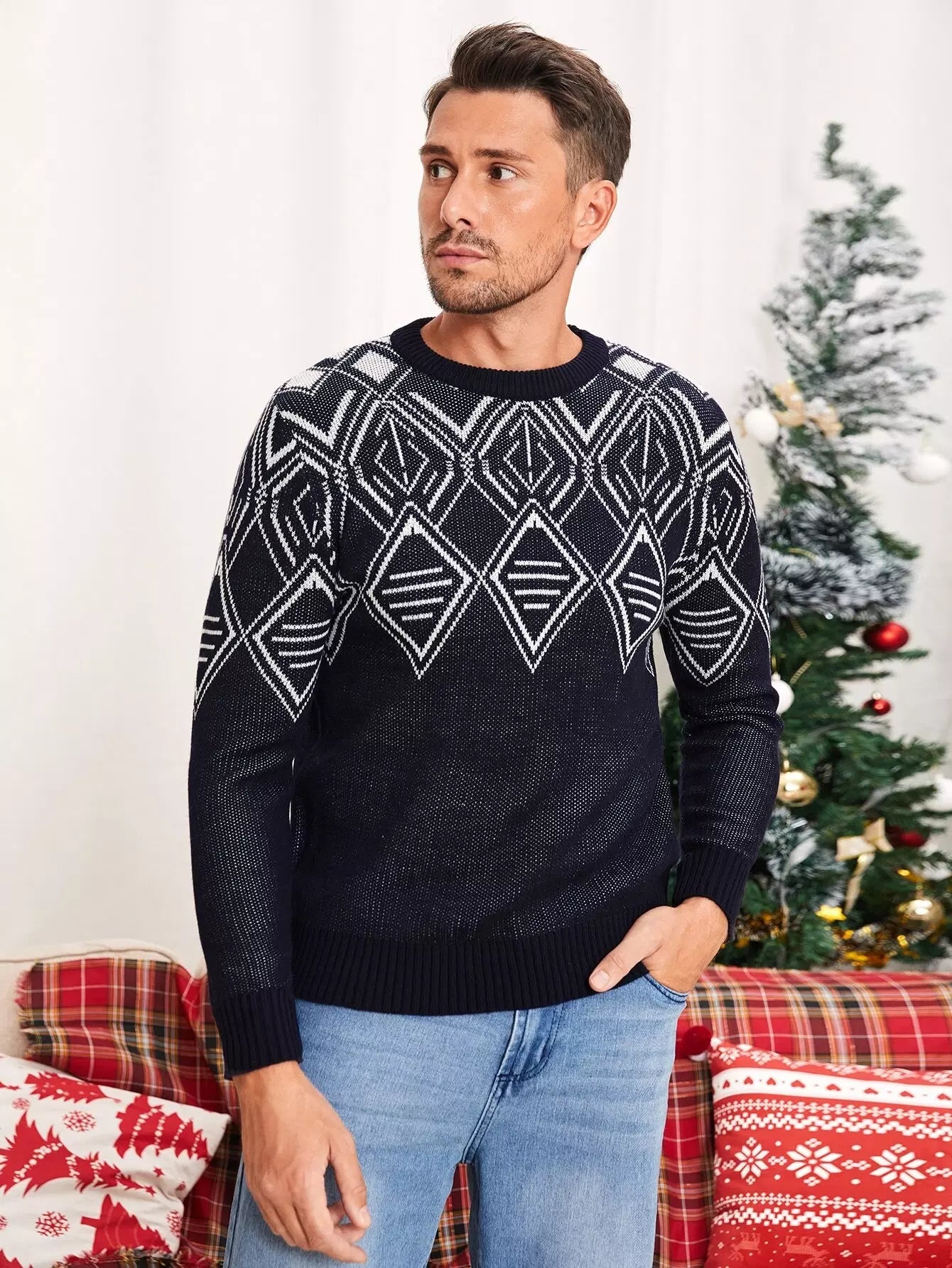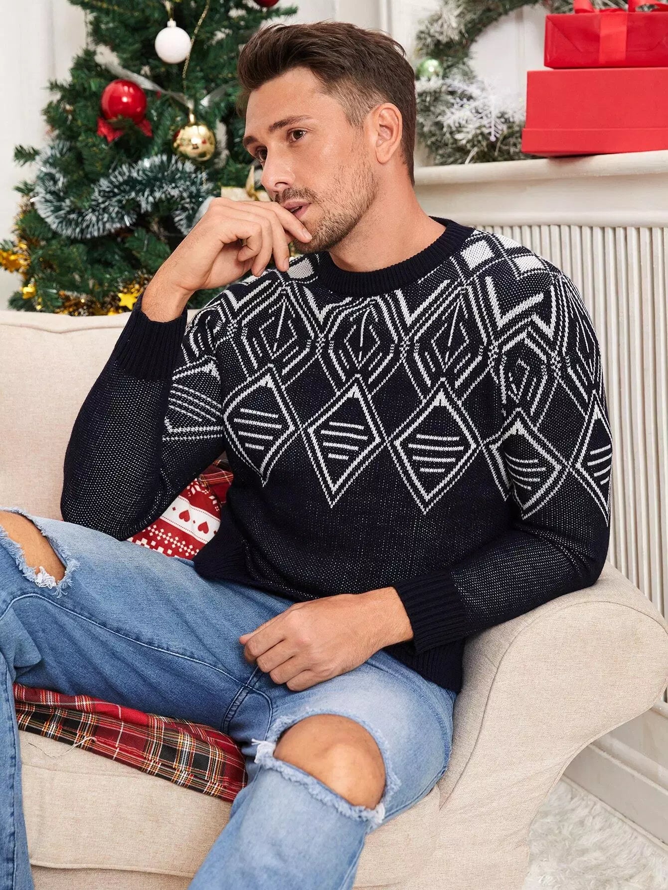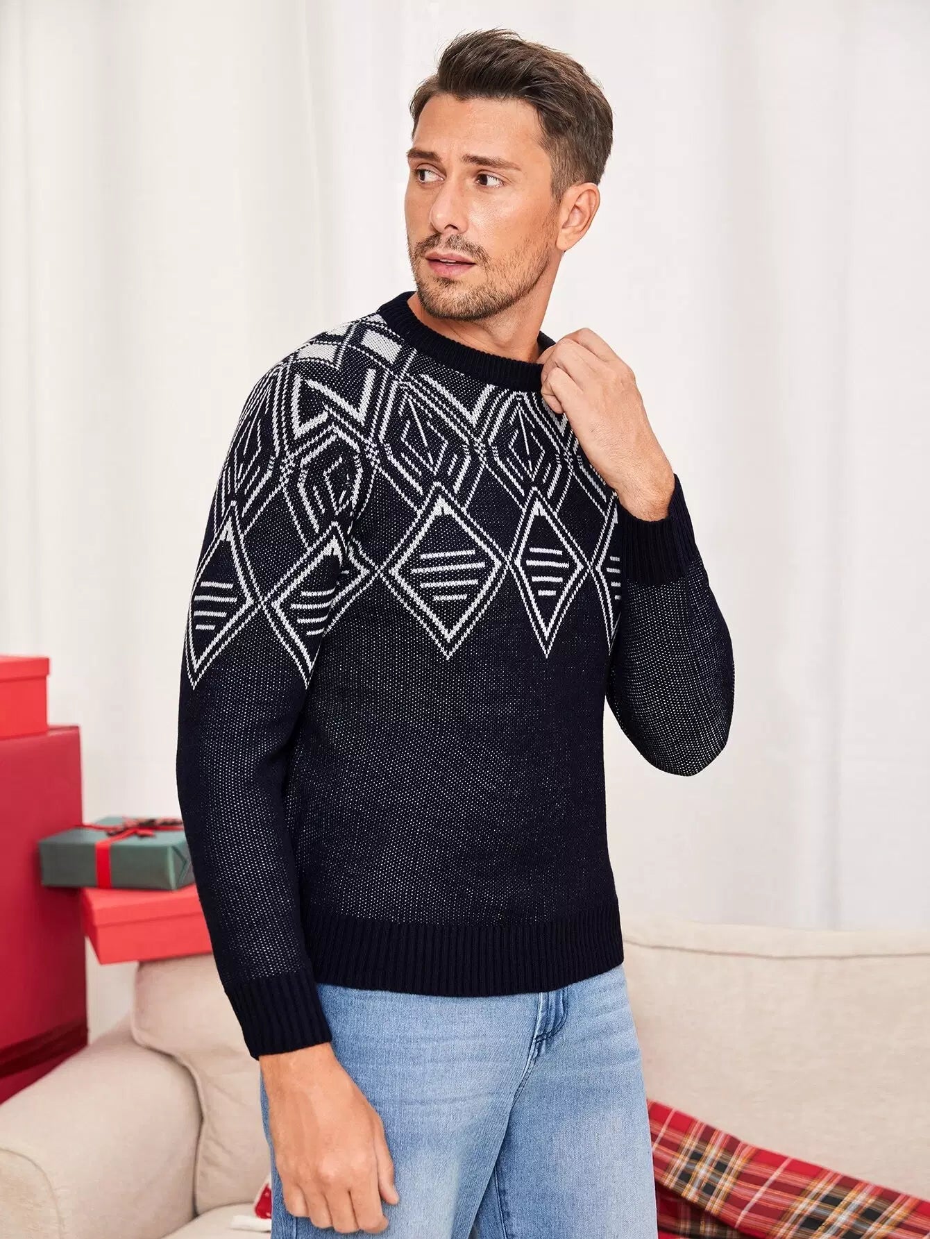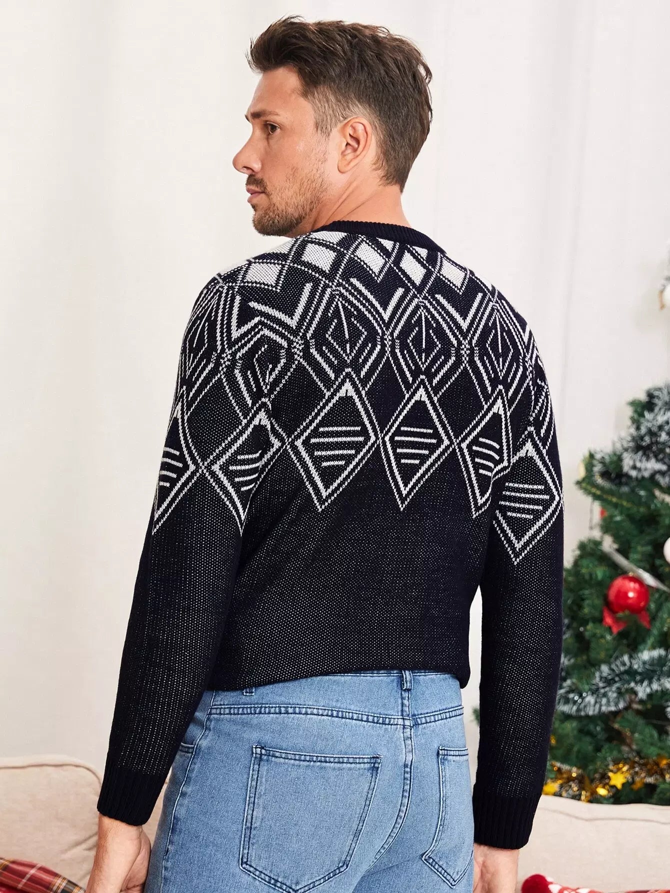 الرجال - سترة رجالية بنمط Geo & Argyle