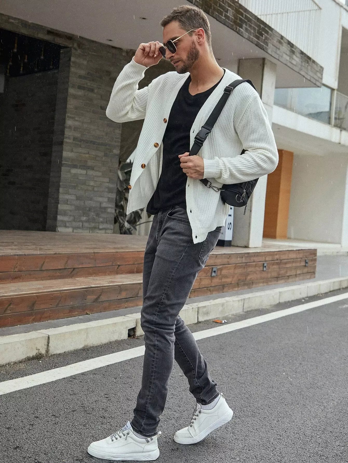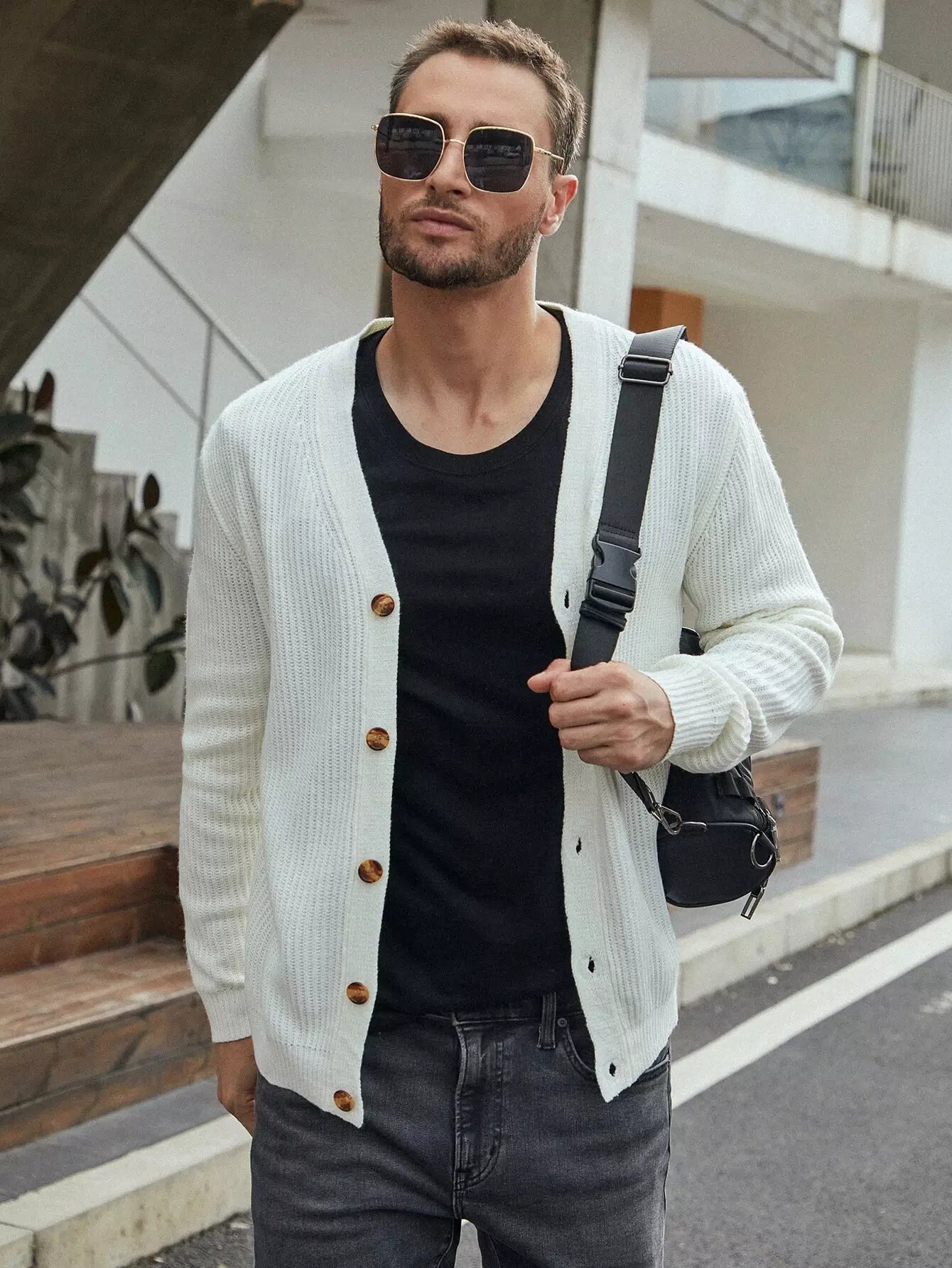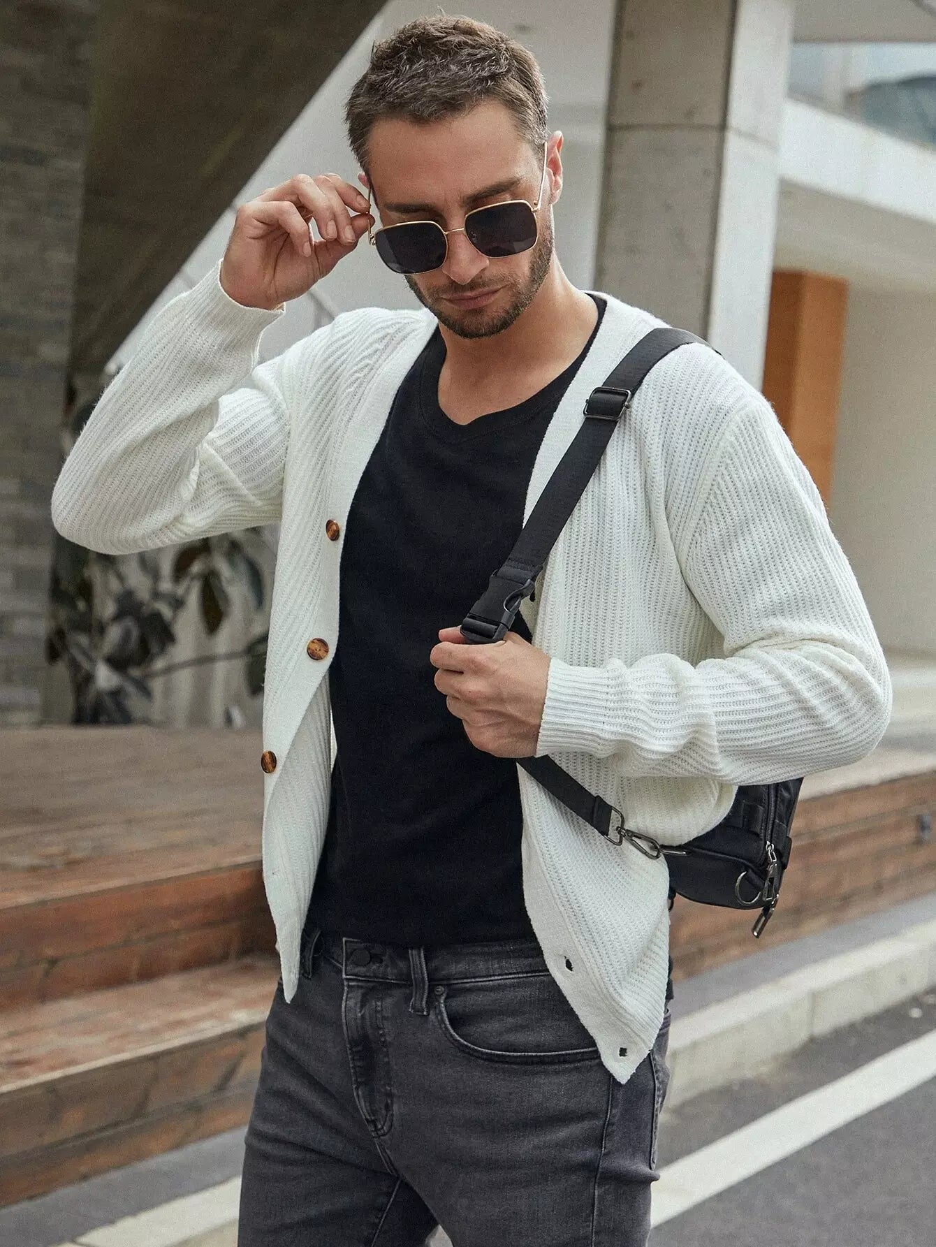 كارديجان سادة محبوك بأزرار أمامية مضلعة للرجال