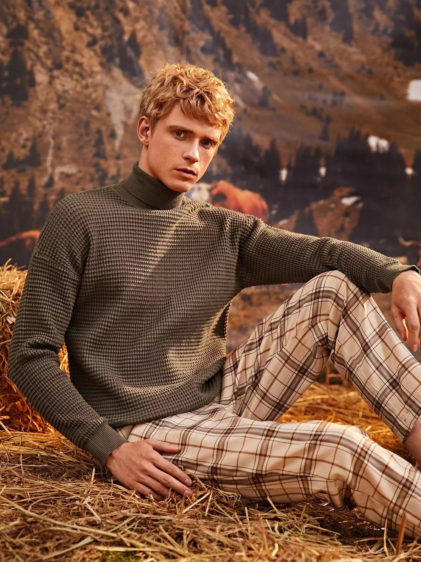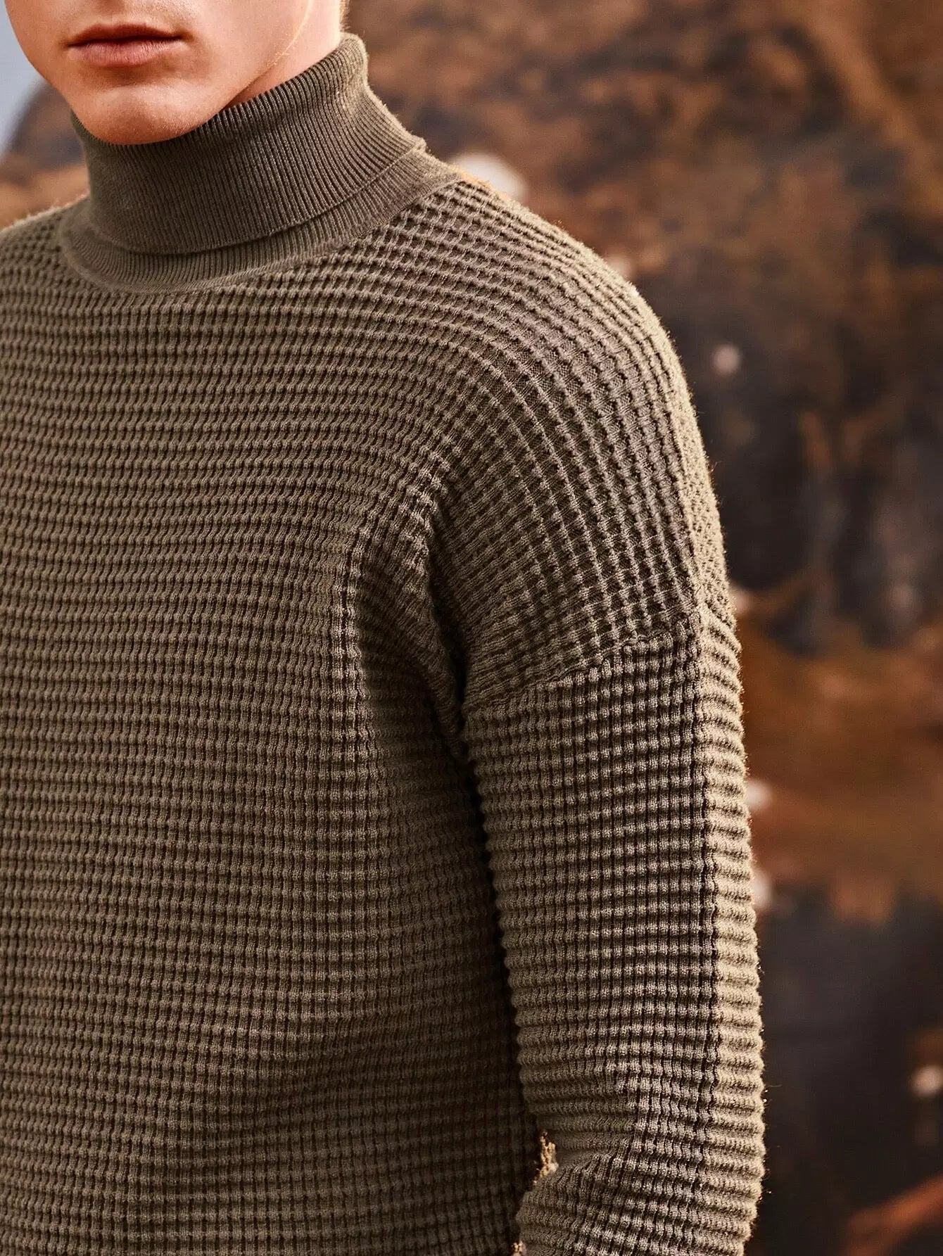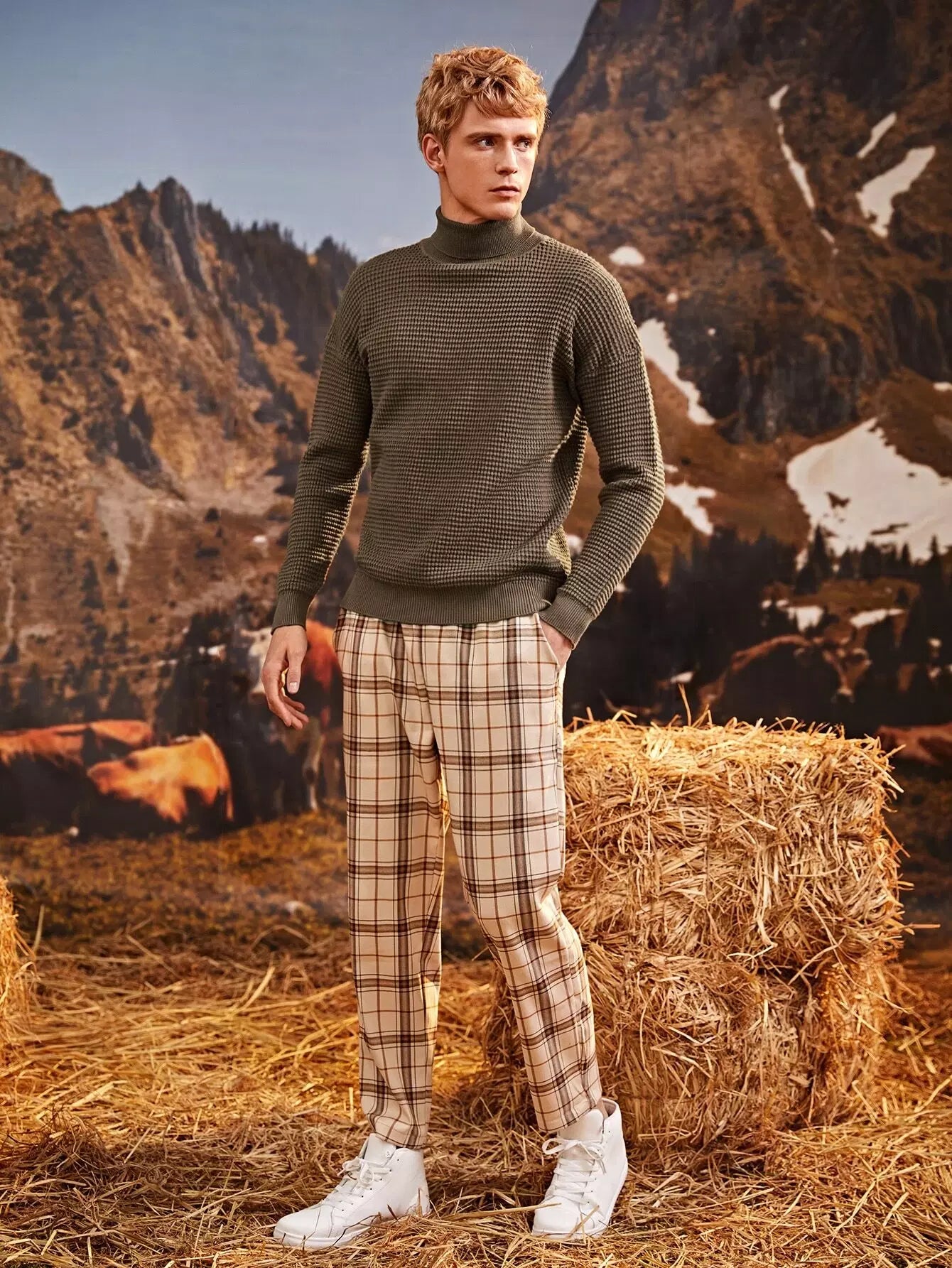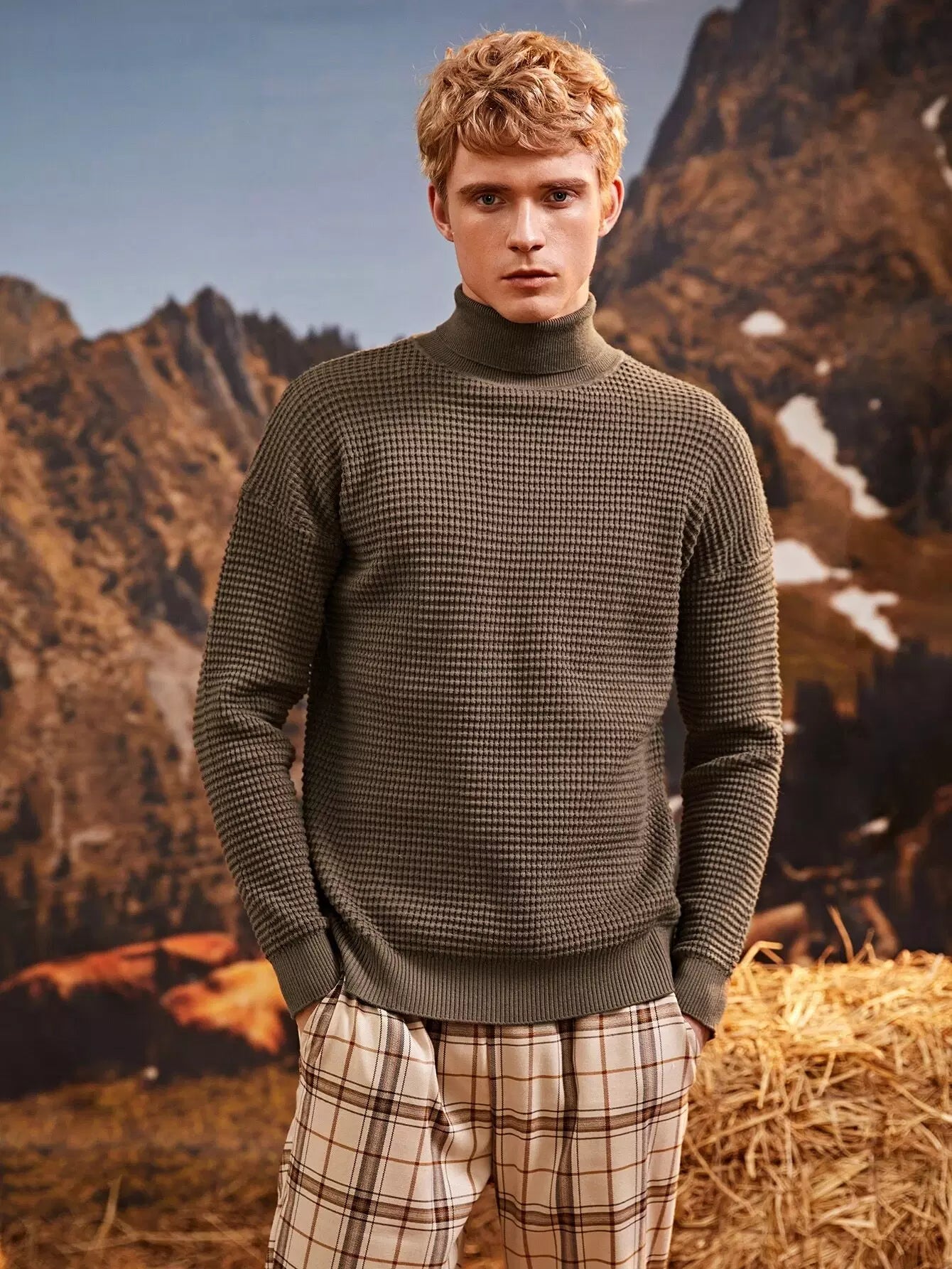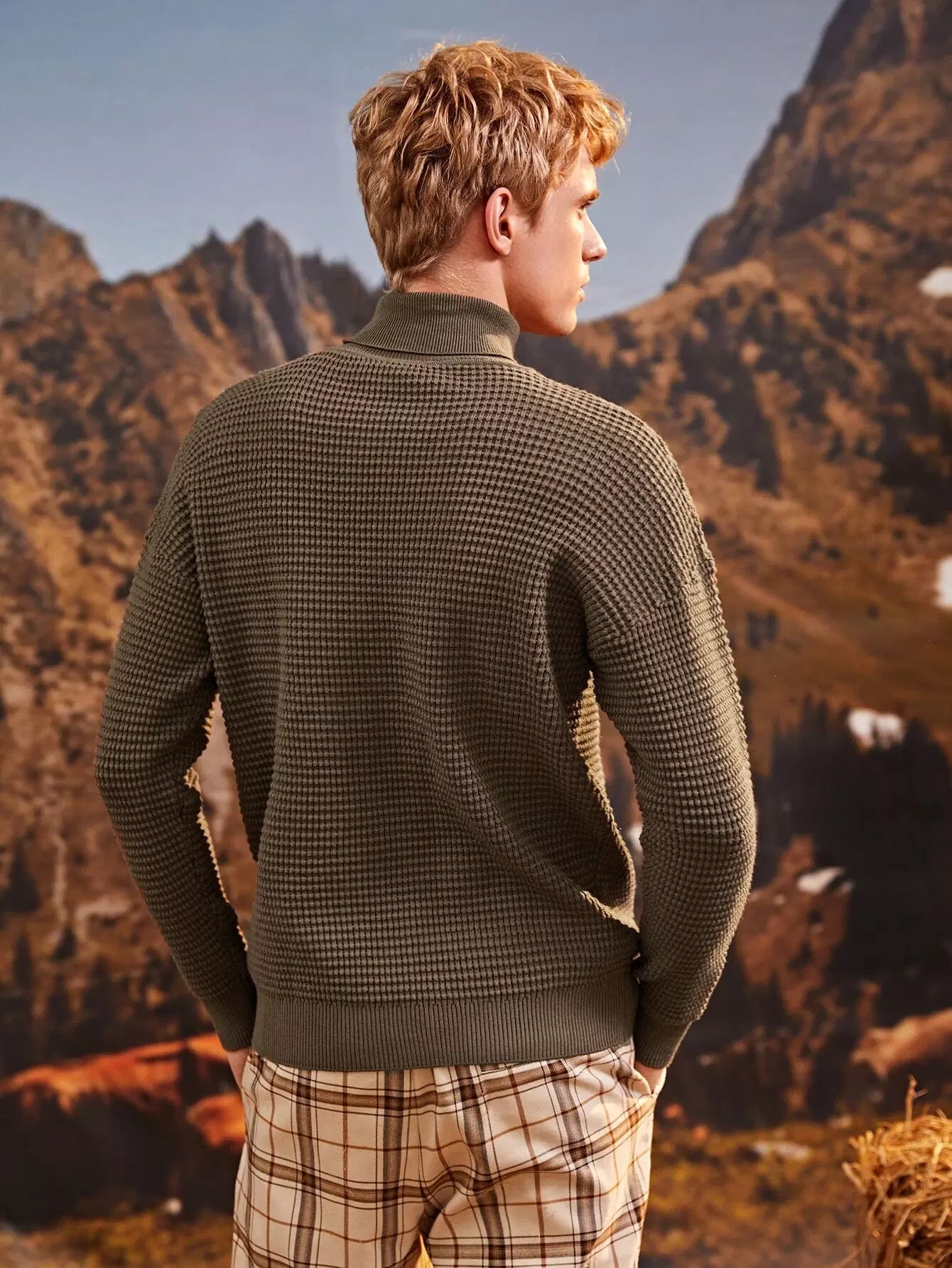 سترة رجالية سادة بياقة مدورة بياقة سادة متماسكة من الوافل