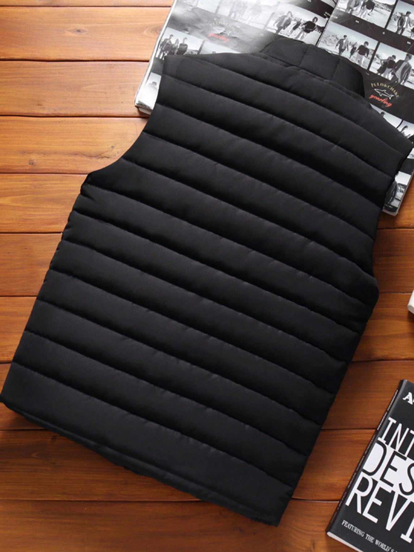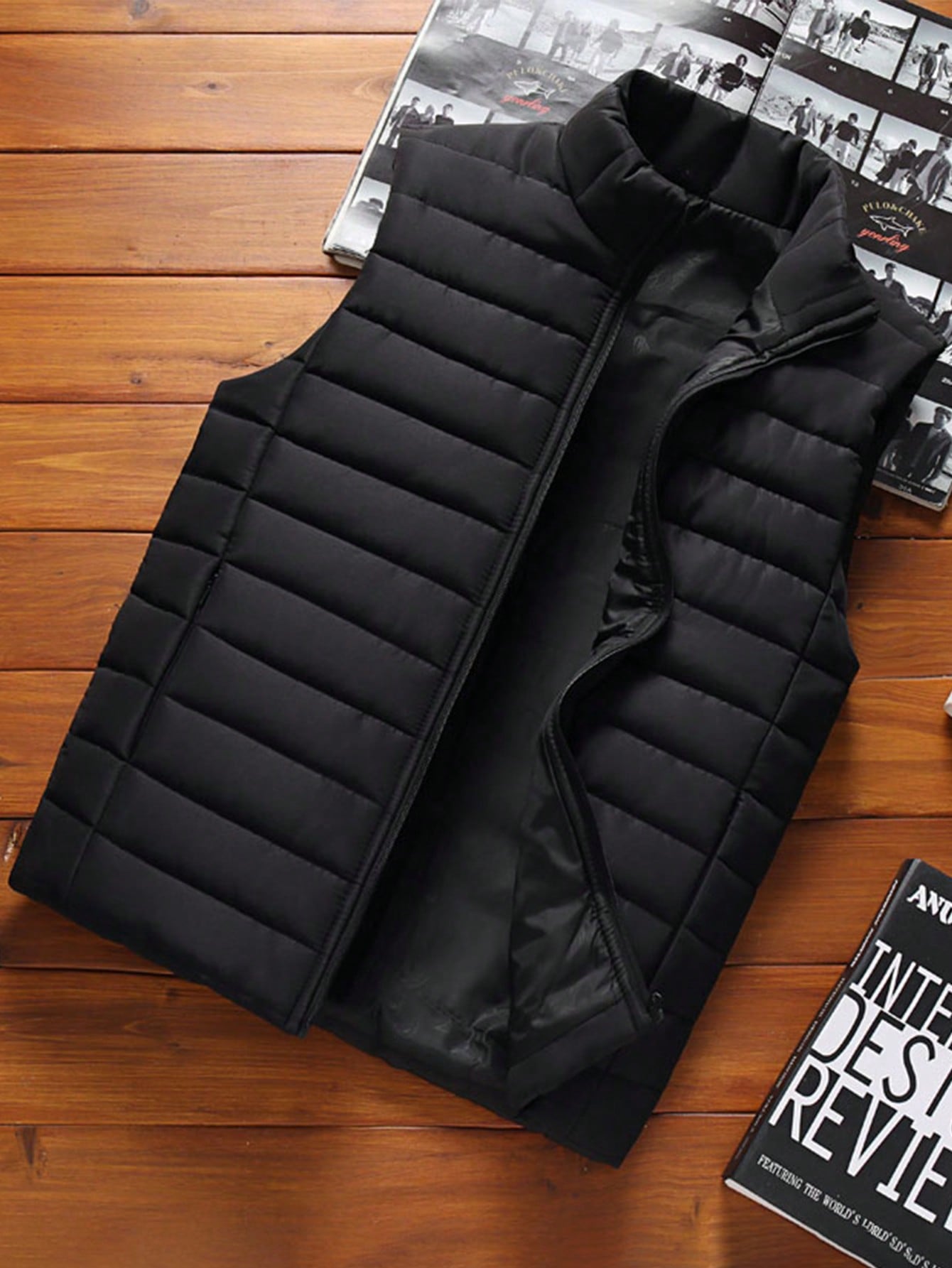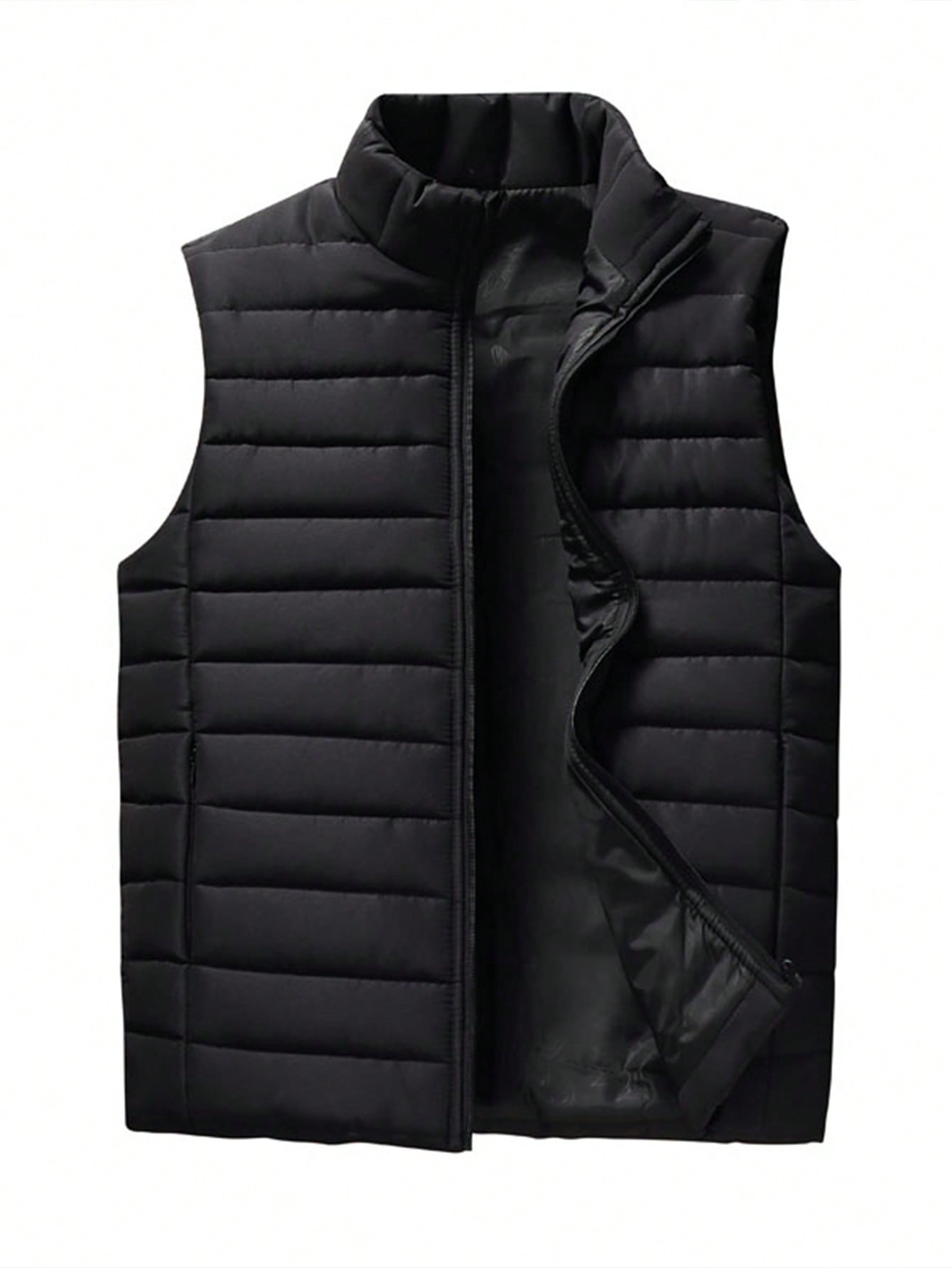 جاكيت رجالي بدون أكمام بياقة عالية، قطعة واحدة، دافئ وأنيق لفصلي الخريف والشتاء