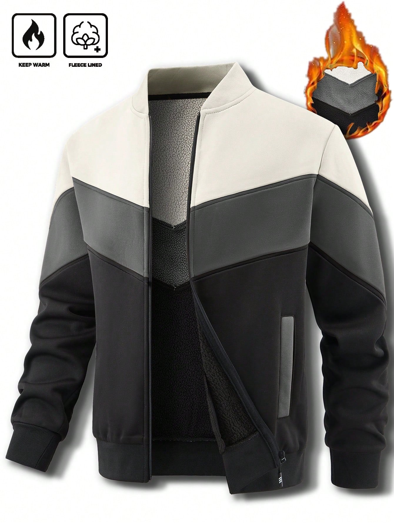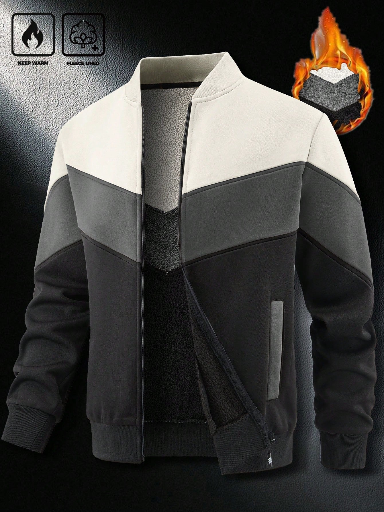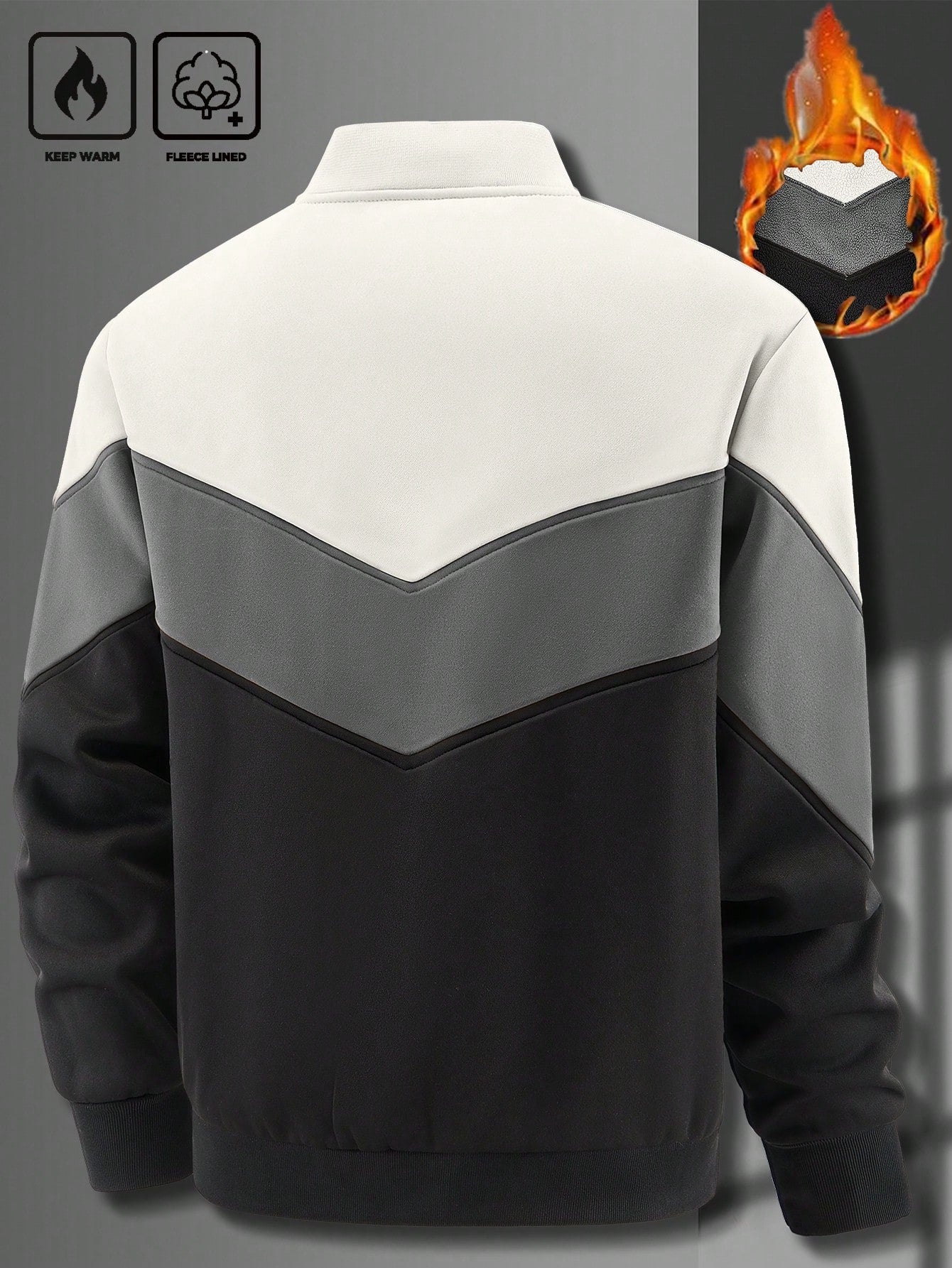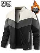 جاكيت كارديجان رجالي من مانفينيتي هوم، مناسب لفصلي الخريف والشتاء، بتصميم مرقع وياقة صينية مبطنة حرارياً.