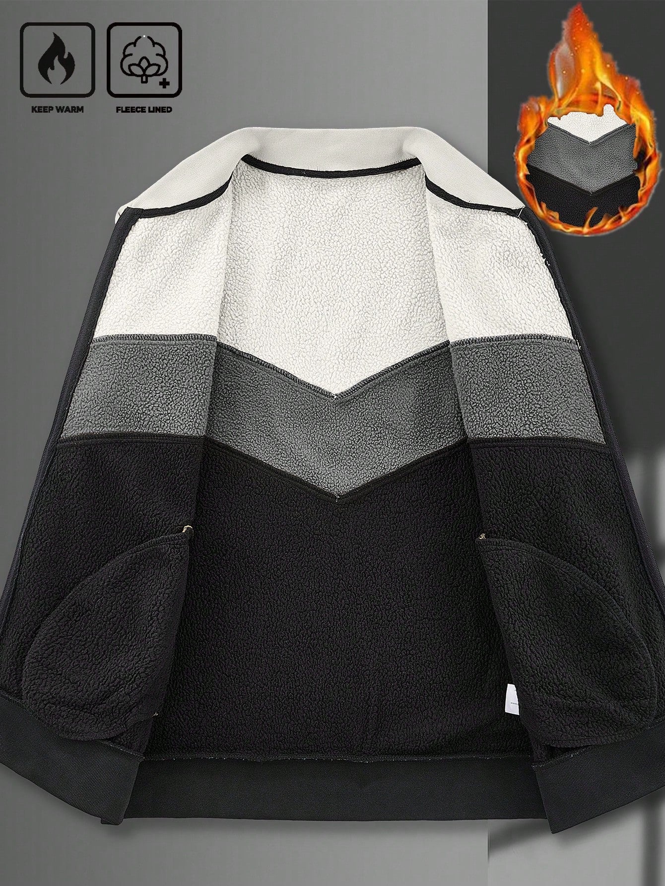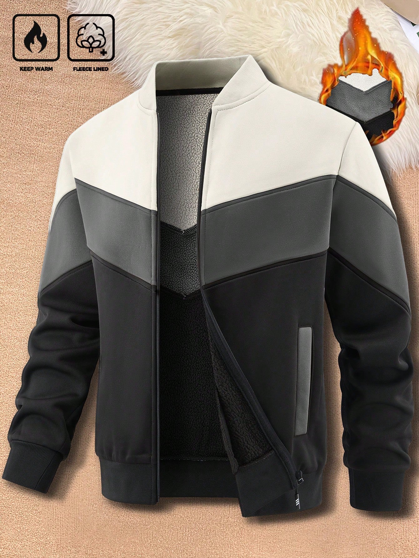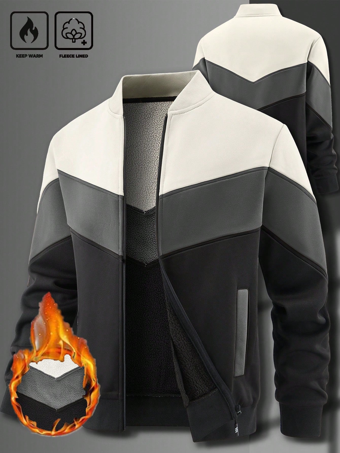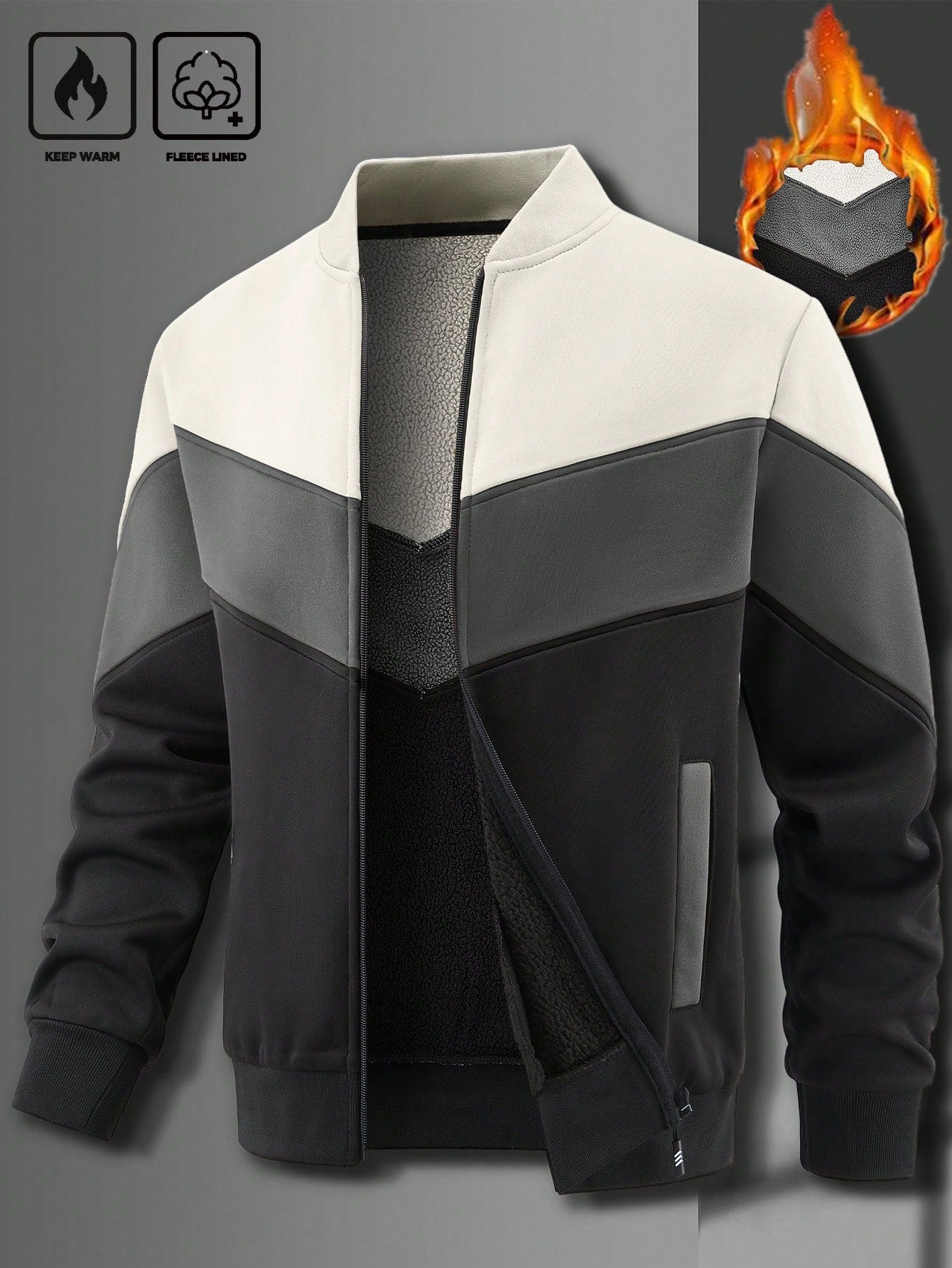 جاكيت كارديجان رجالي من مانفينيتي هوم، مناسب لفصلي الخريف والشتاء، بتصميم مرقع وياقة صينية مبطنة حرارياً.
