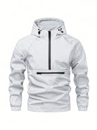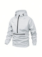جاكيت رجالي من Yemwry بتصميم بسيط وعصري وعملي، مزود بغطاء رأس وسحاب نصفي، مناسب للأنشطة الخارجية.