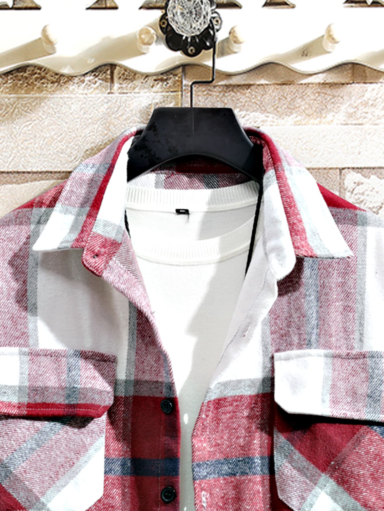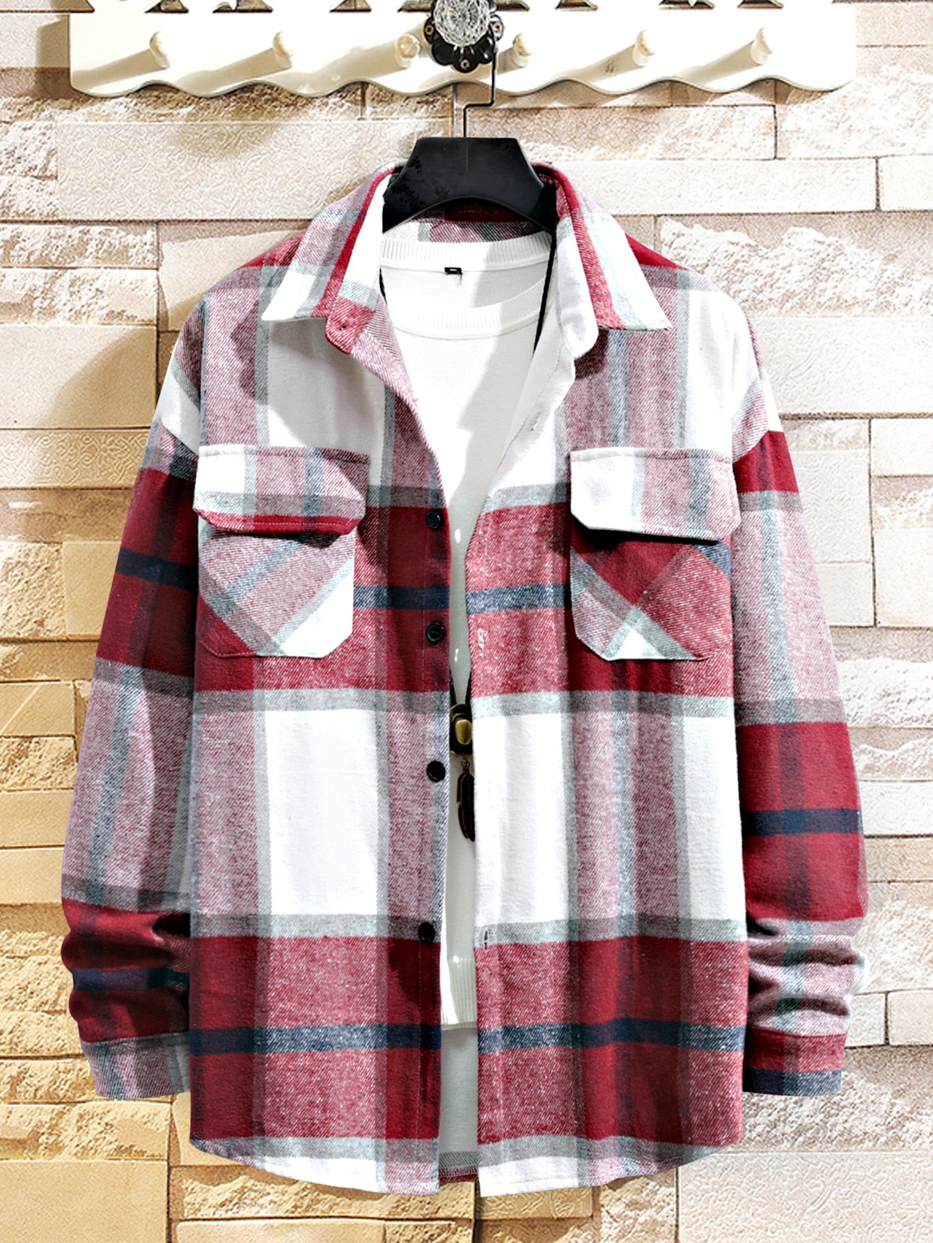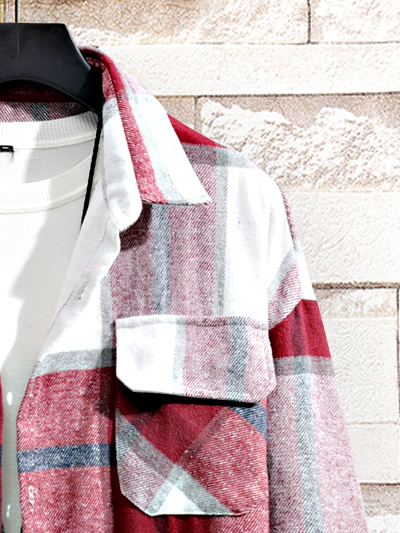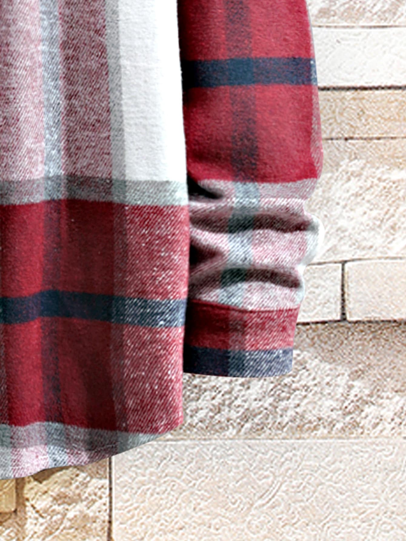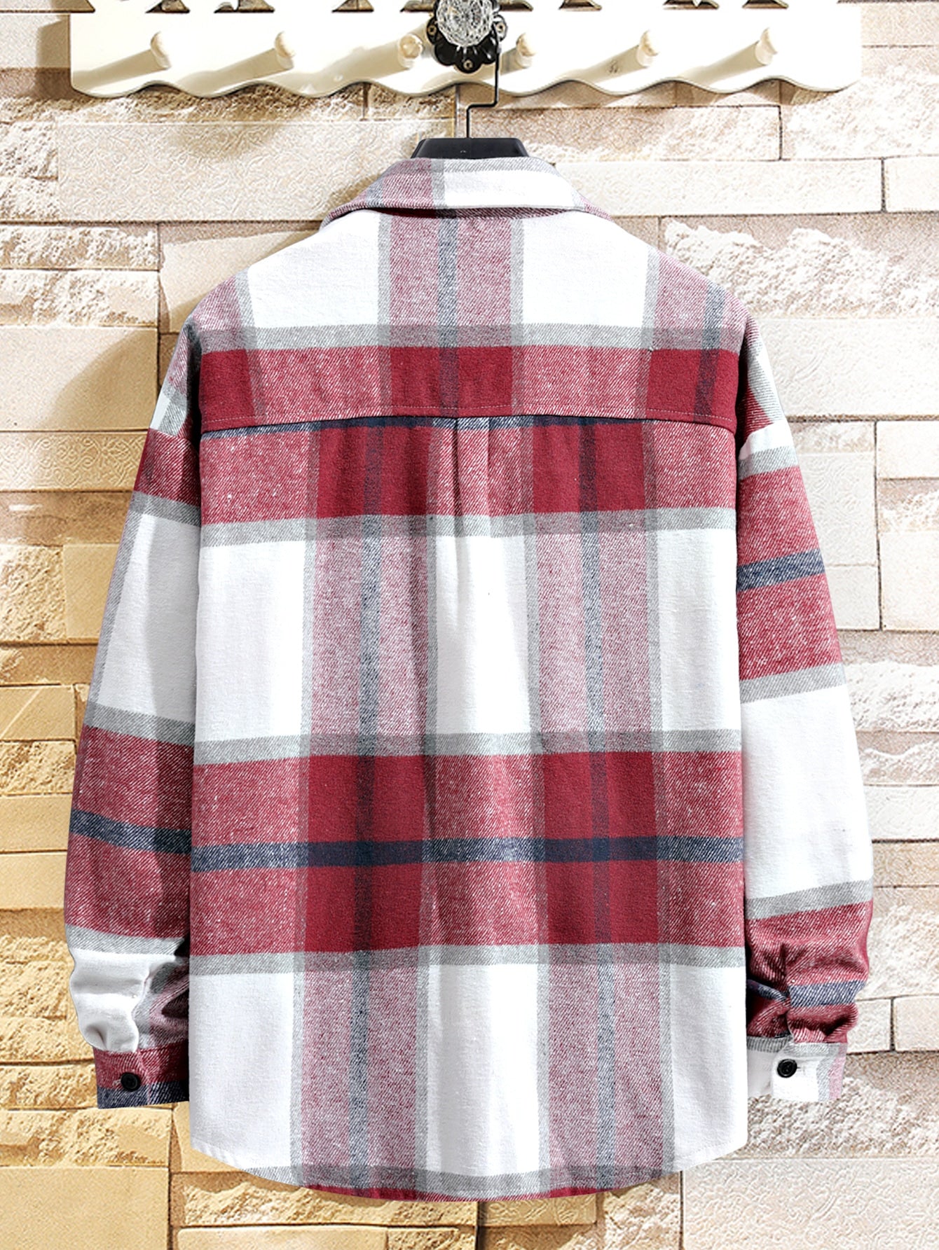 Men 1pc Plaid Print Flap Pocket Drop Shoulder Overcoat