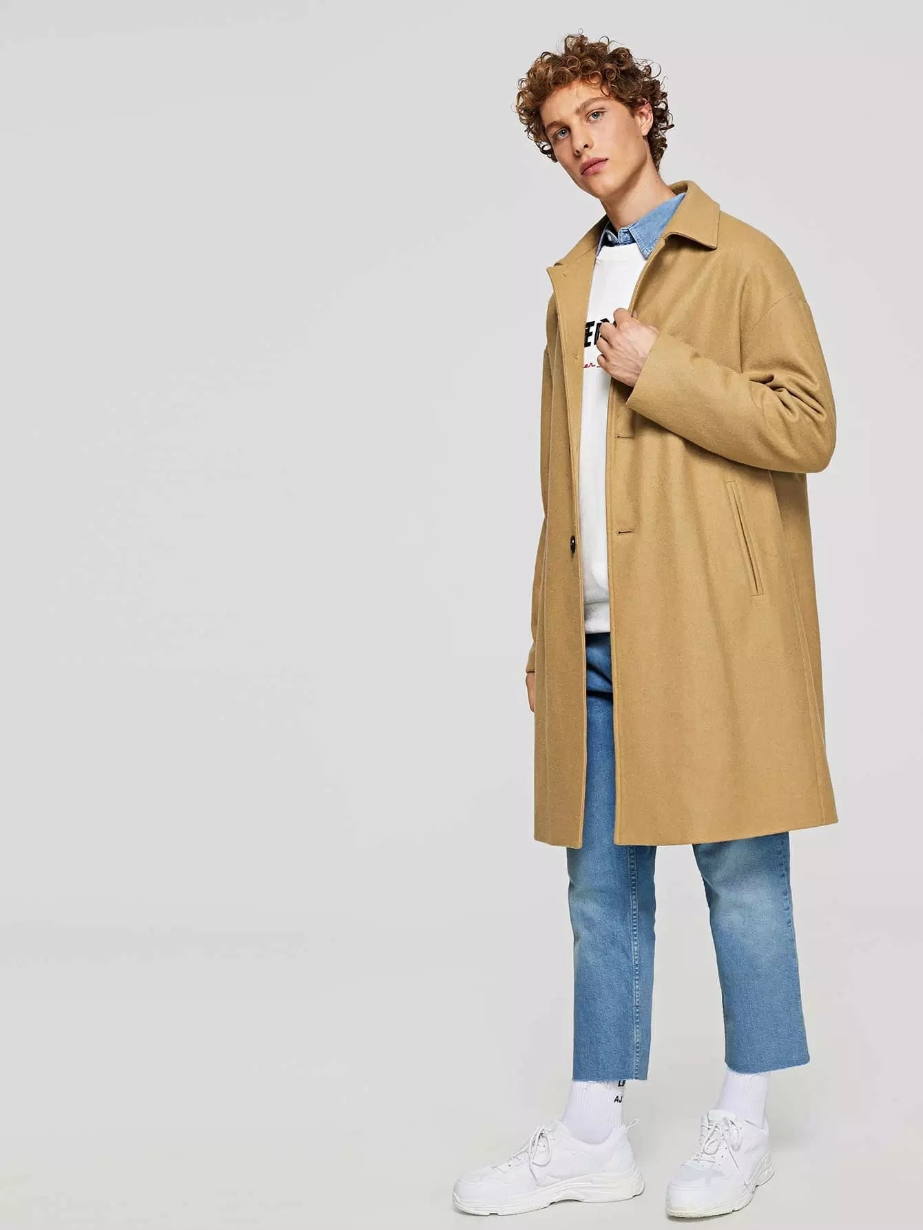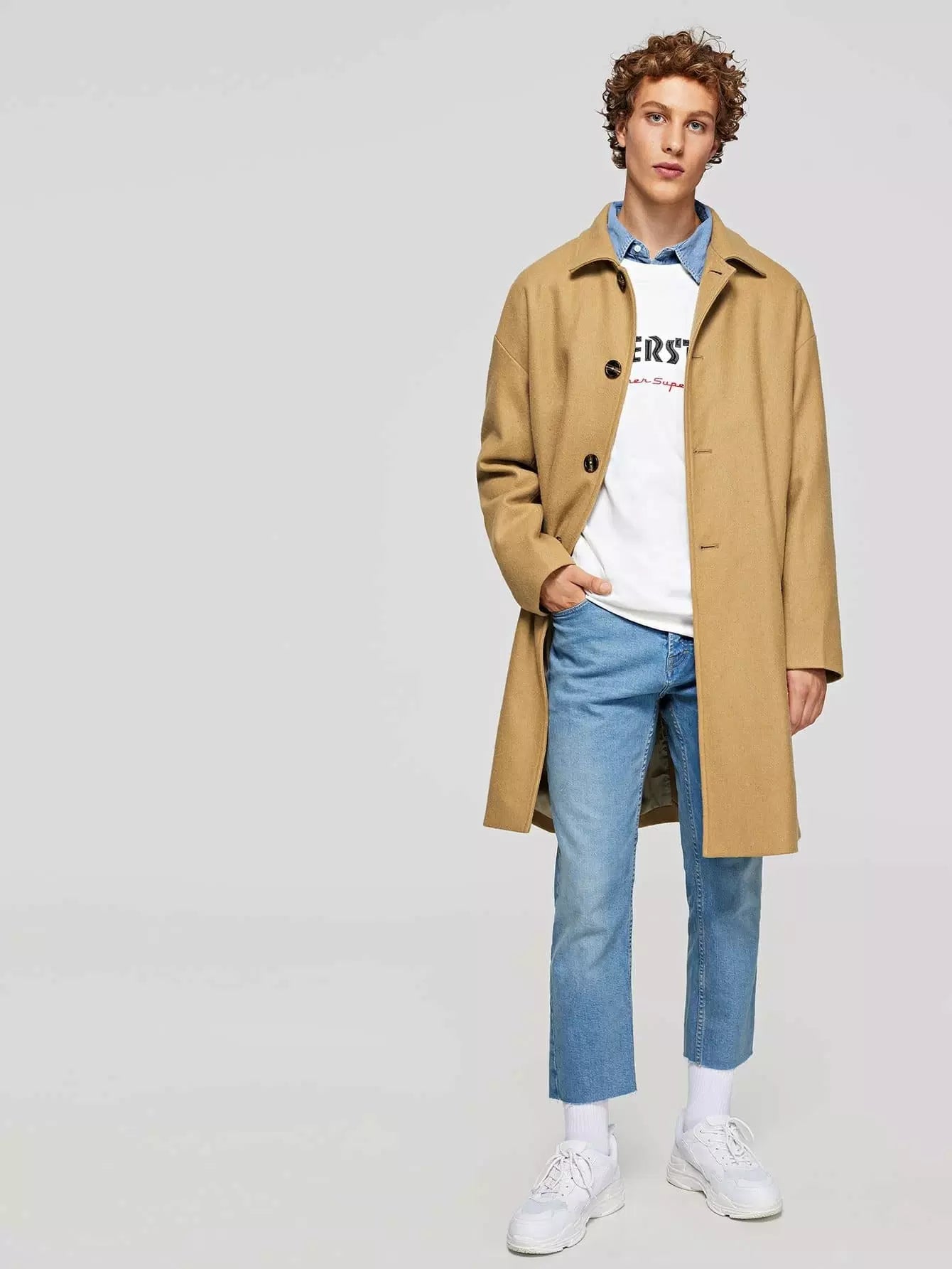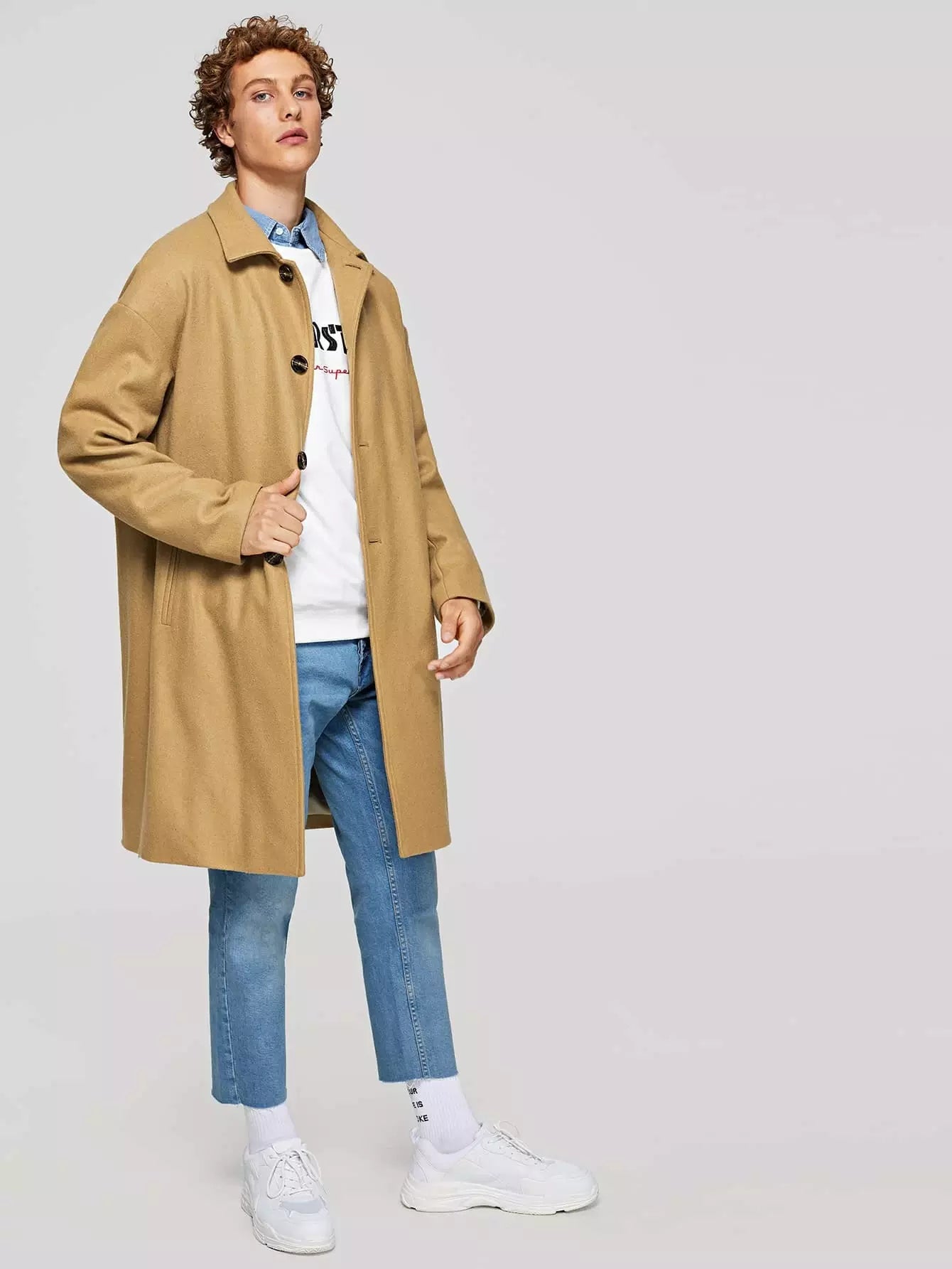 معطف رجالي بياقة بياقة أمامية بأزرار للرجال