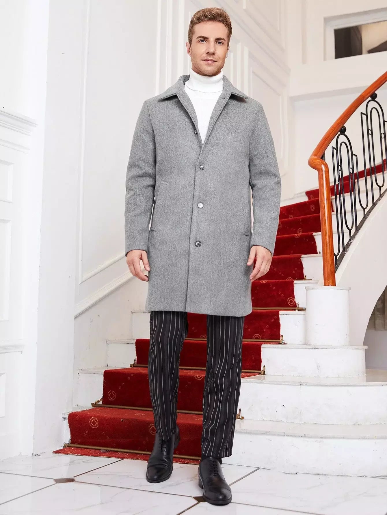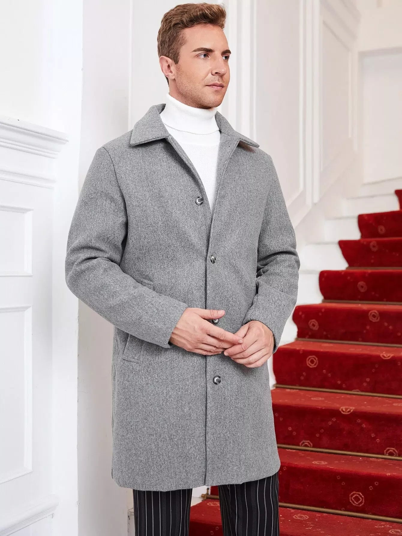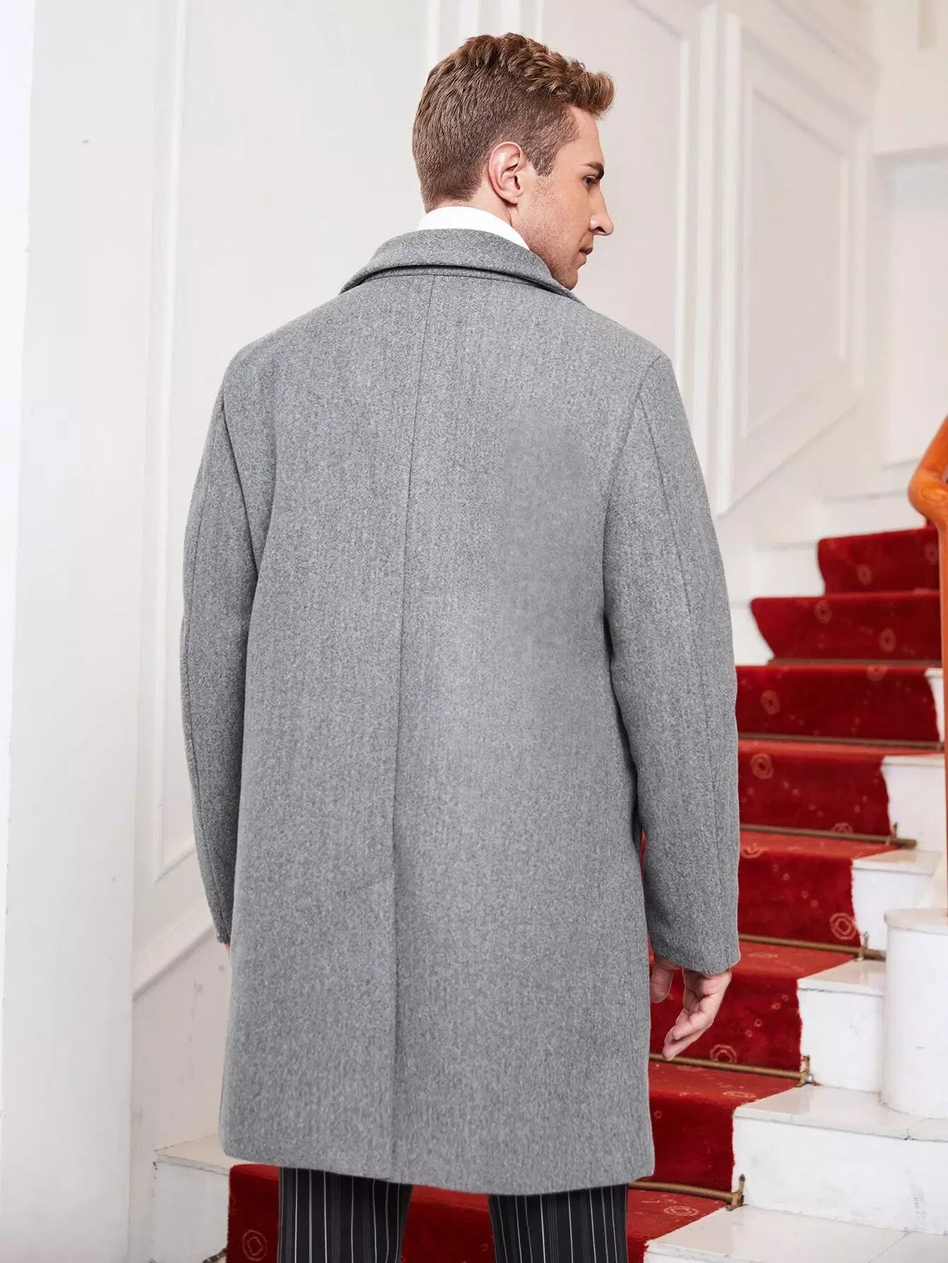معطف رجالي رجالي بجيب مائل مفتوح من الخلف