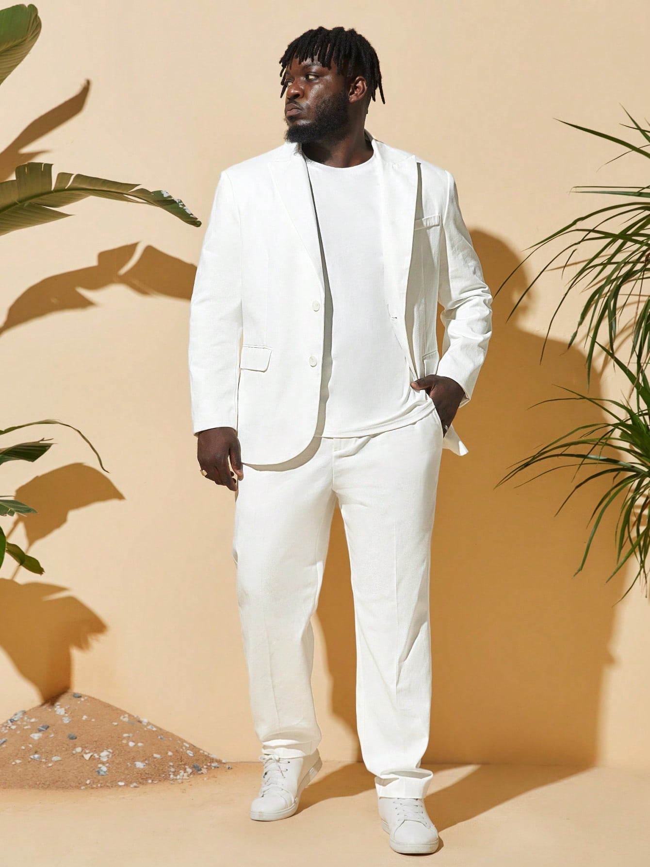 men EASEVO Men Plus Peak Collar Flap Detail Blazer & Suit Pants