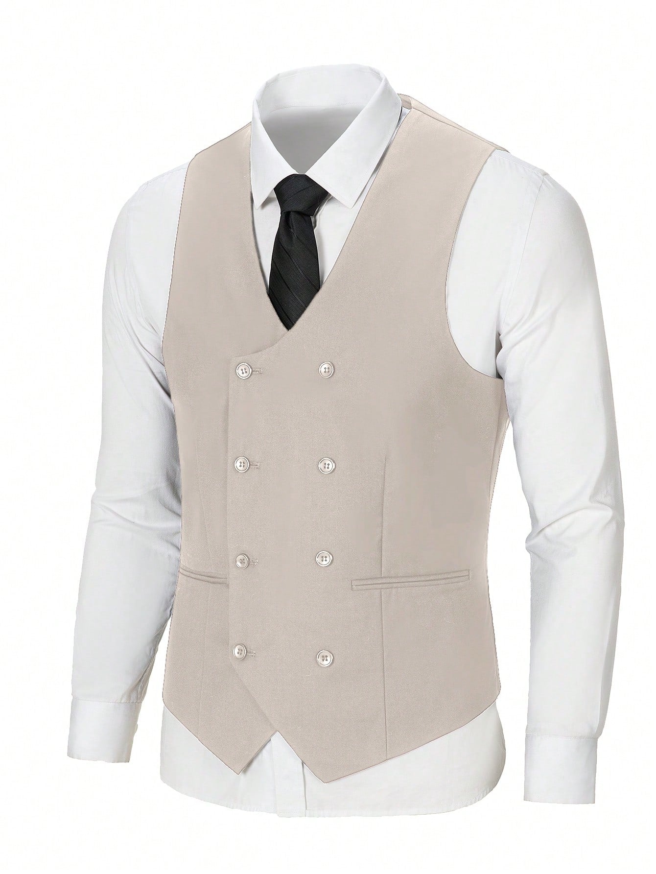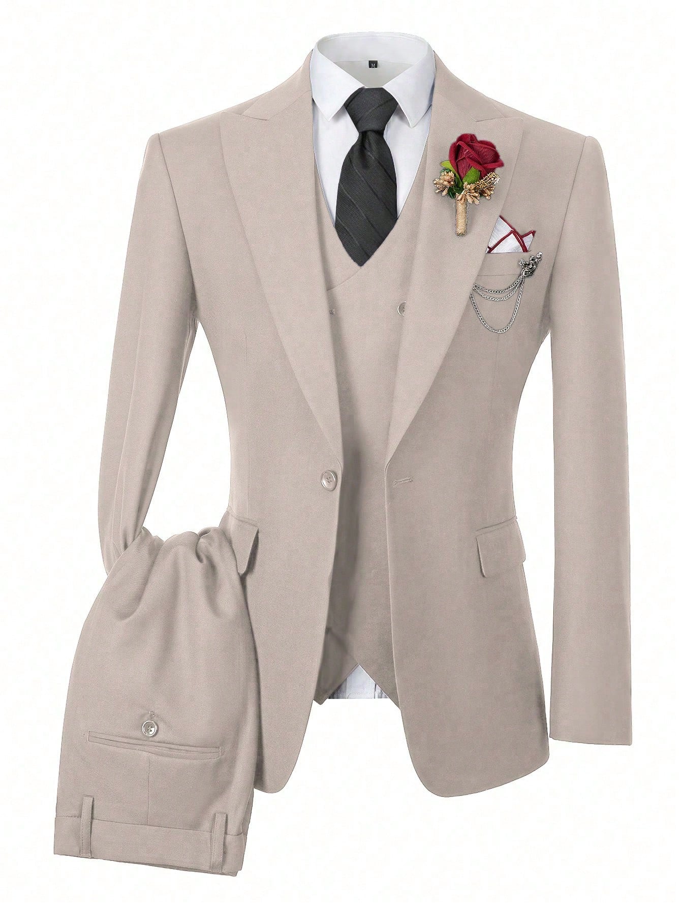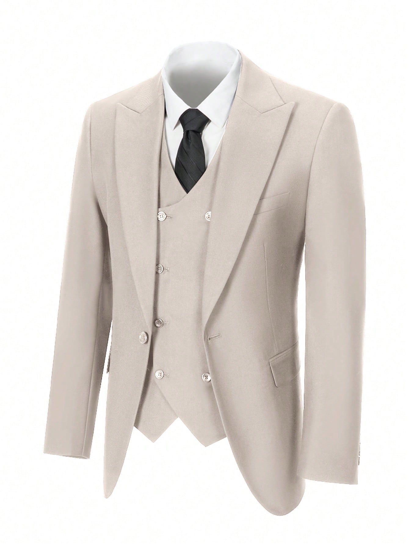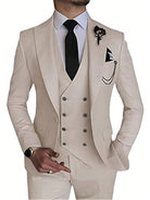 طقم بدلة رجالية من فيرويال مكون من 3 قطع، أنيق بلون موحد وقصة ضيقة، مناسب لحفلات الزفاف، مع سترة مزدوجة الصدر.