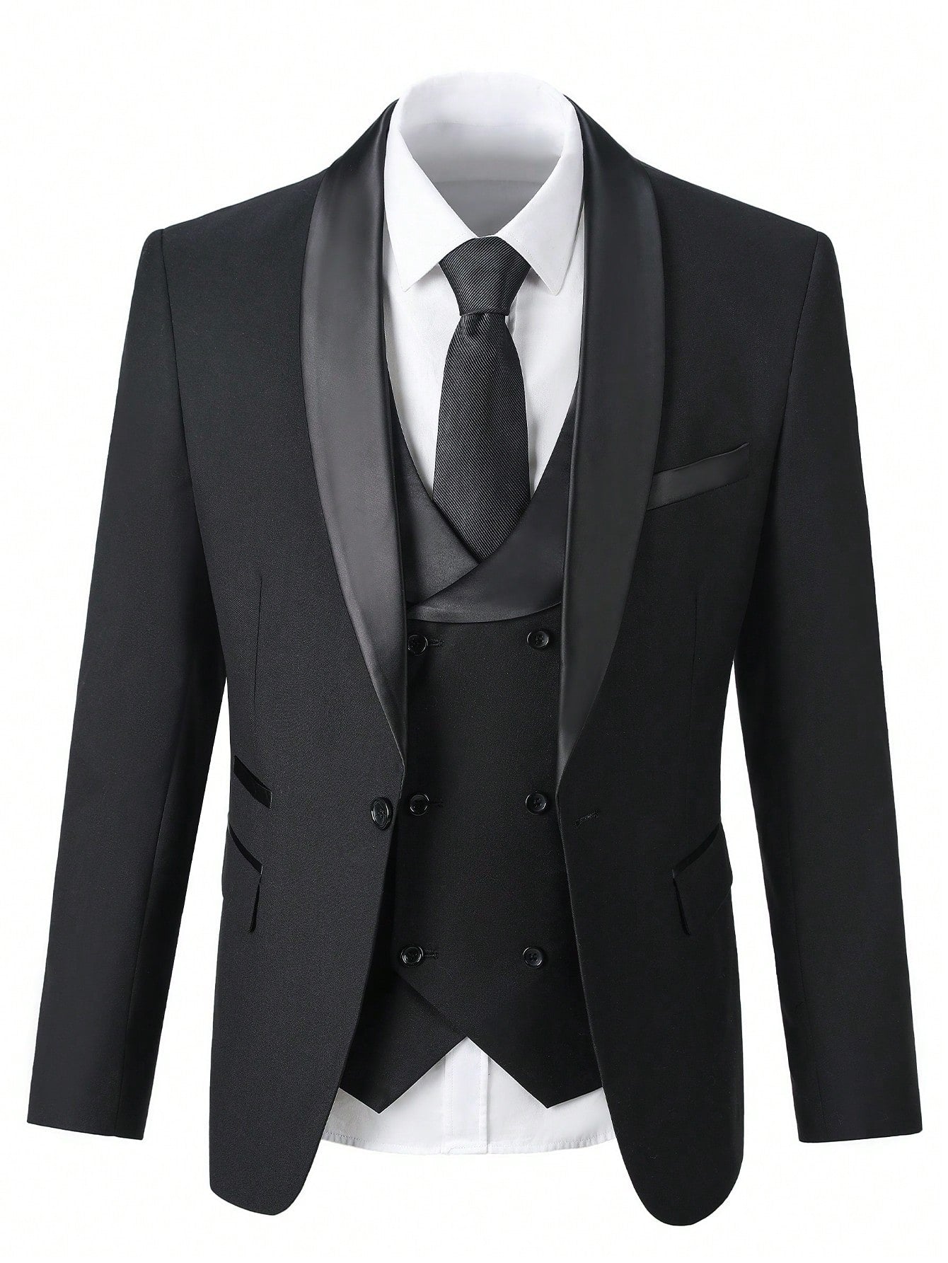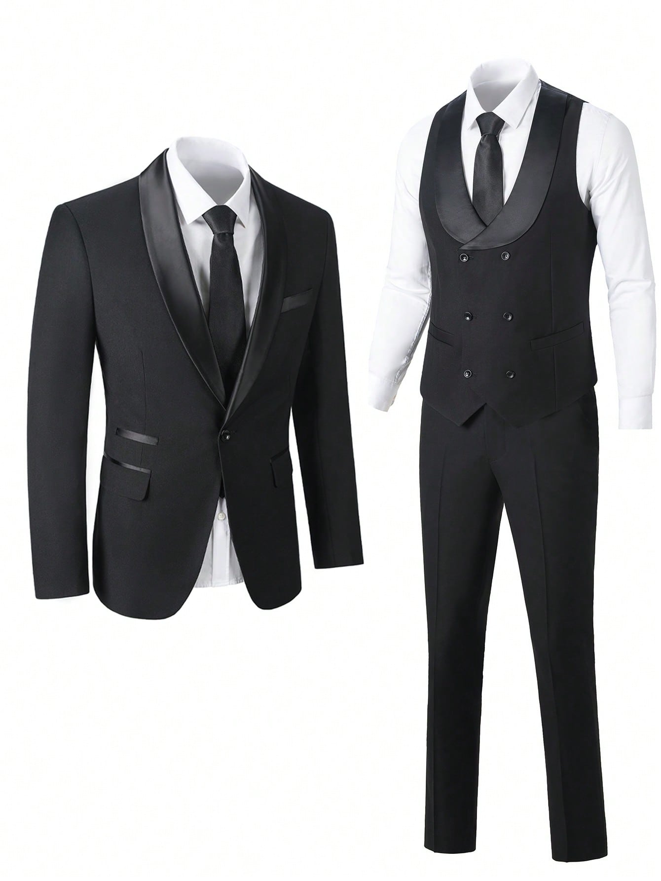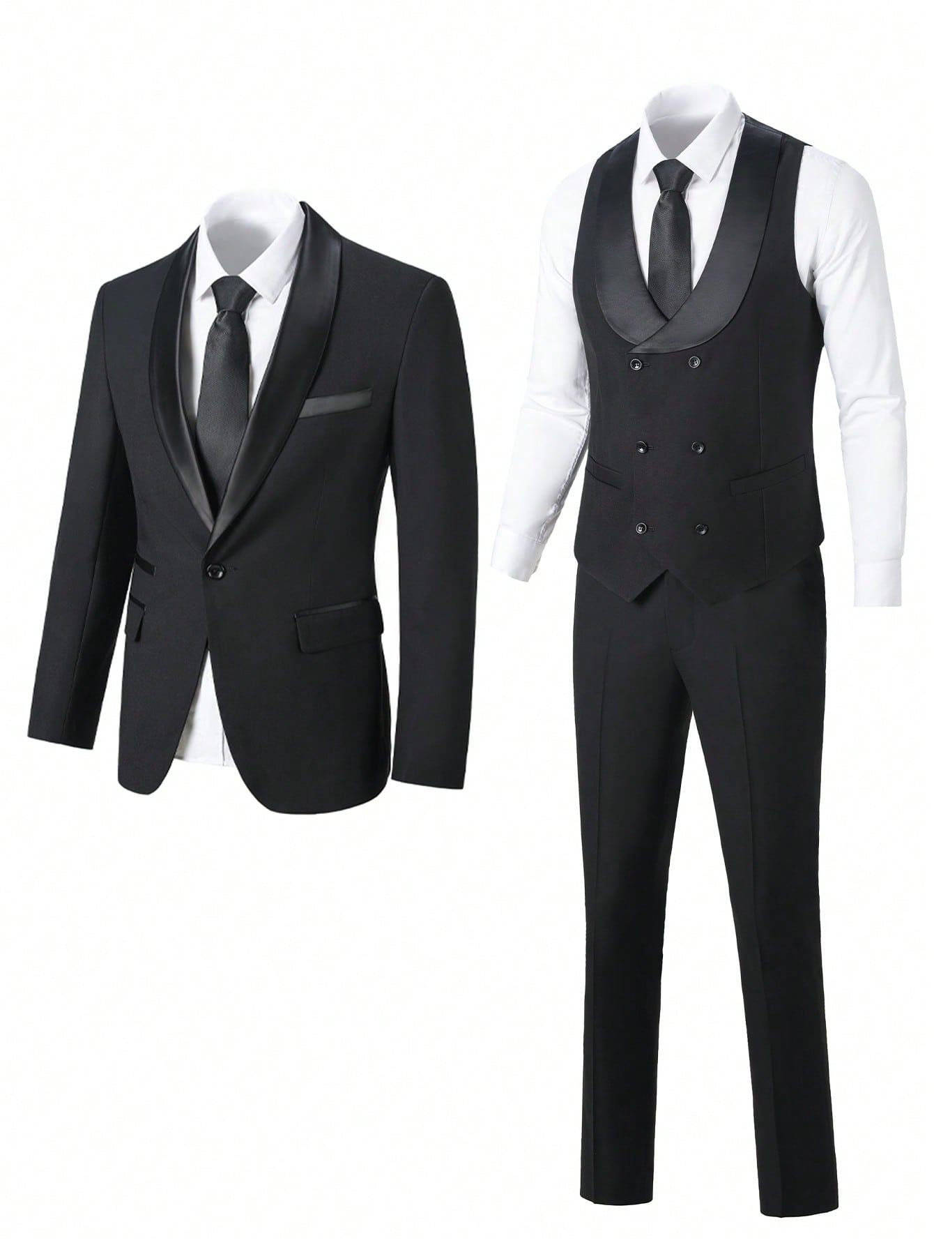 طقم بدلة رجالية من فيوريال، 3 قطع، بقصة ضيقة، تصميم أنيق، لون سادة، زر واحد، سترة رسمية، صفين من الأزرار