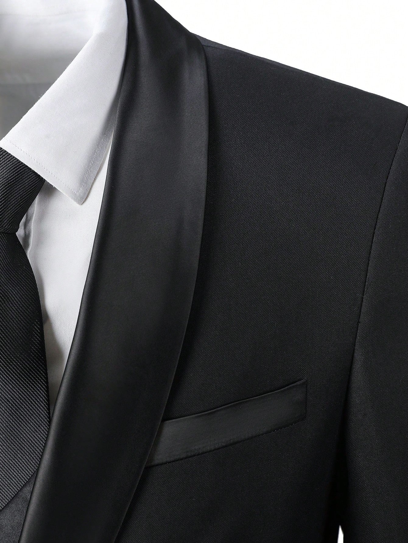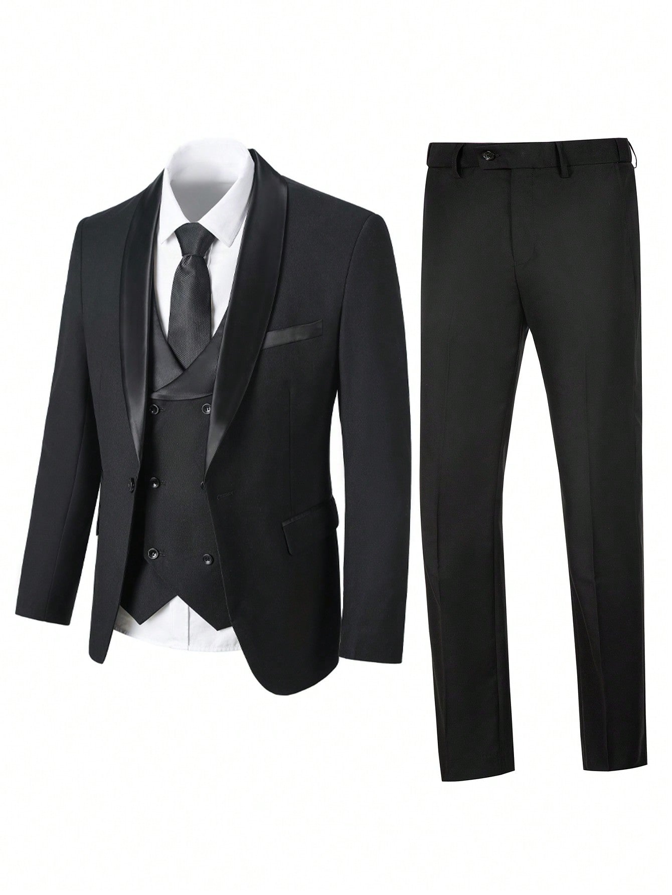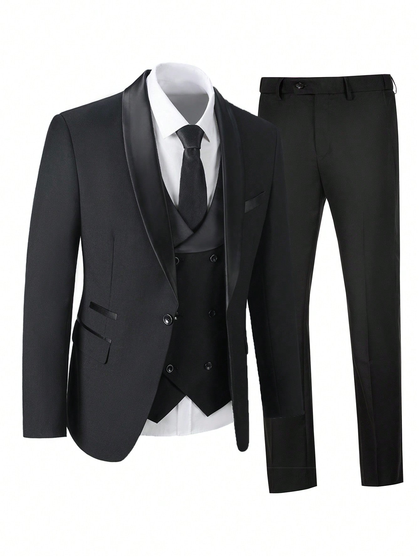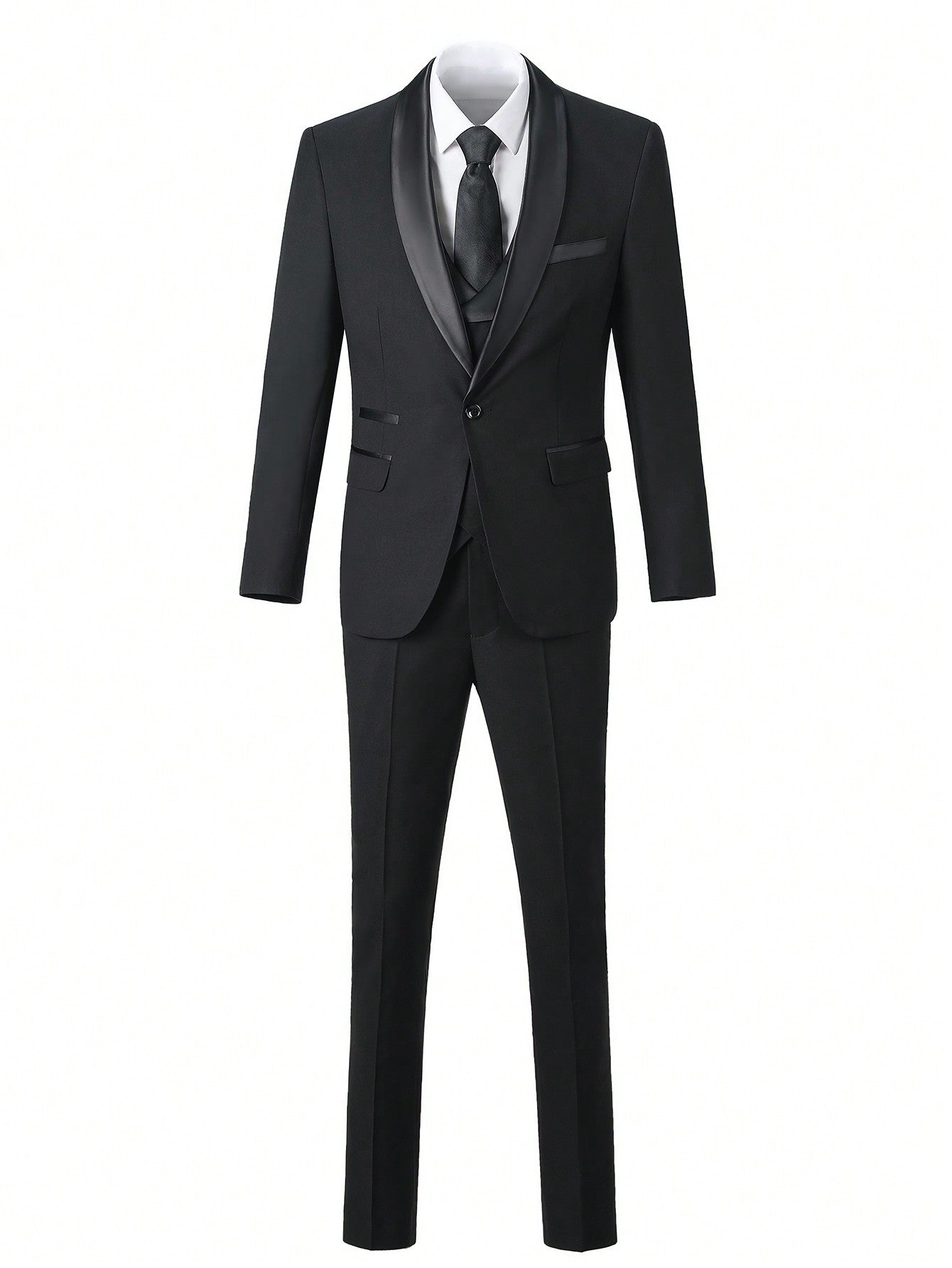 طقم بدلة رجالية من فيوريال، 3 قطع، بقصة ضيقة، تصميم أنيق، لون سادة، زر واحد، سترة رسمية، صفين من الأزرار