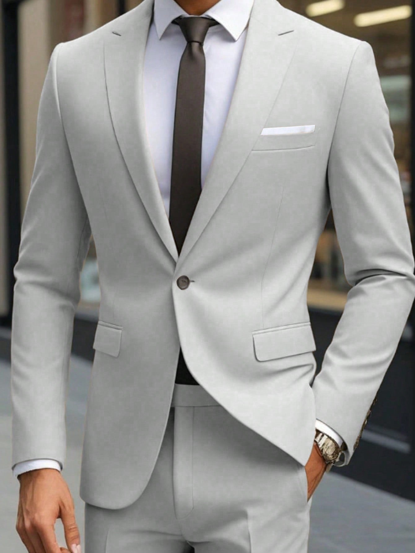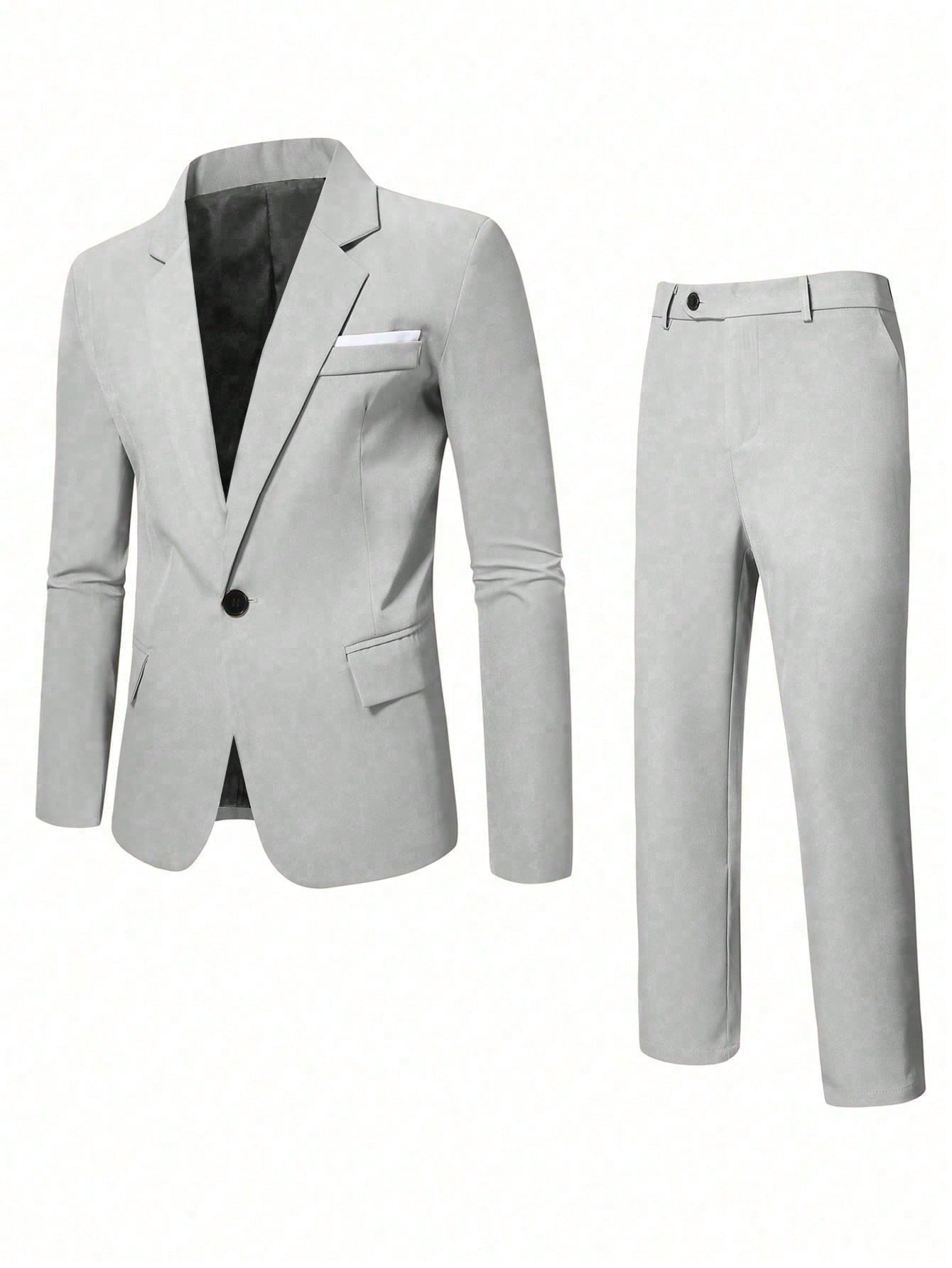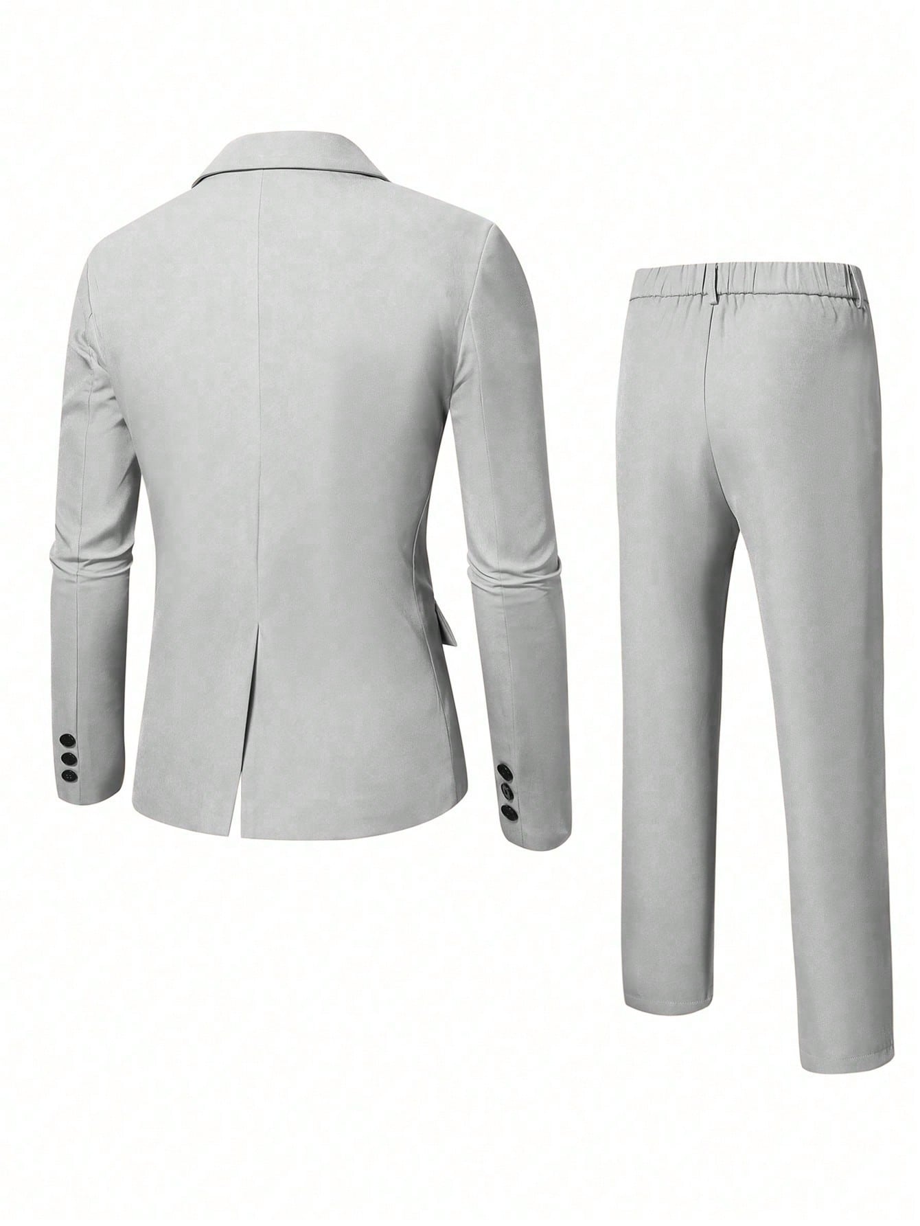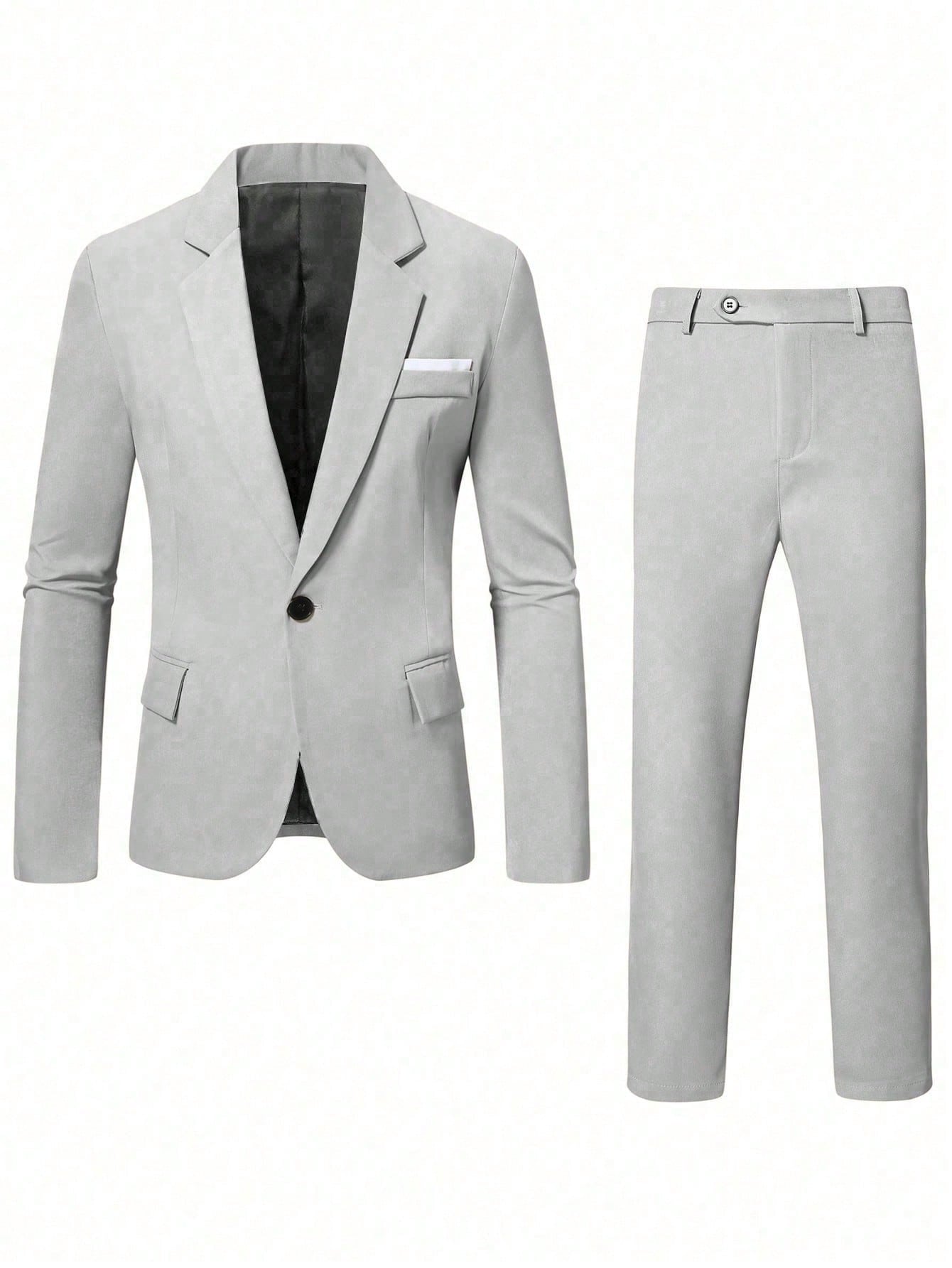 طقم بدلة رجالية كاجوال يتضمن جاكيت وبنطال، مناسب لفصلي الربيع والخريف