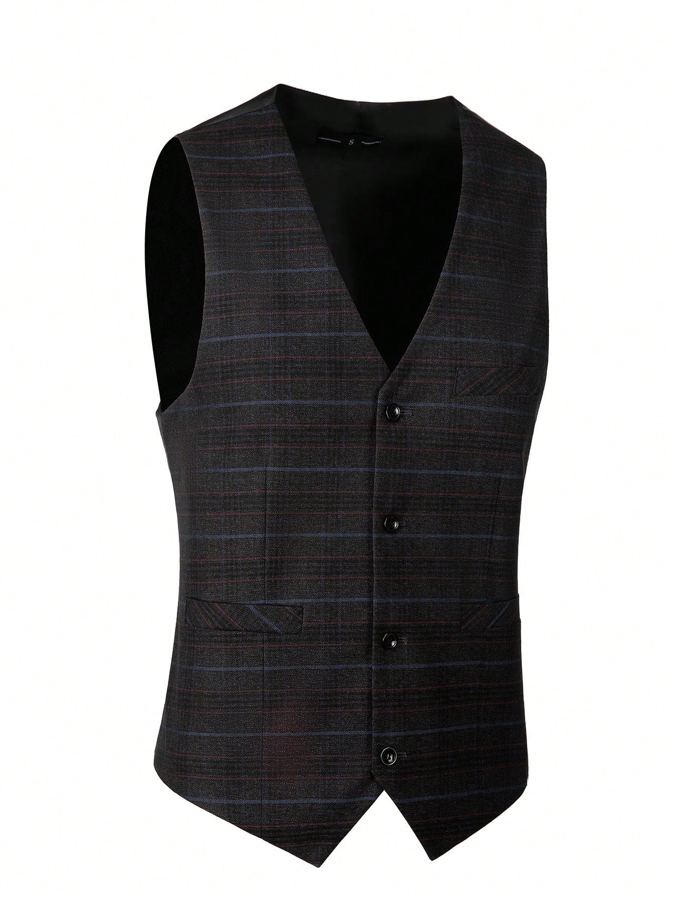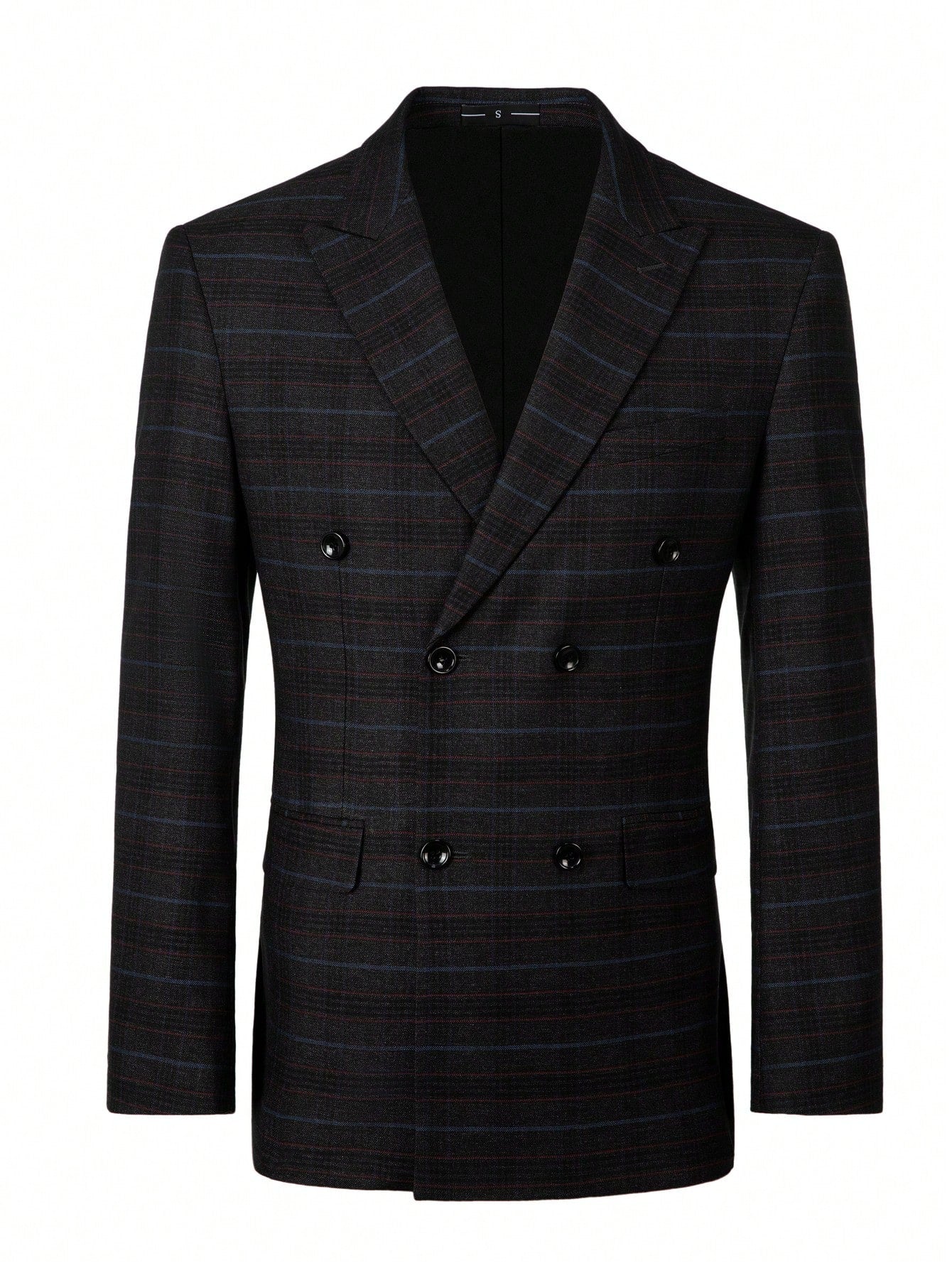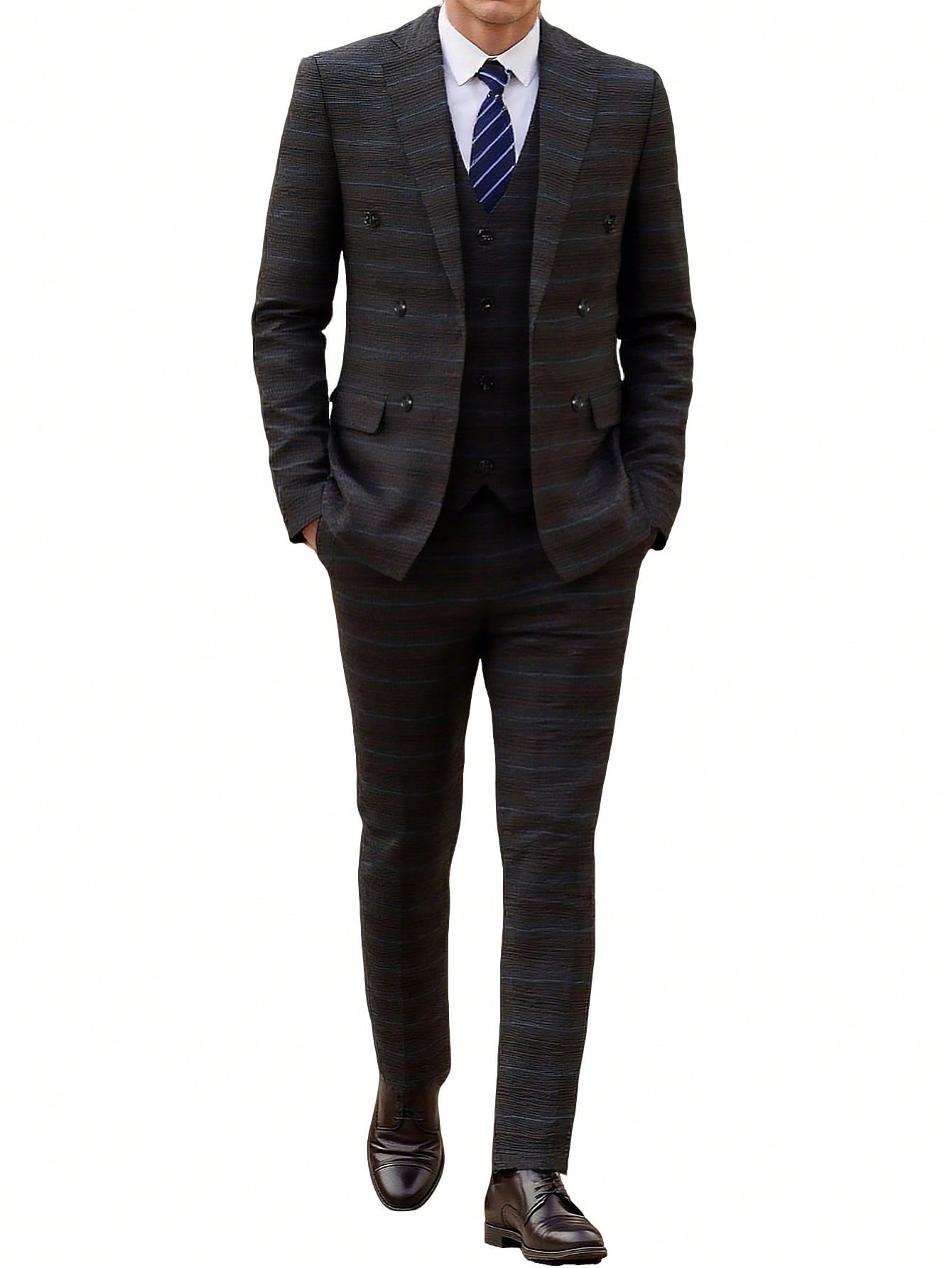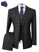 Furuyal Men's Suits Plaid Elegance Slim Fit Double Breasted Party 3 Pieces Suit For Men Blazer Vest Pants