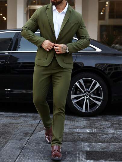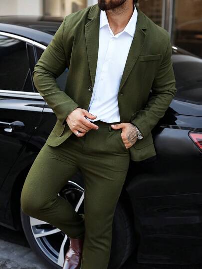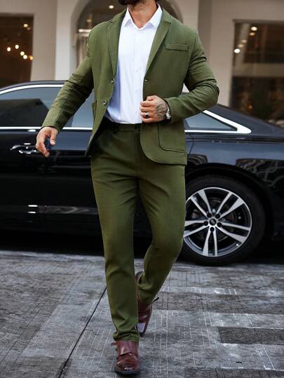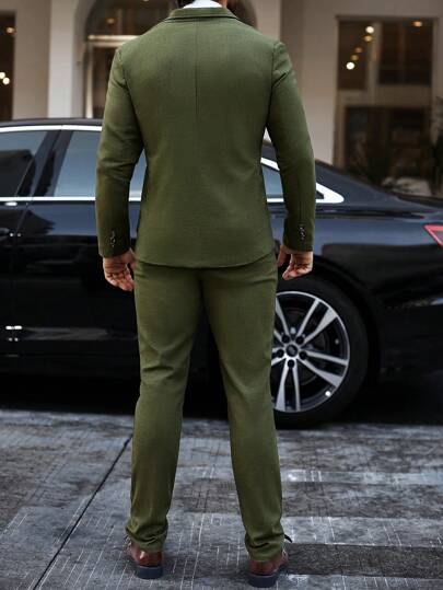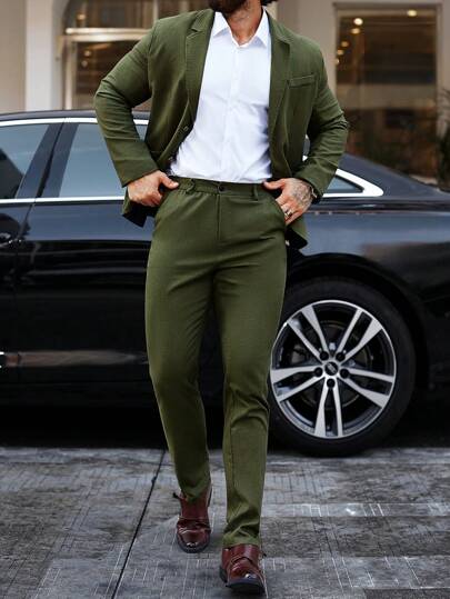 men Manfinity Mode Men's Single-Button Long Sleeve Suit Jacket And Pants Set For Work Attire