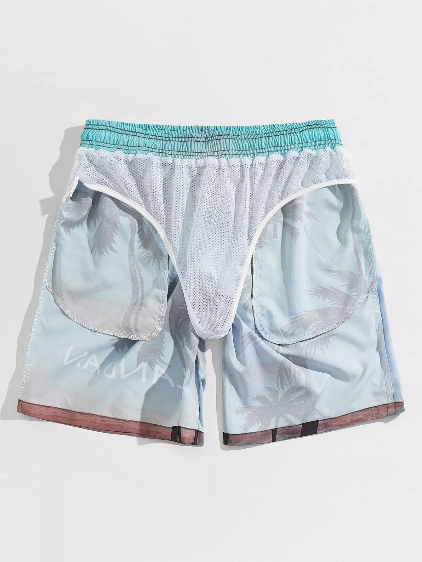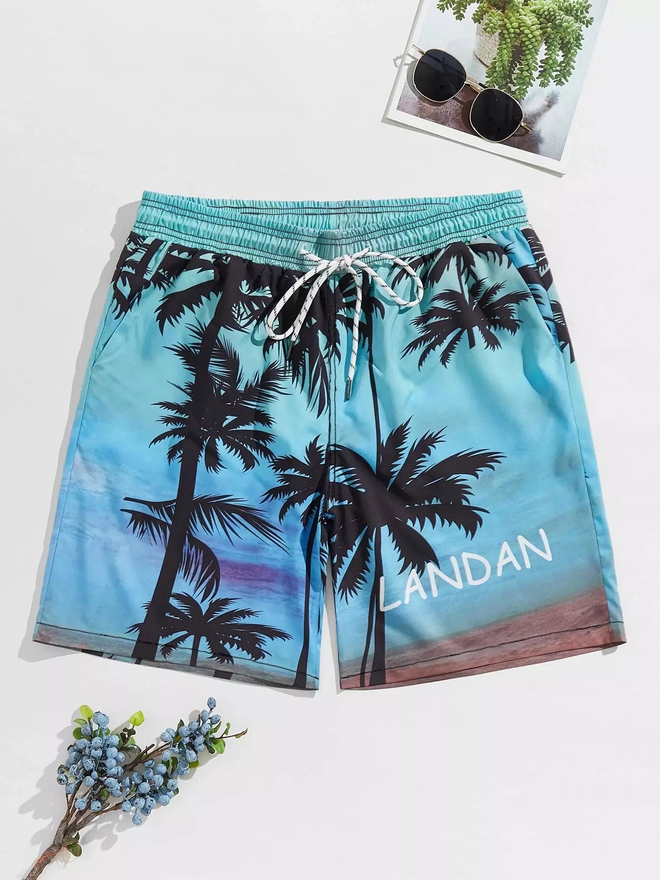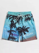 شورت سباحة رجالي برباط ورسومات أشجار النخيل والحروف