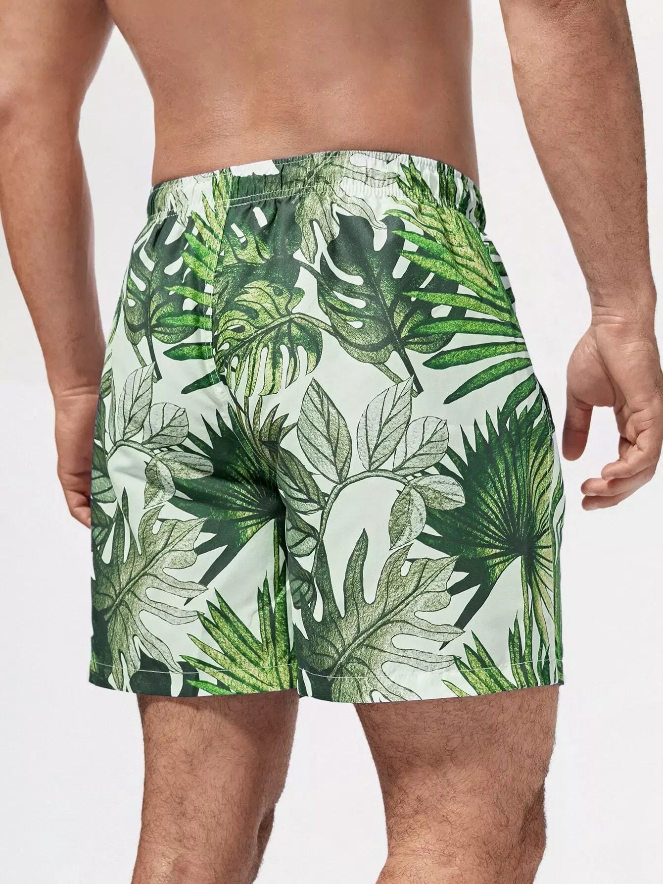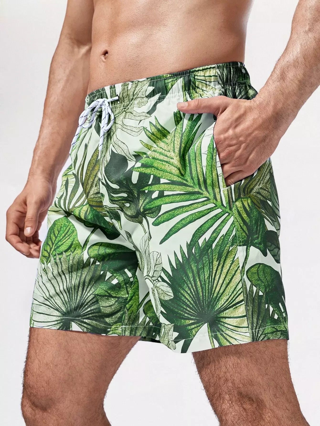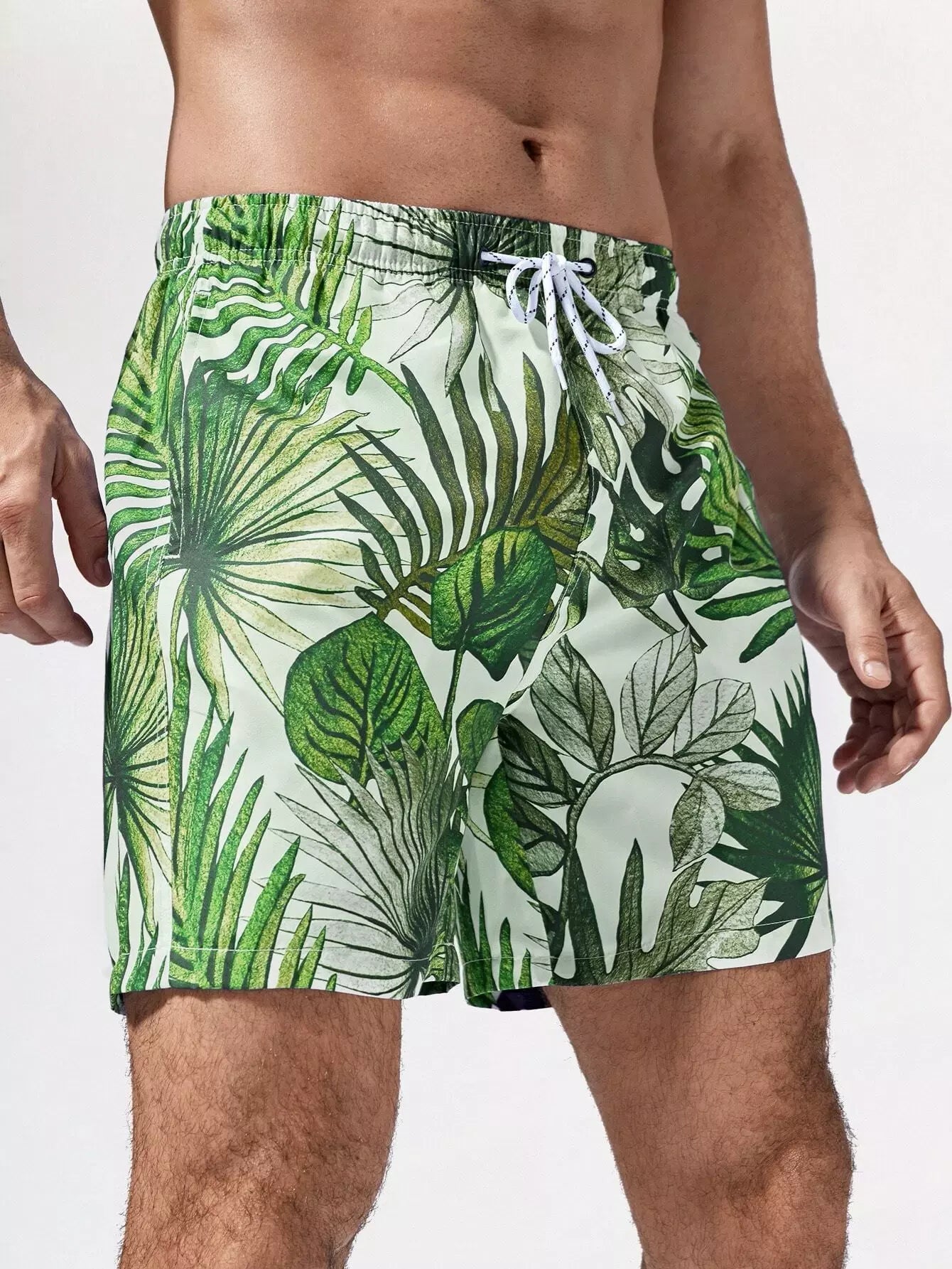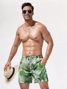 سروال سباحة رجالي بطبعة استوائية برباط خصر مربوط للرجال