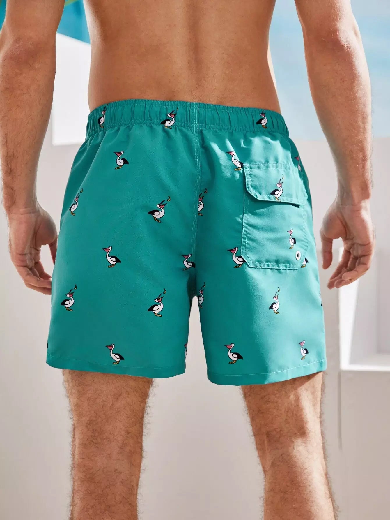 ملابس سباحة رجالية بطبعات حيوانية ورباط