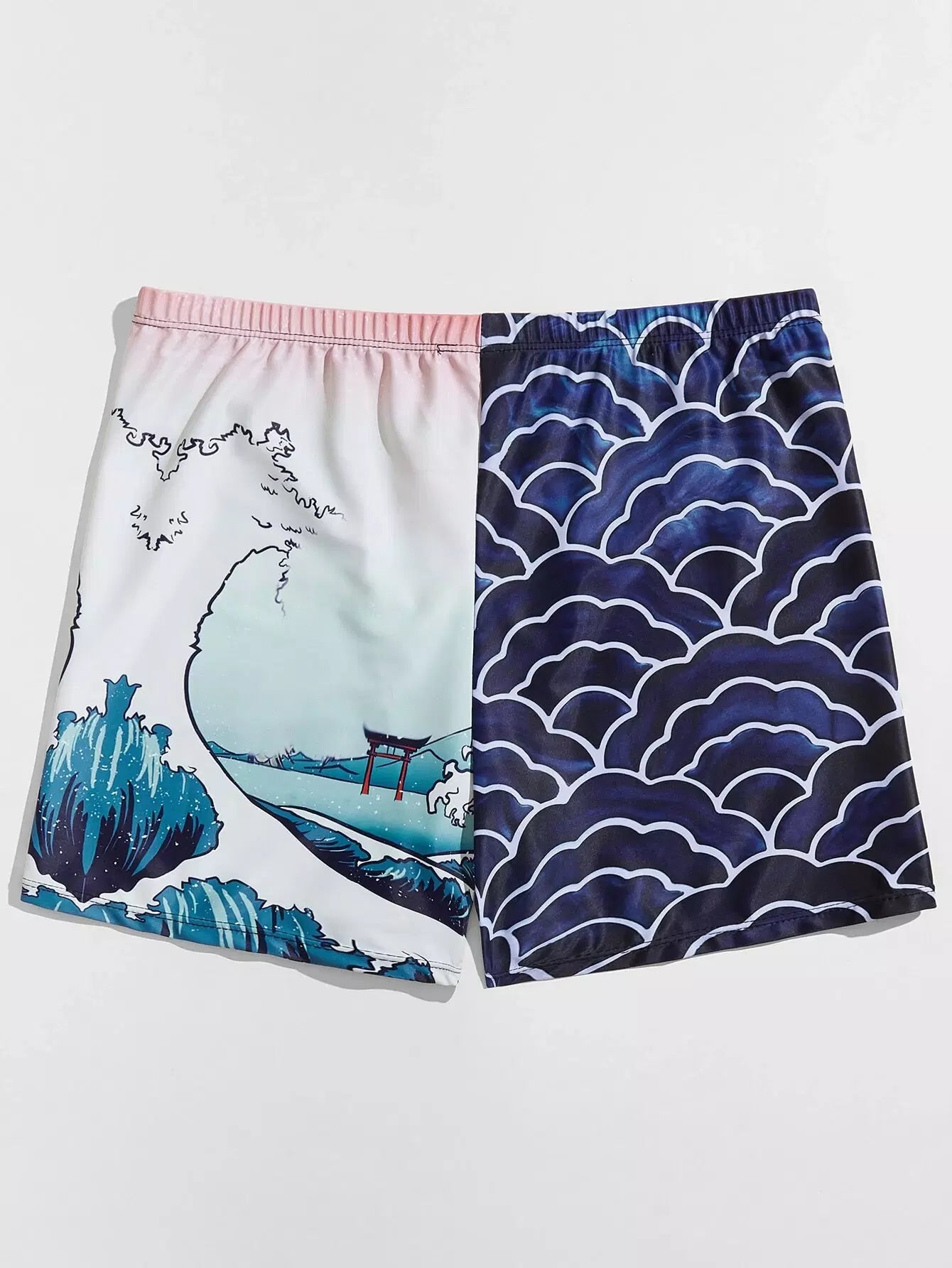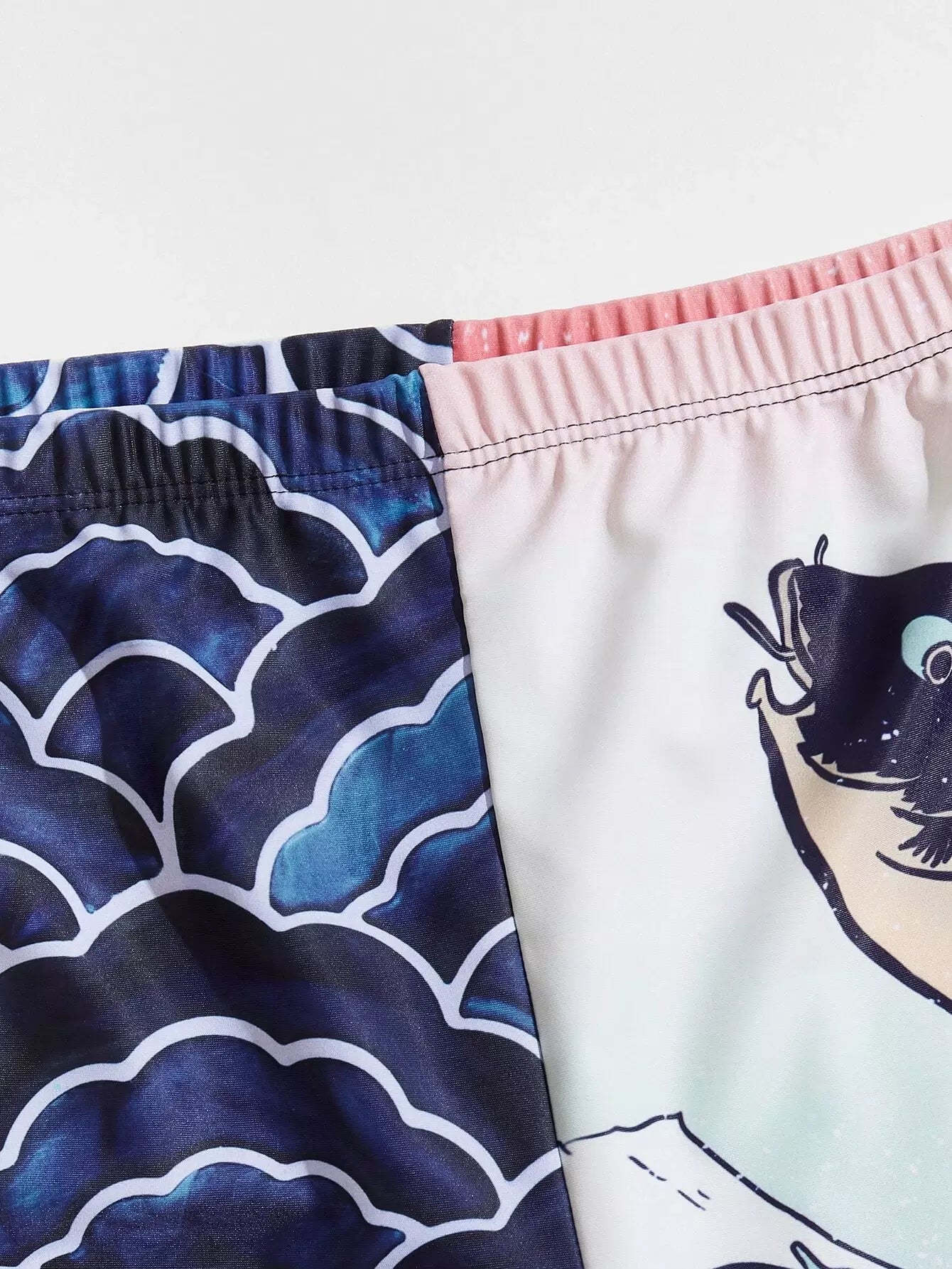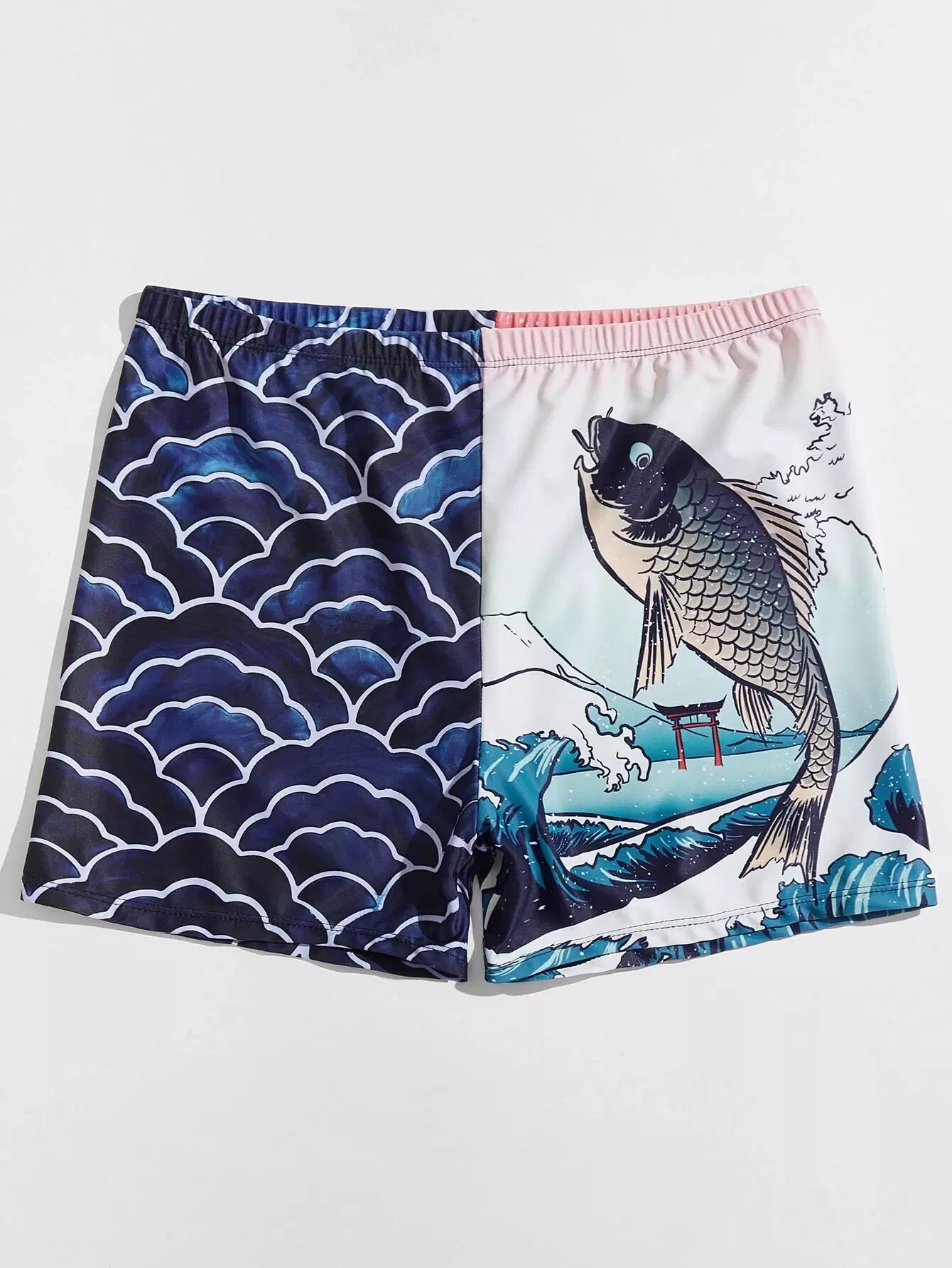 سروال سباحة بطبعة أسماك وأمواج للرجال