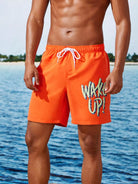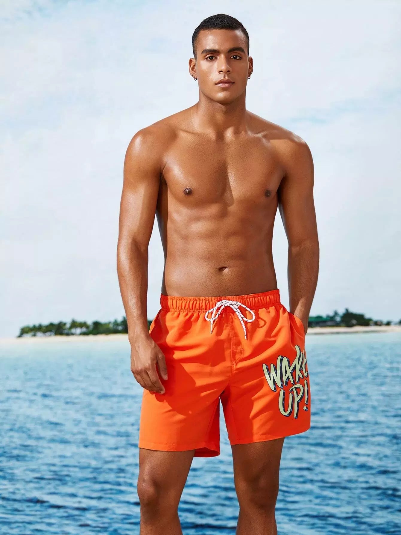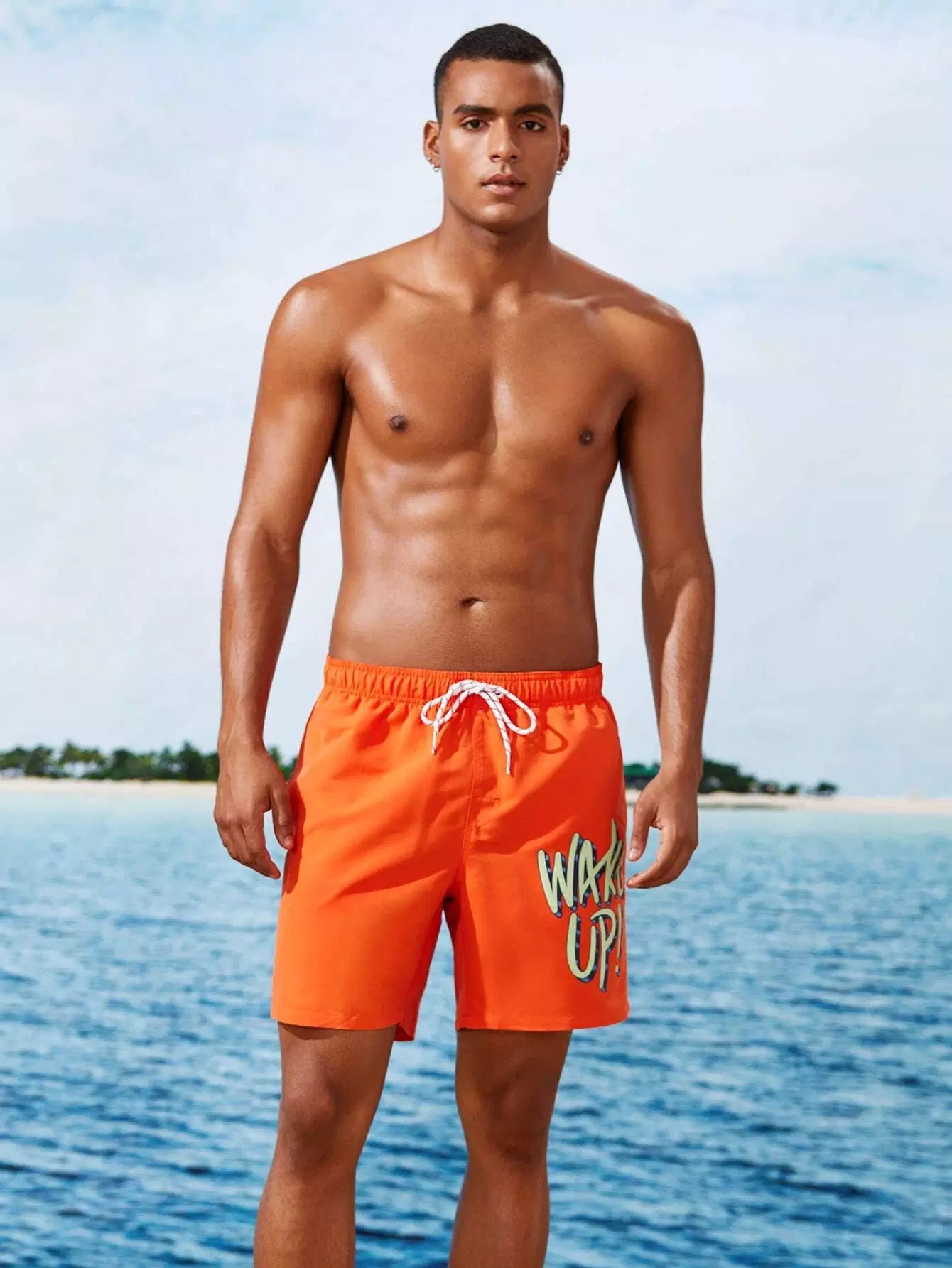 بنطلون سباحة رجالي برسومات حروف على الخصر برباط خصر رجالي