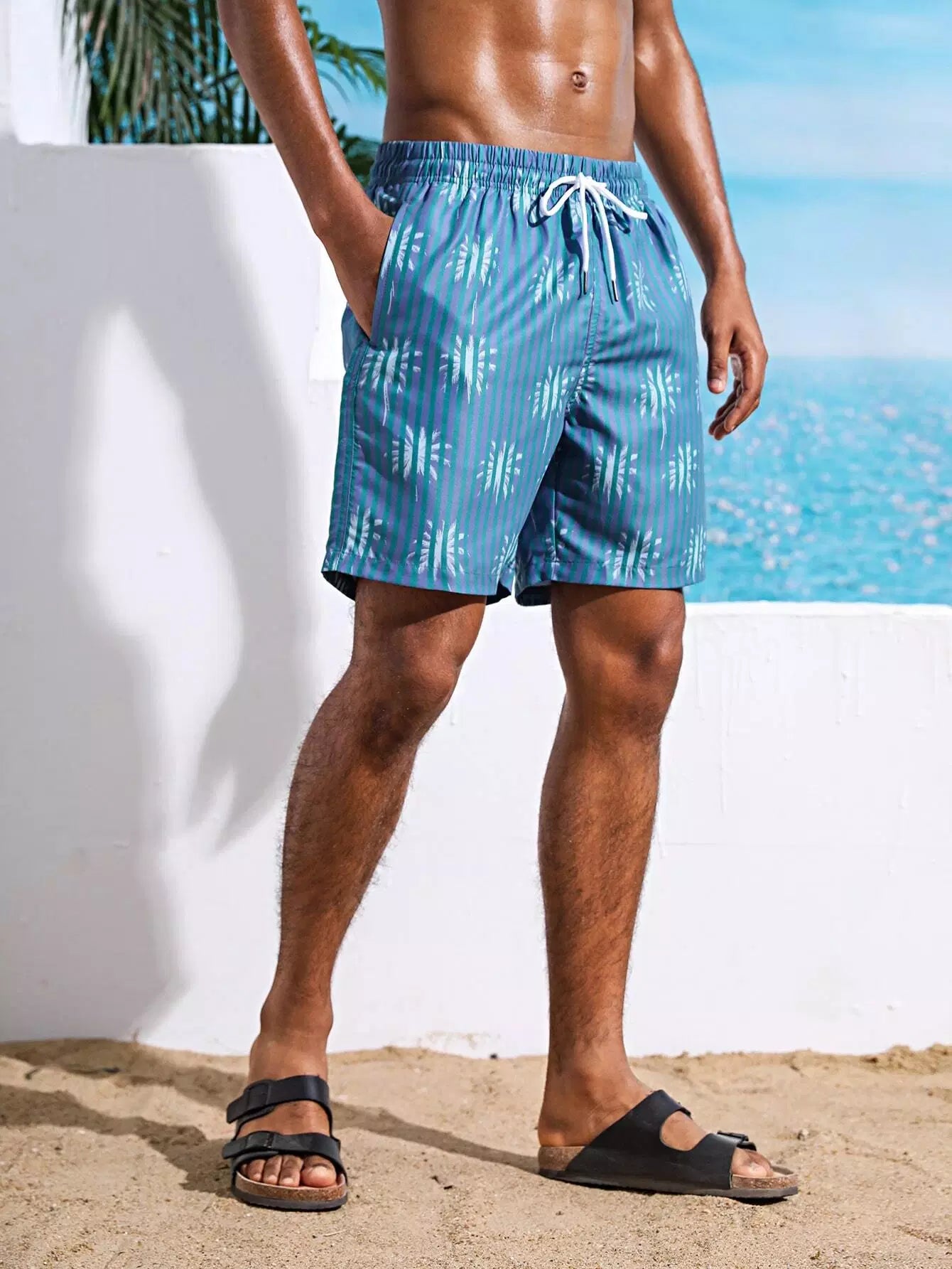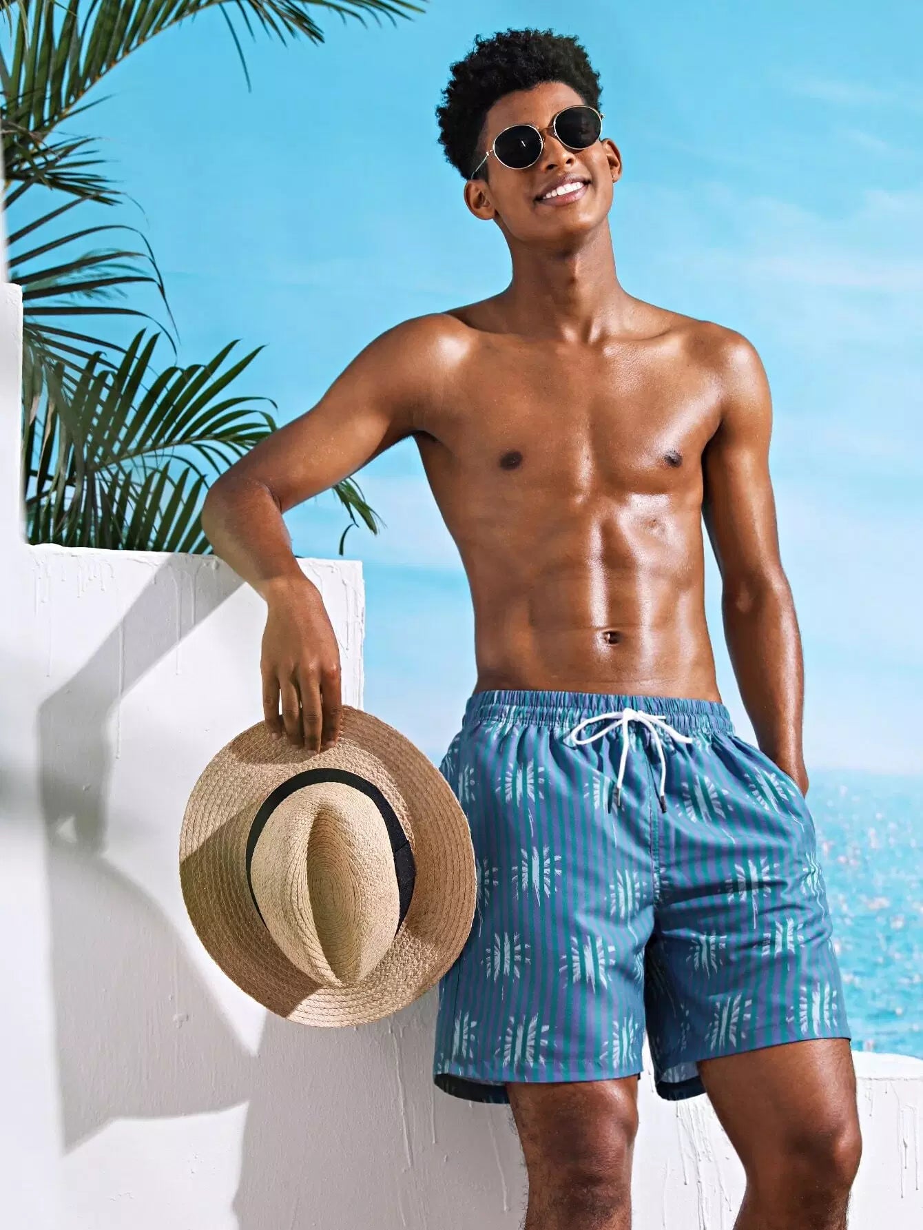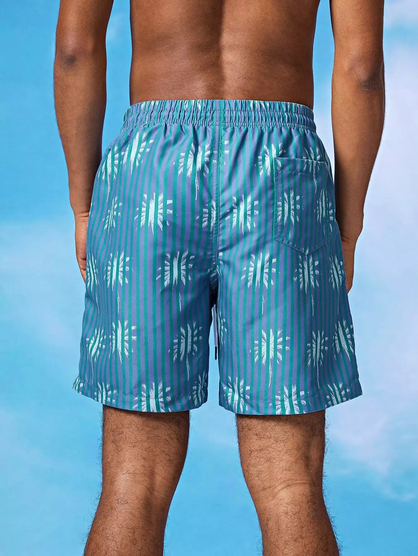 سروال سباحة بطبعة شجرة النخيل للرجال برباط خصر مربوط