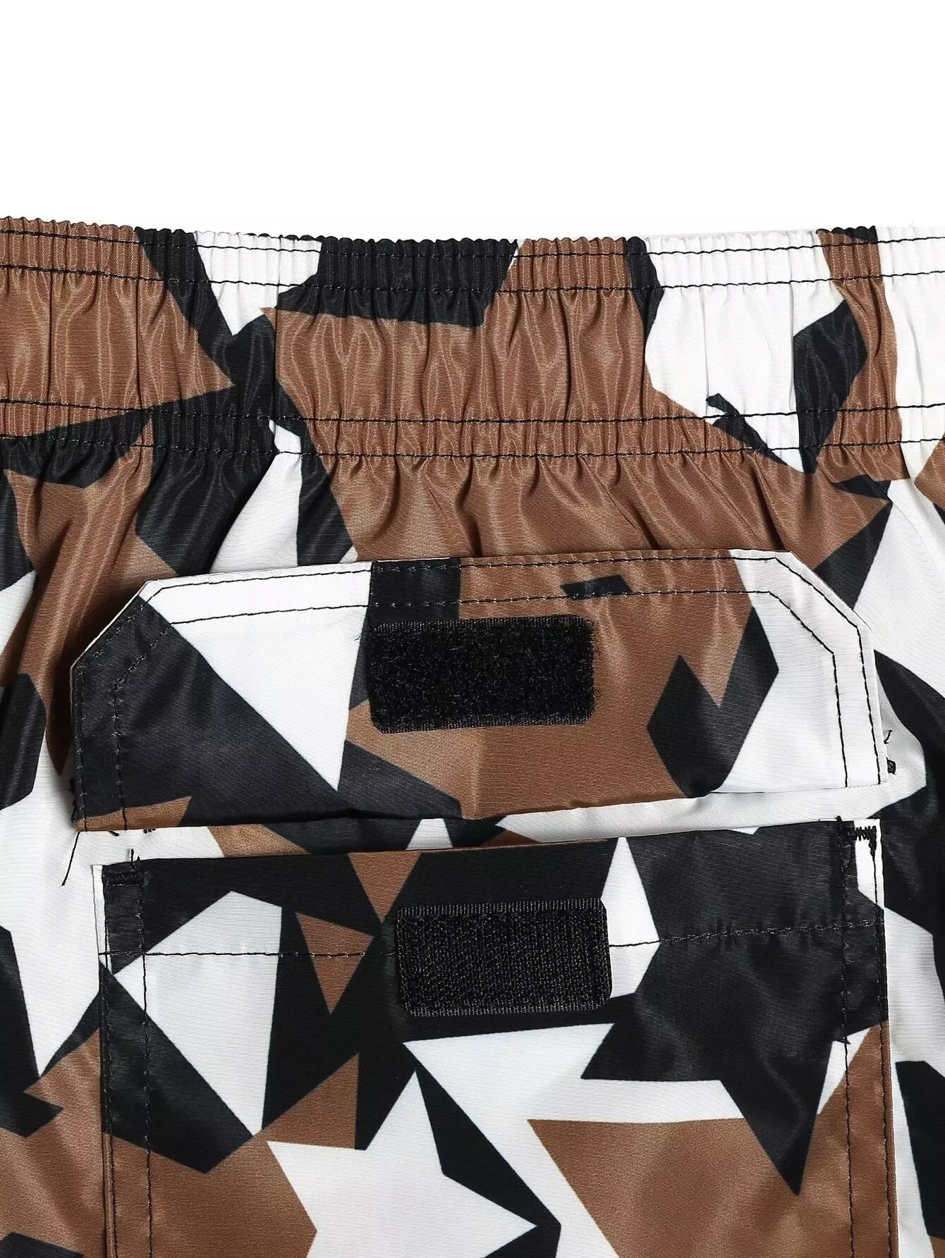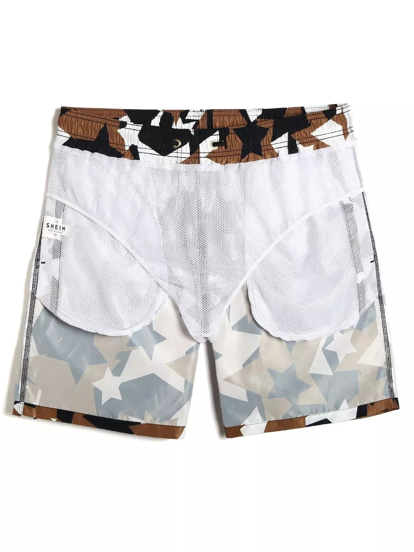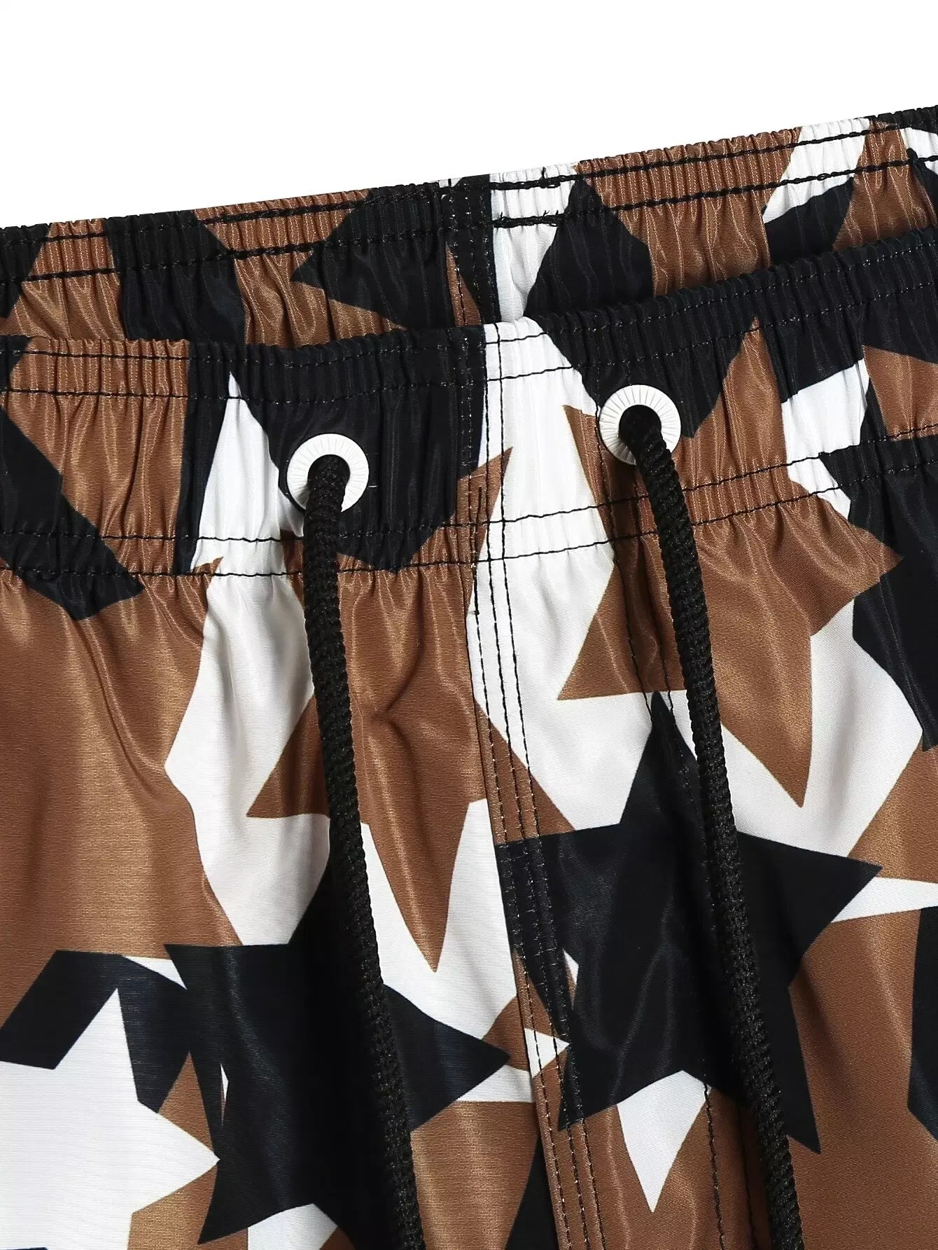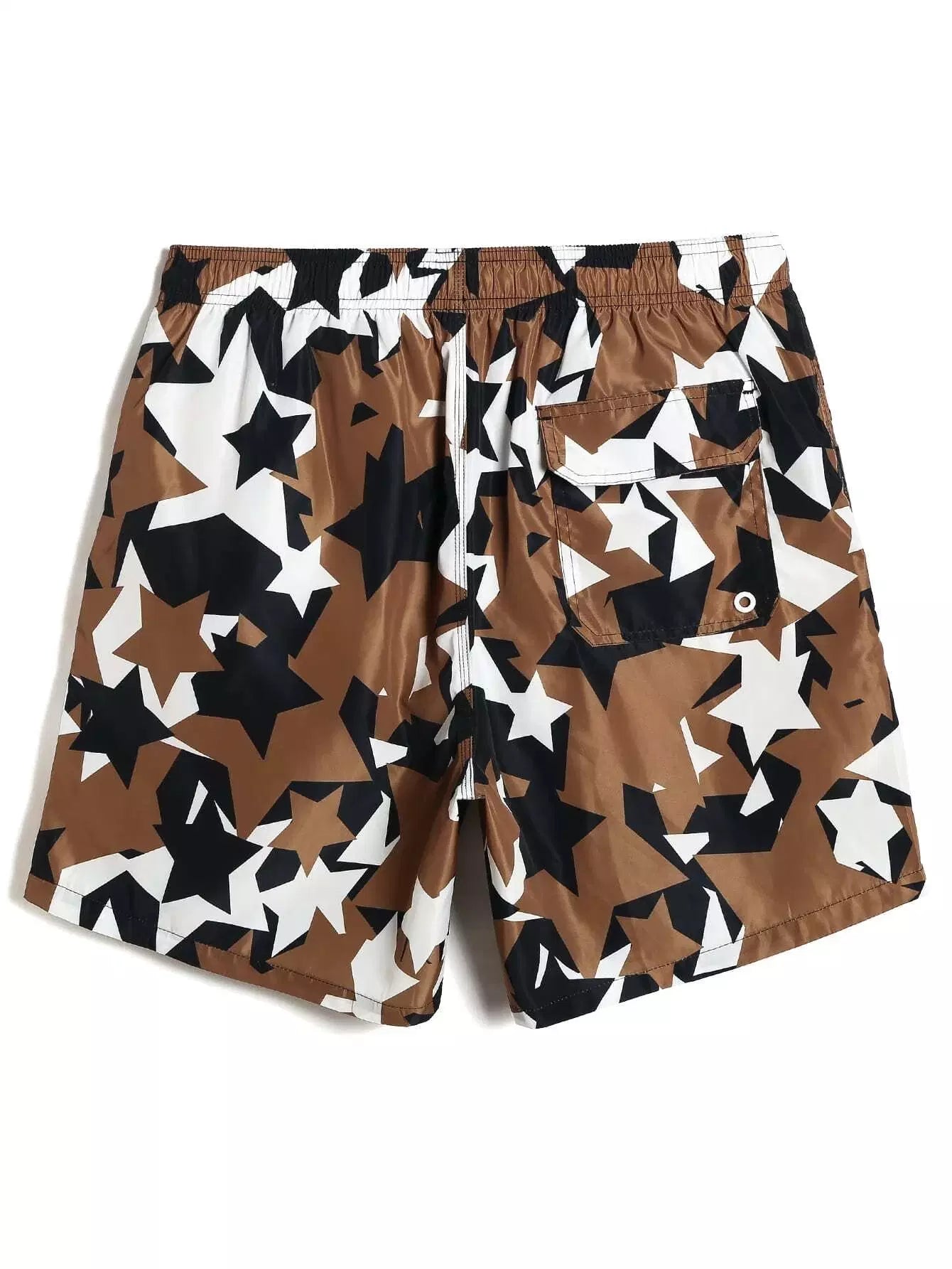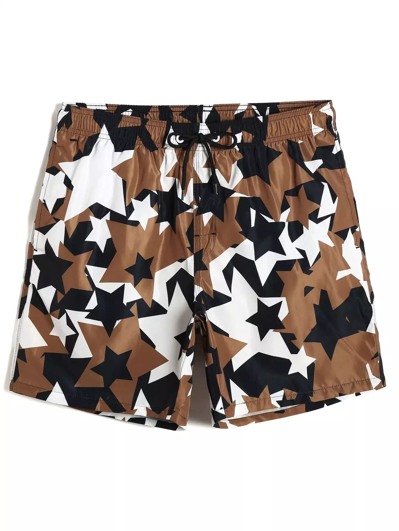سروال سباحة بطبعة نجوم مطبوع عليه رباط خصر للرجال