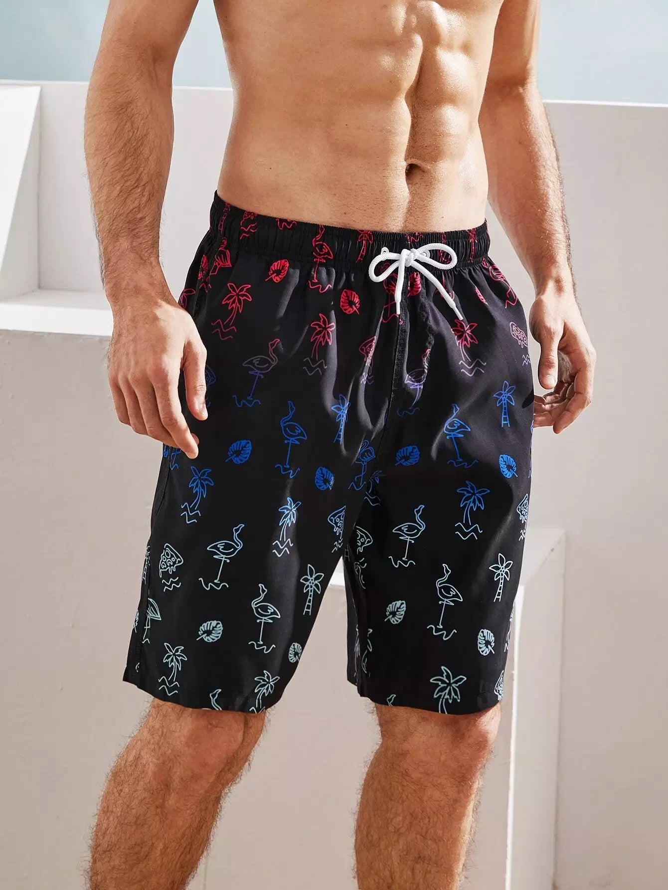 سروال سباحة رجالي بطبعة فلامنغو استوائي وطبعة فلامنغو