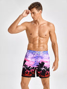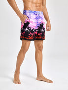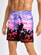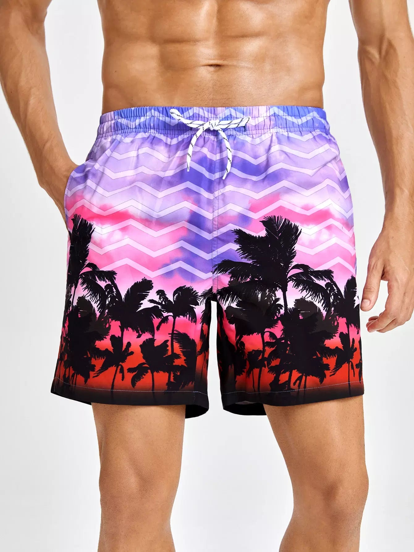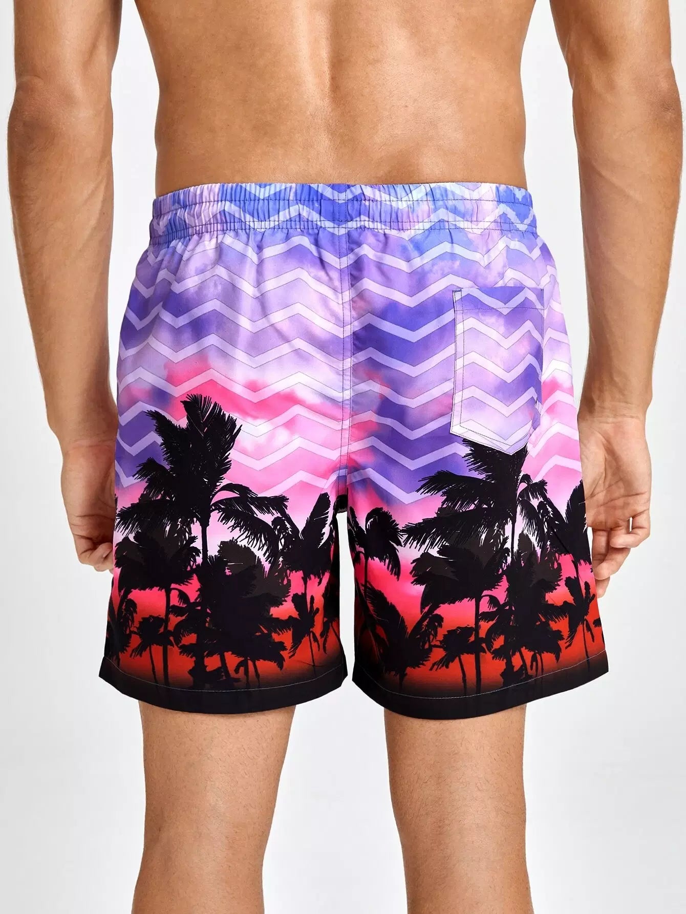 سروال سباحة رجالي بطبعة استوائية وطبعة شيفرون برباط خصر مربوط للرجال