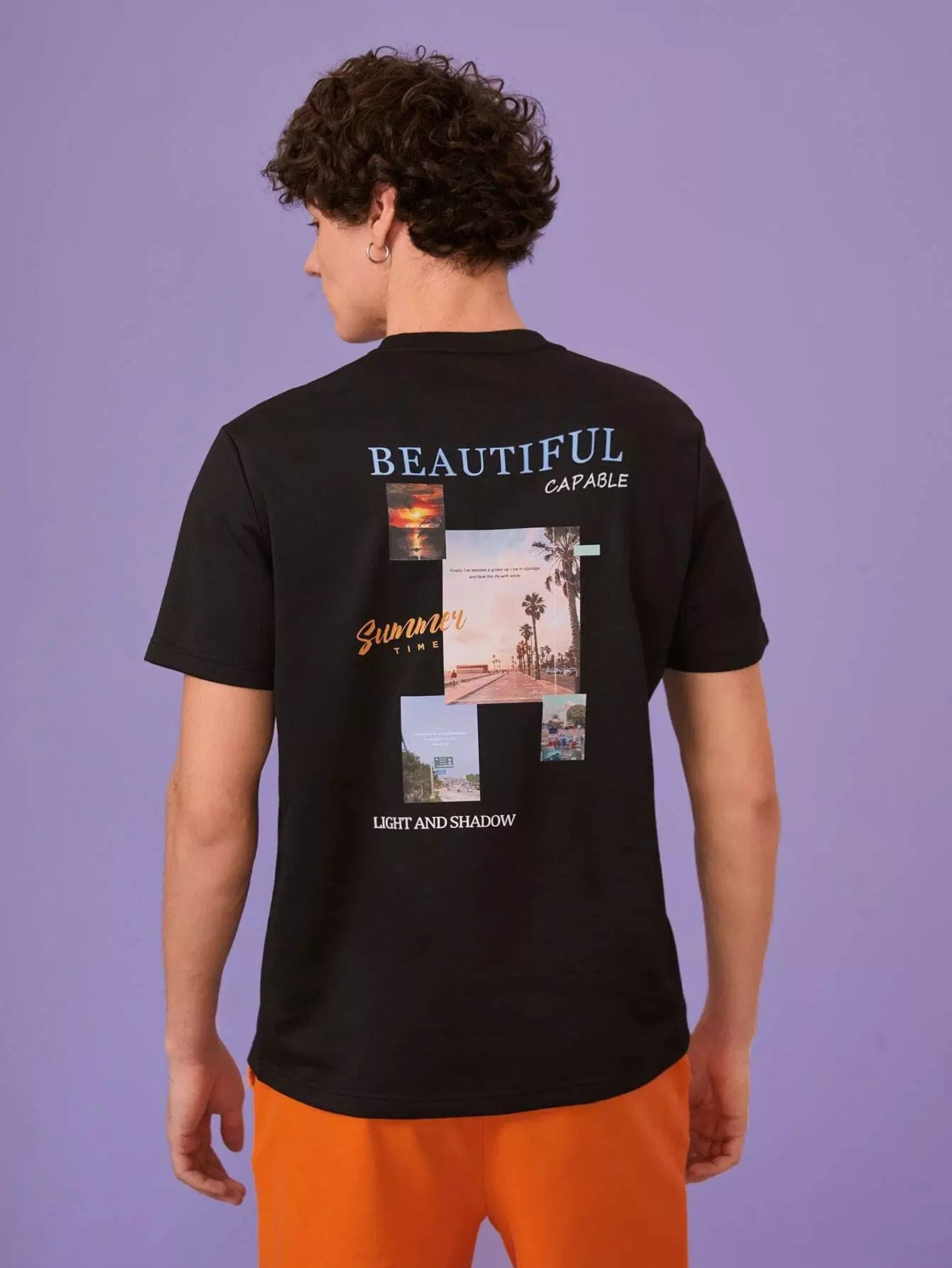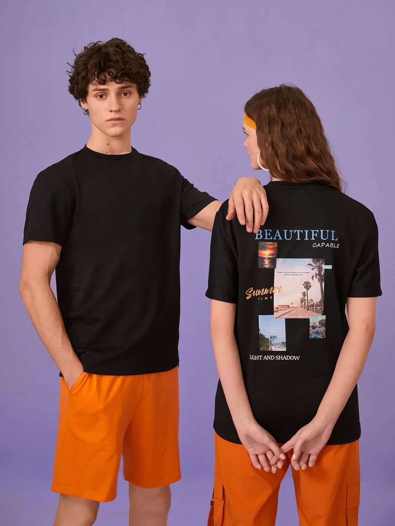 تي شيرت مطبوع عليه حرف وصورة 1 قطعة