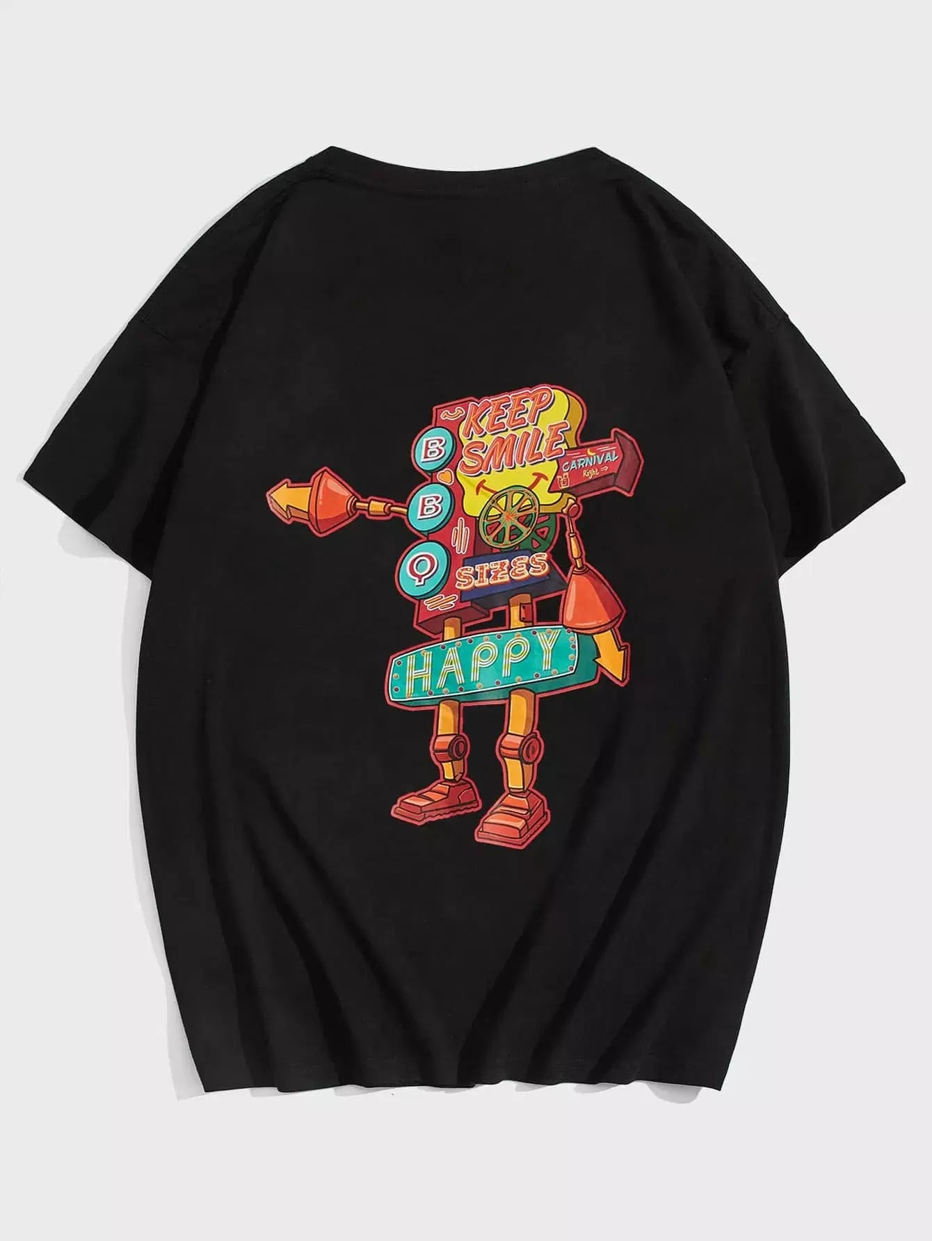 تي شيرت رجالي برسومات شبابية كبيرة الحجم