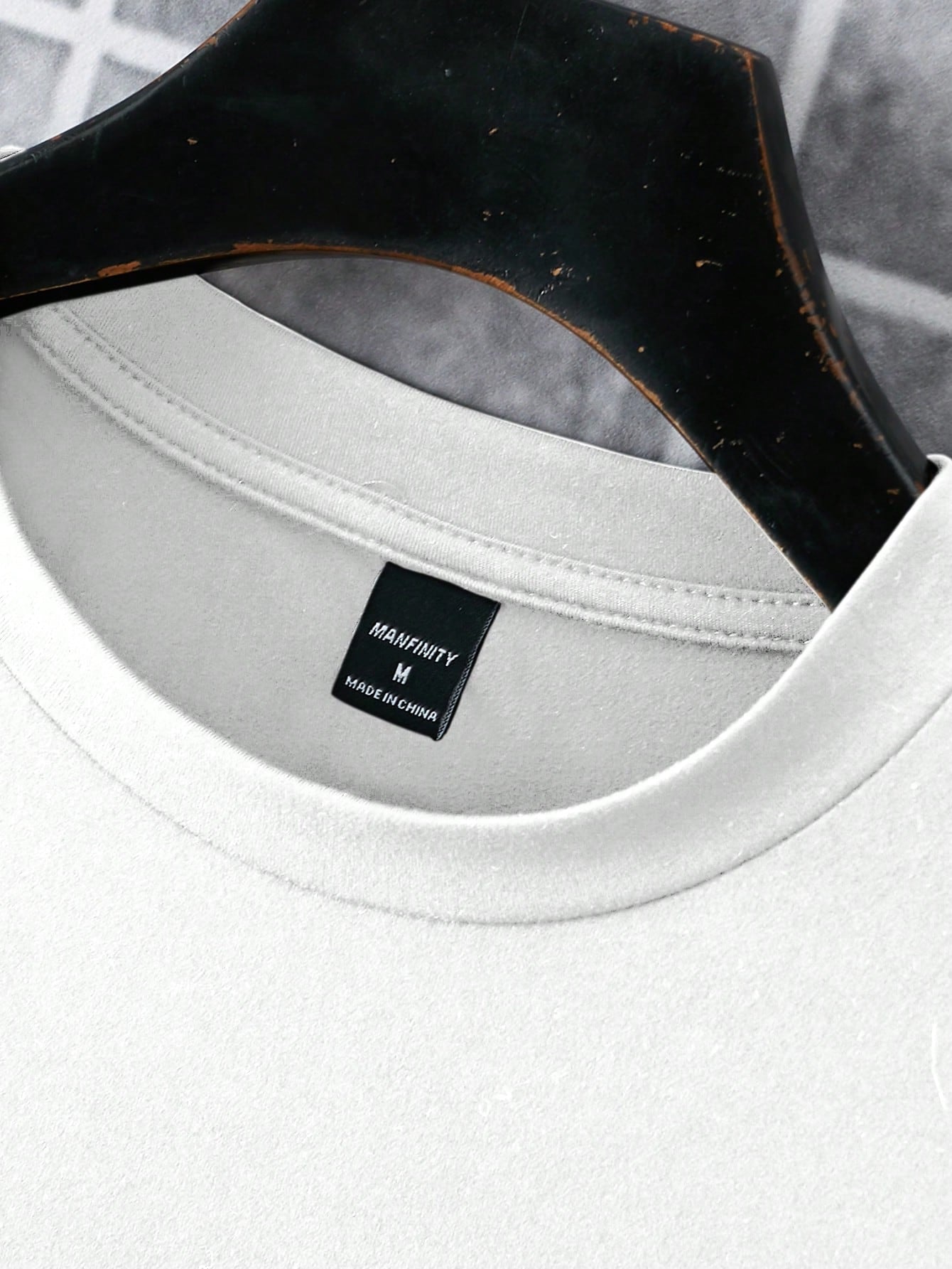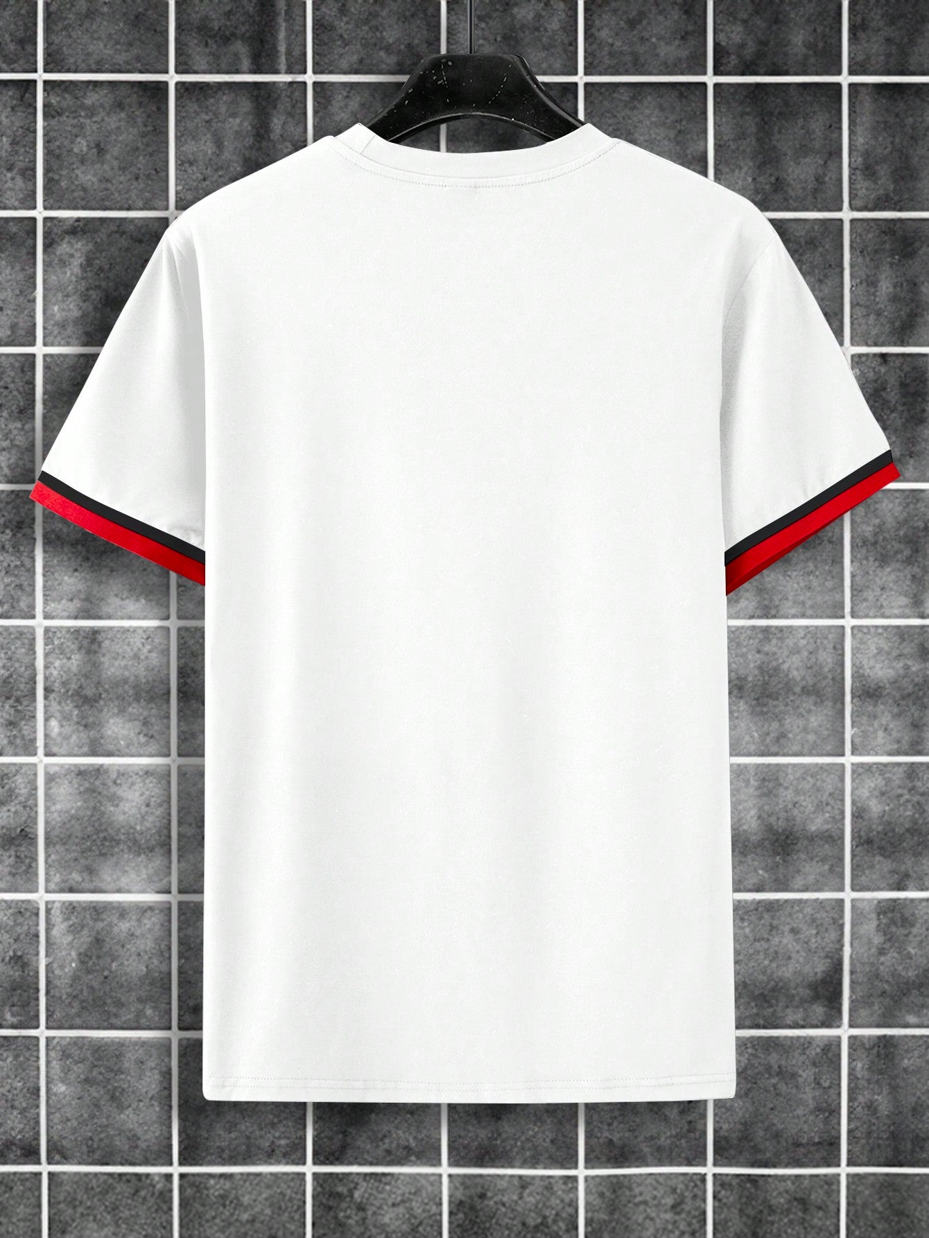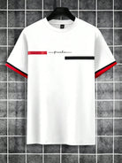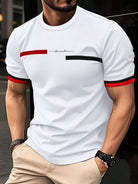 طقم رجالي أنيق من مانفينيتي هوم - تصميم عصري: تي شيرت أبيض بأكمام قصيرة ورقبة دائرية، مزود بجيب أمامي على الصدر وشعار مطرز بدقة على شكل نجمة وريشة.
