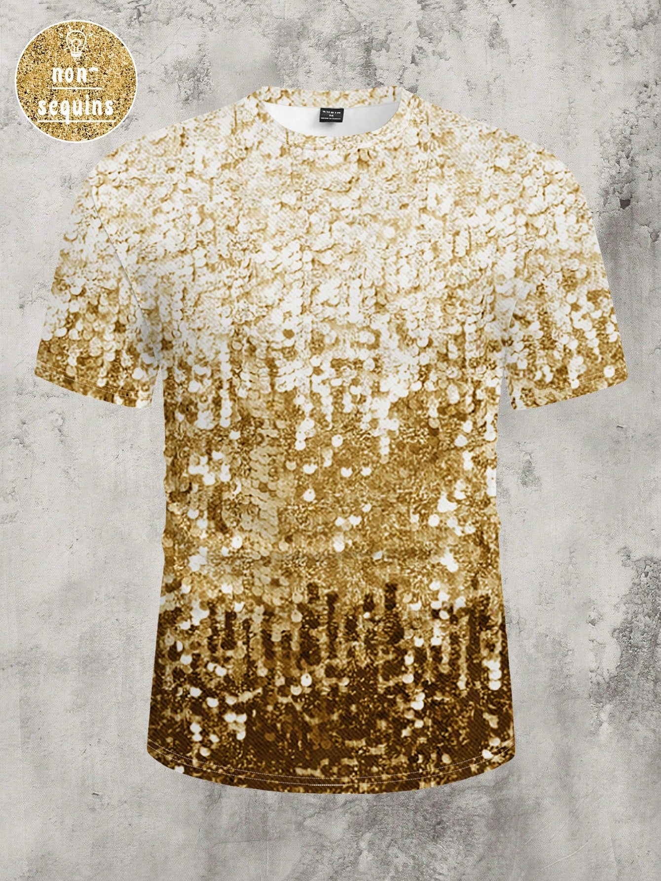 تيشيرت رجالي من مانفينيتي هوم، بقصة عادية وأكمام قصيرة، مزين بطبعة متدرجة لامعة.