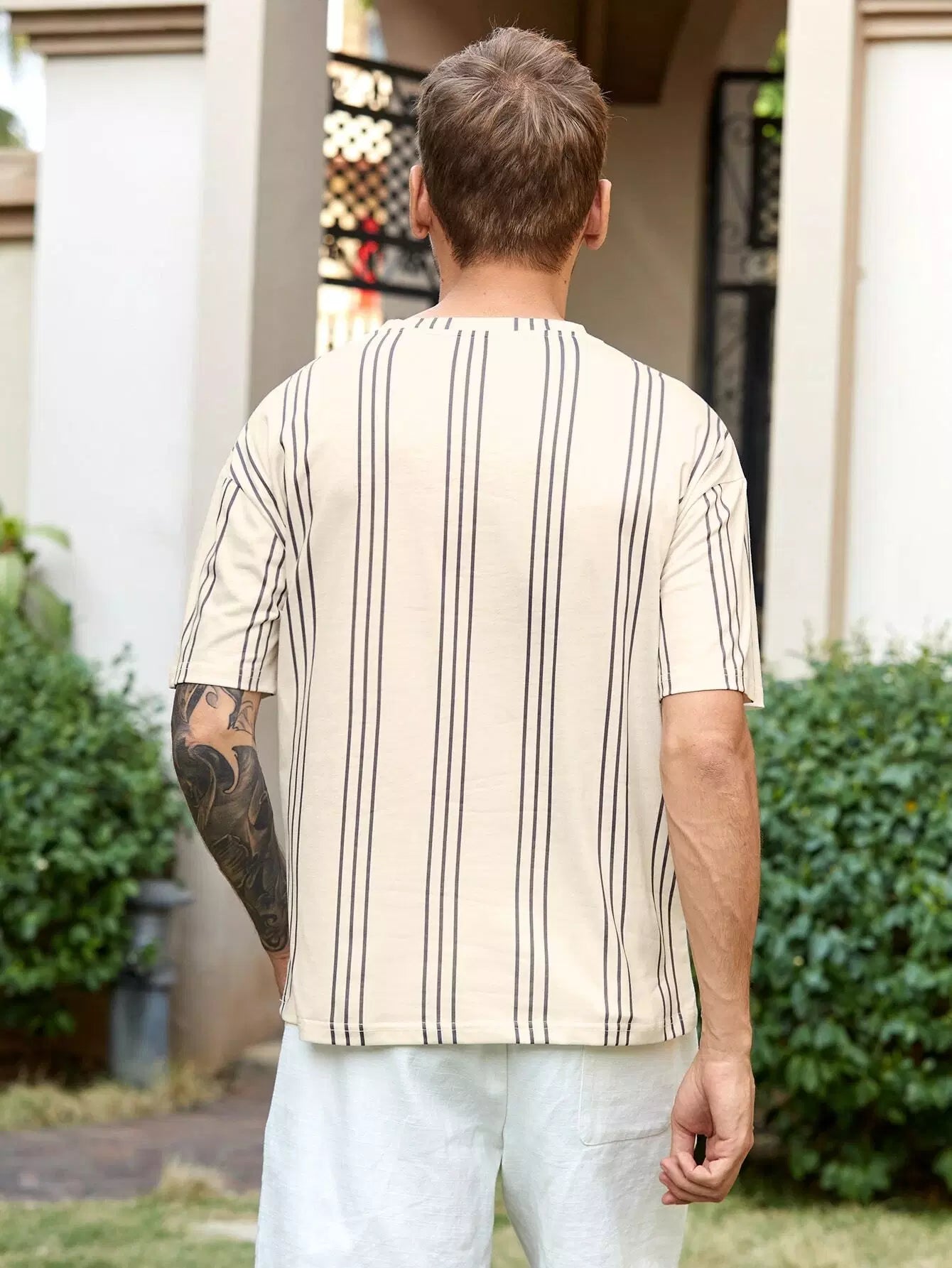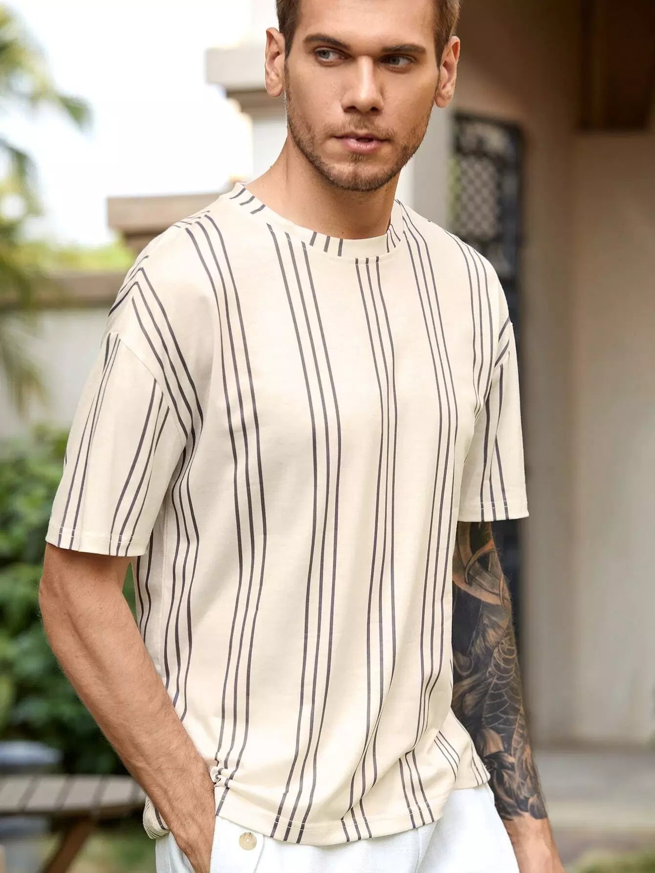تي شيرت رجالي 1 قطعة مخطط عمودي منسدل الكتف للرجال