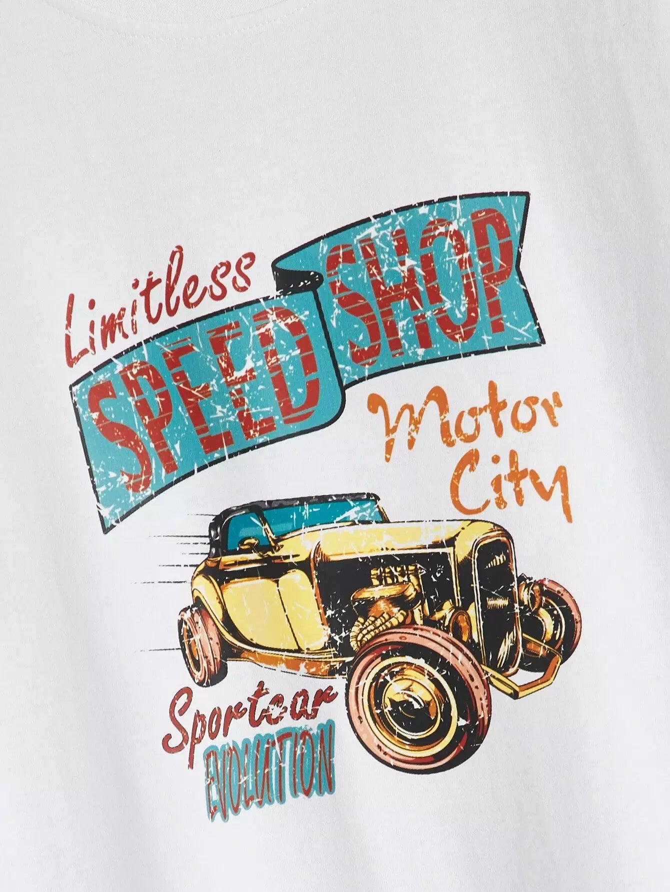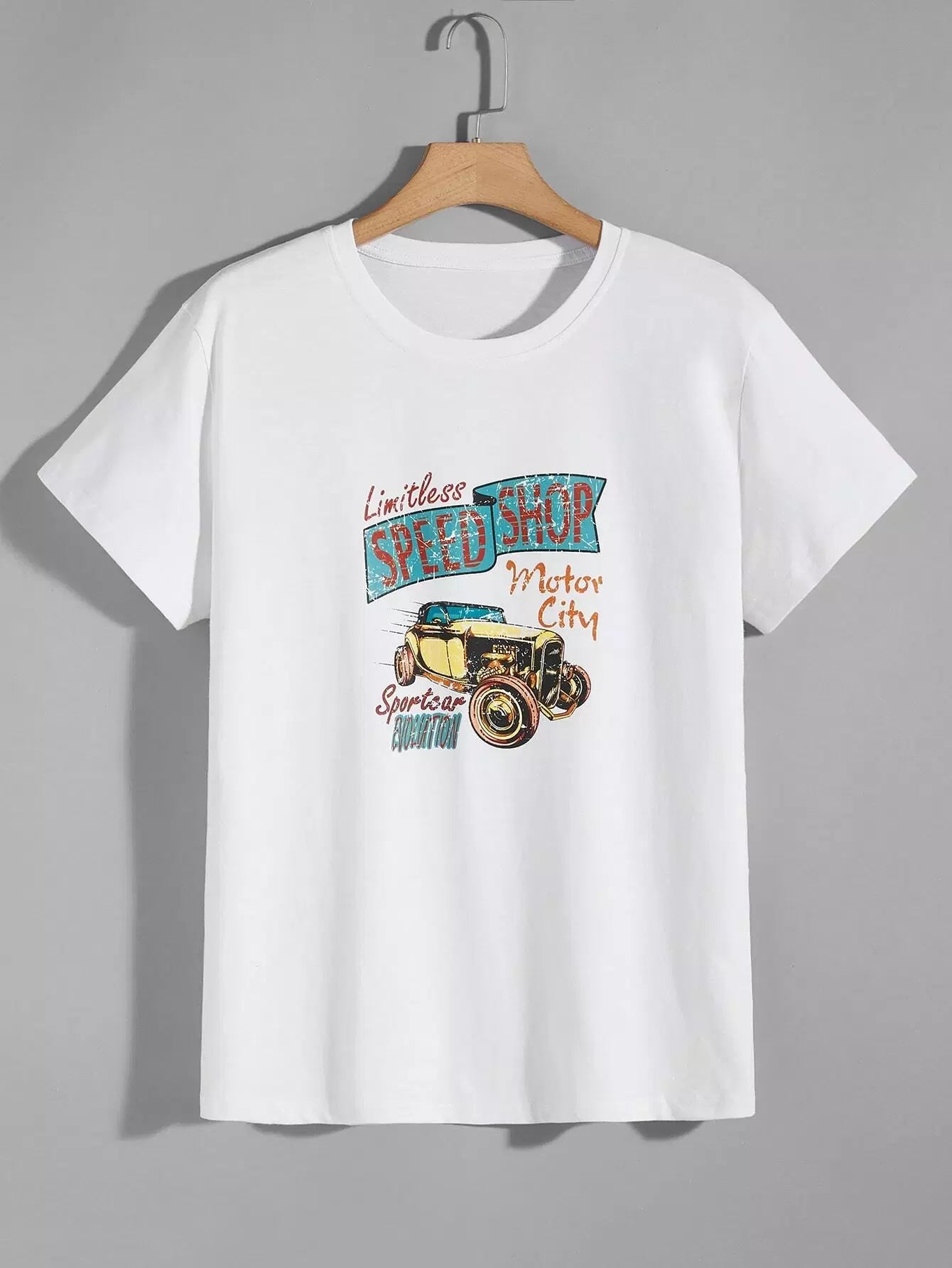 تي شيرت رجالي بتصميم سيارة ورسومات حروف