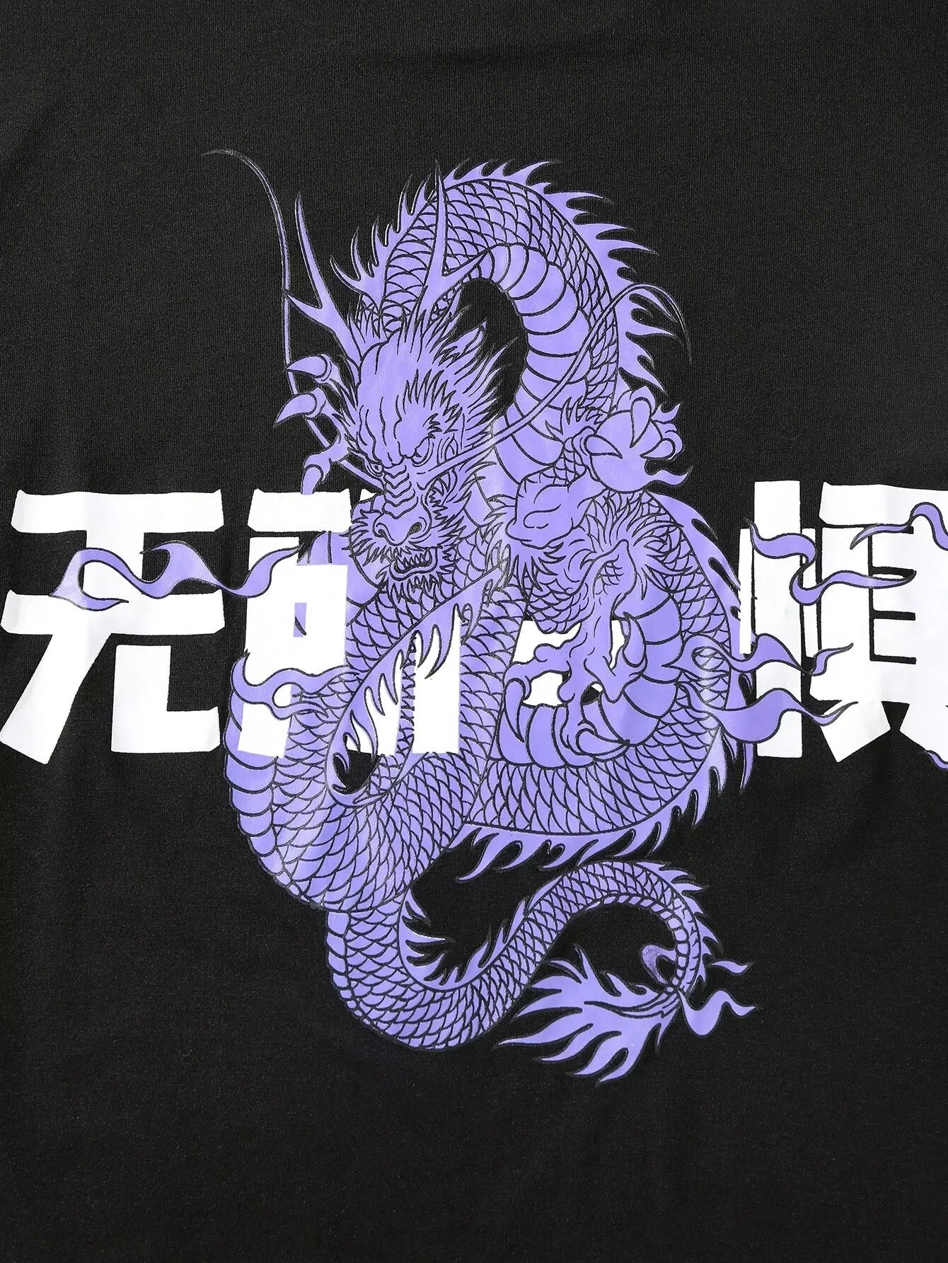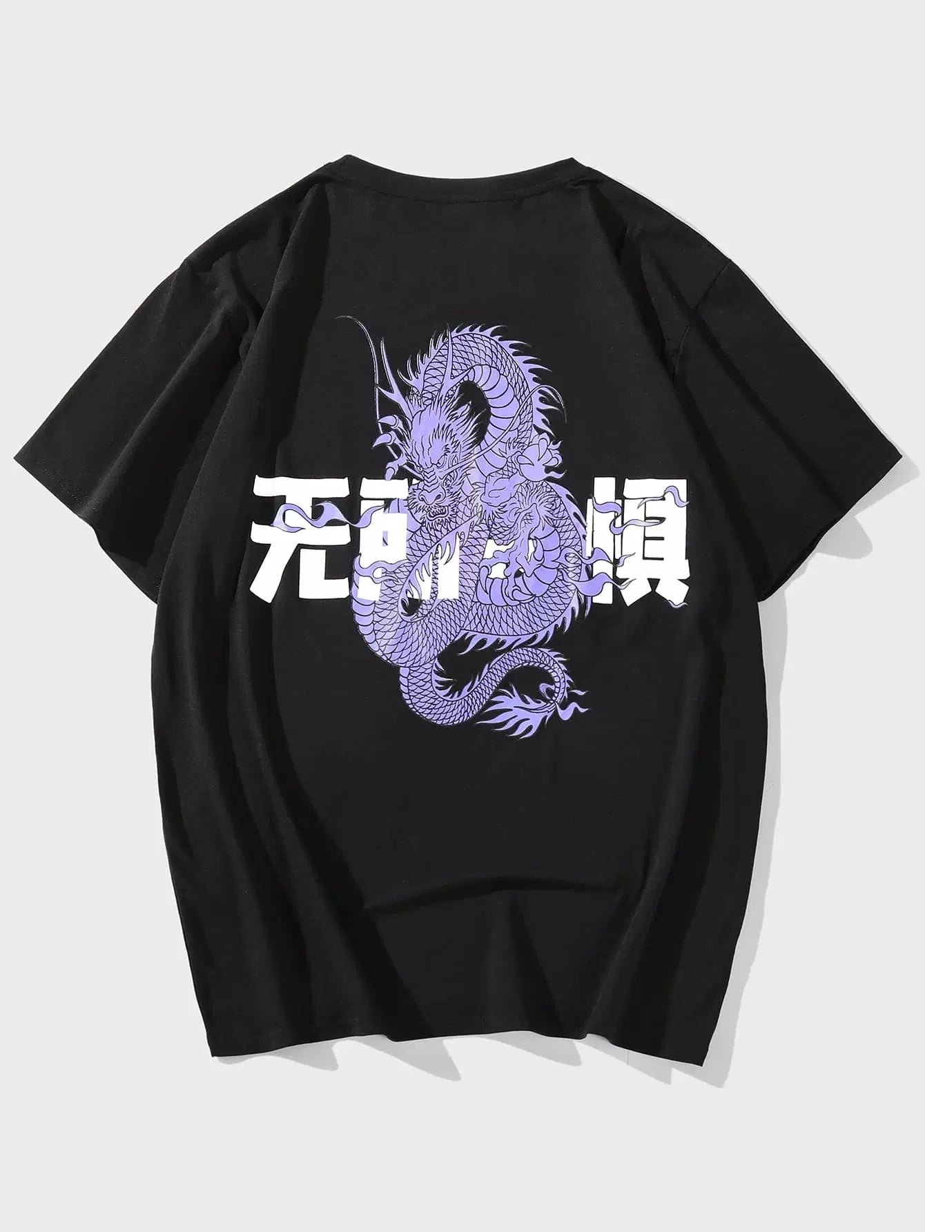 تي شيرت رجالي صيني برسوم تنين وحرف صيني
