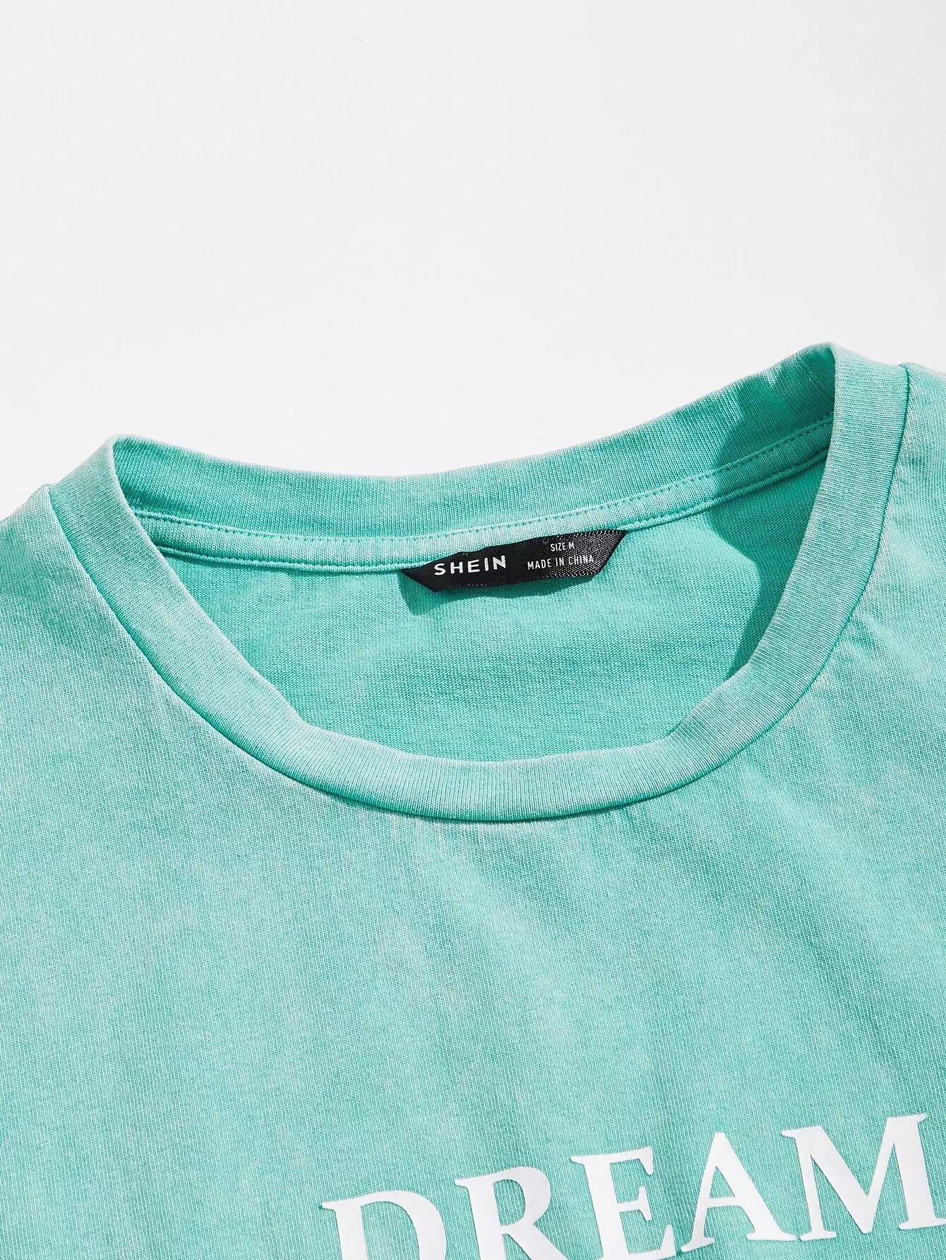 تي شيرت رجالي منسدل الكتف بشعار جرافيك