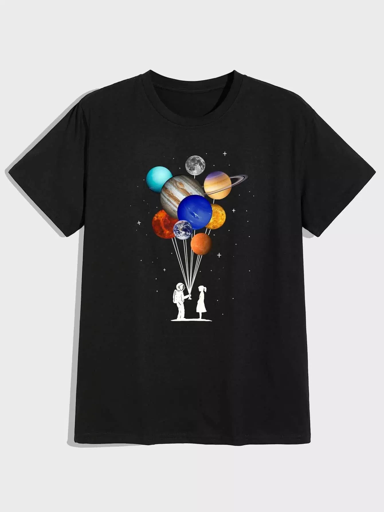 الرجال - تي شيرت مطبوع عليه شخصية وكوكب للرجال