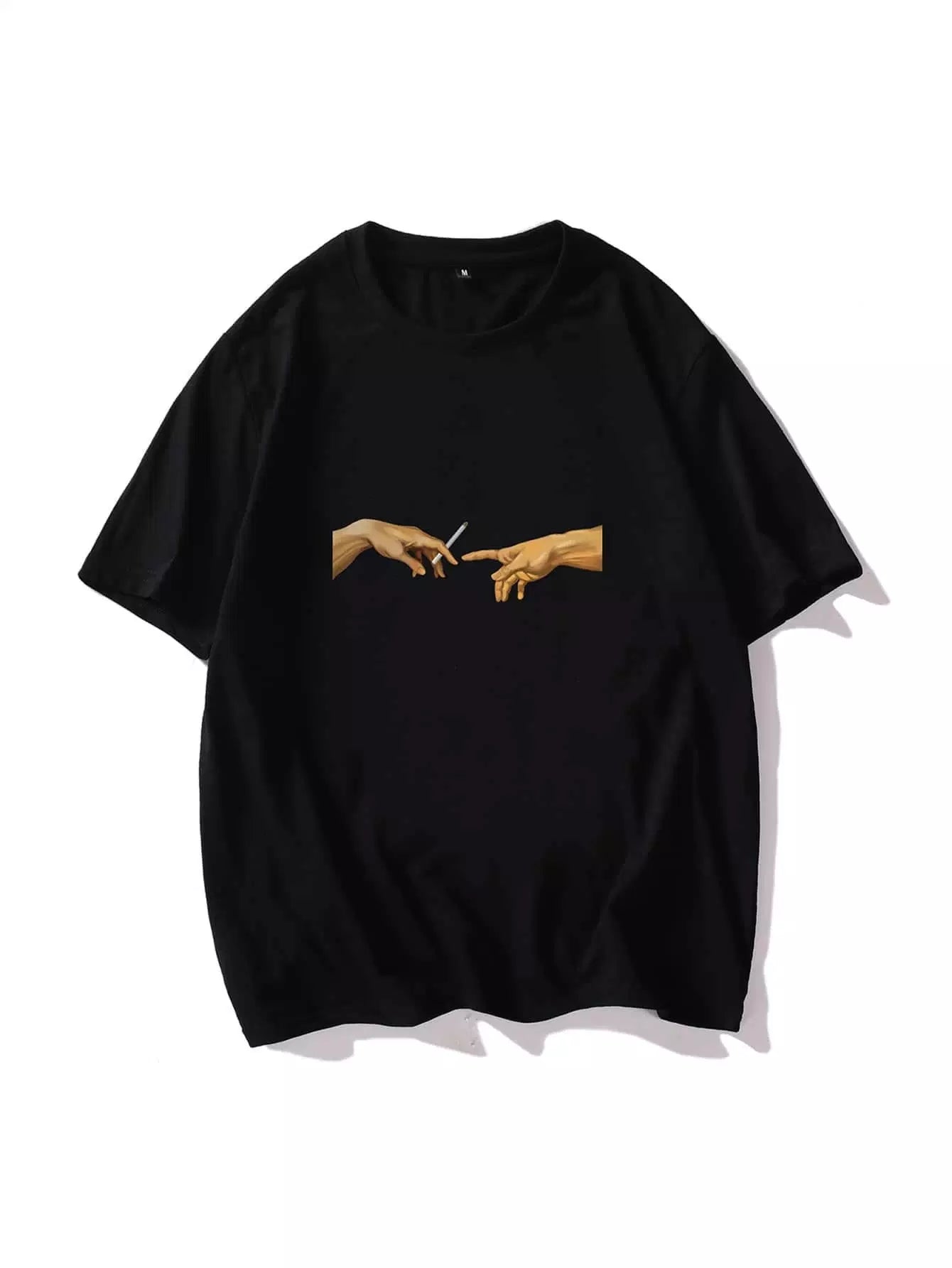 تي شيرت برقبة دائرية على شكل جرافيك رجالي