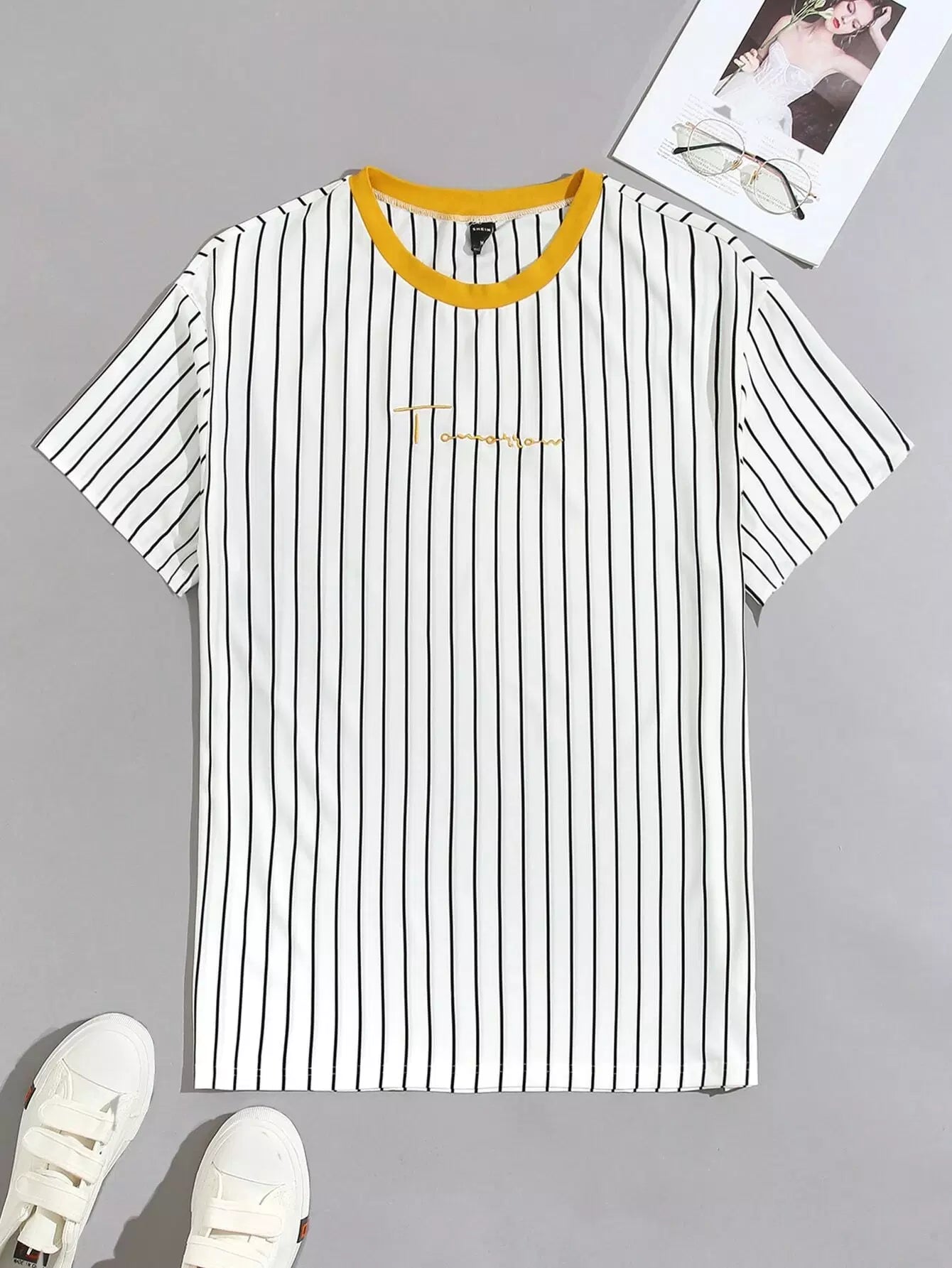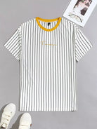 تي شيرت رجالي مخطط بتطريز حروف للرجال
