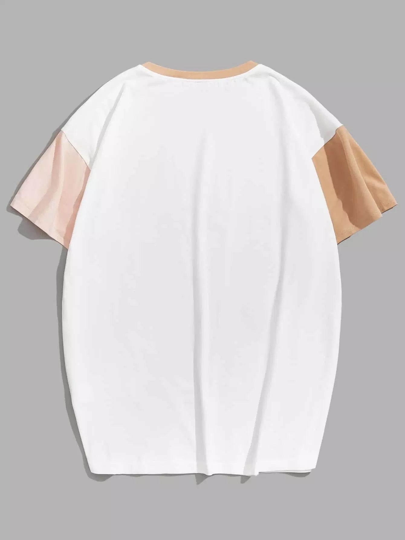 تي شيرت رجالي بأكمام جرافيك برسومات رجالية متباينة
