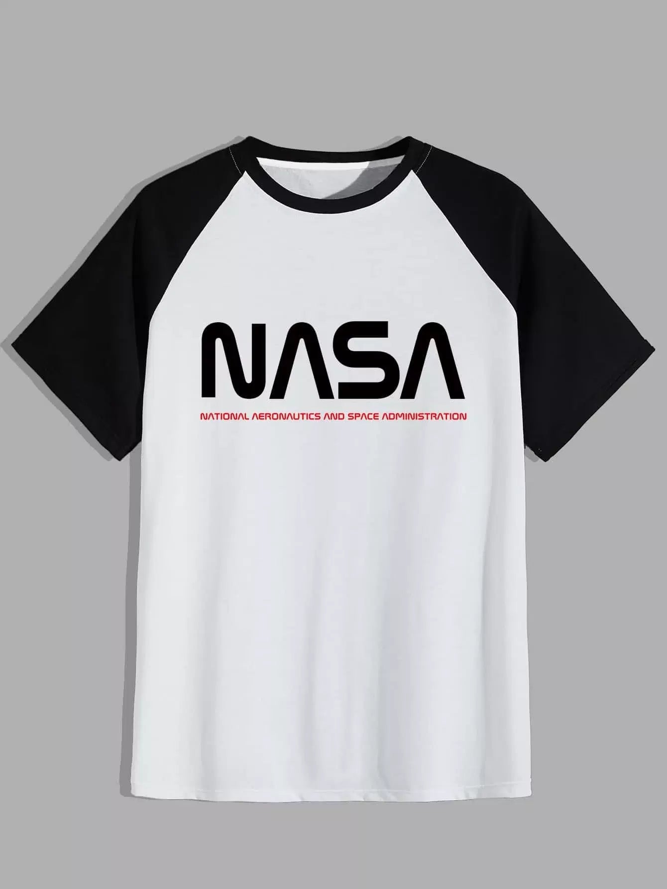 تي شيرت رجالي بأكمام راجلان ورسومات بأحرف