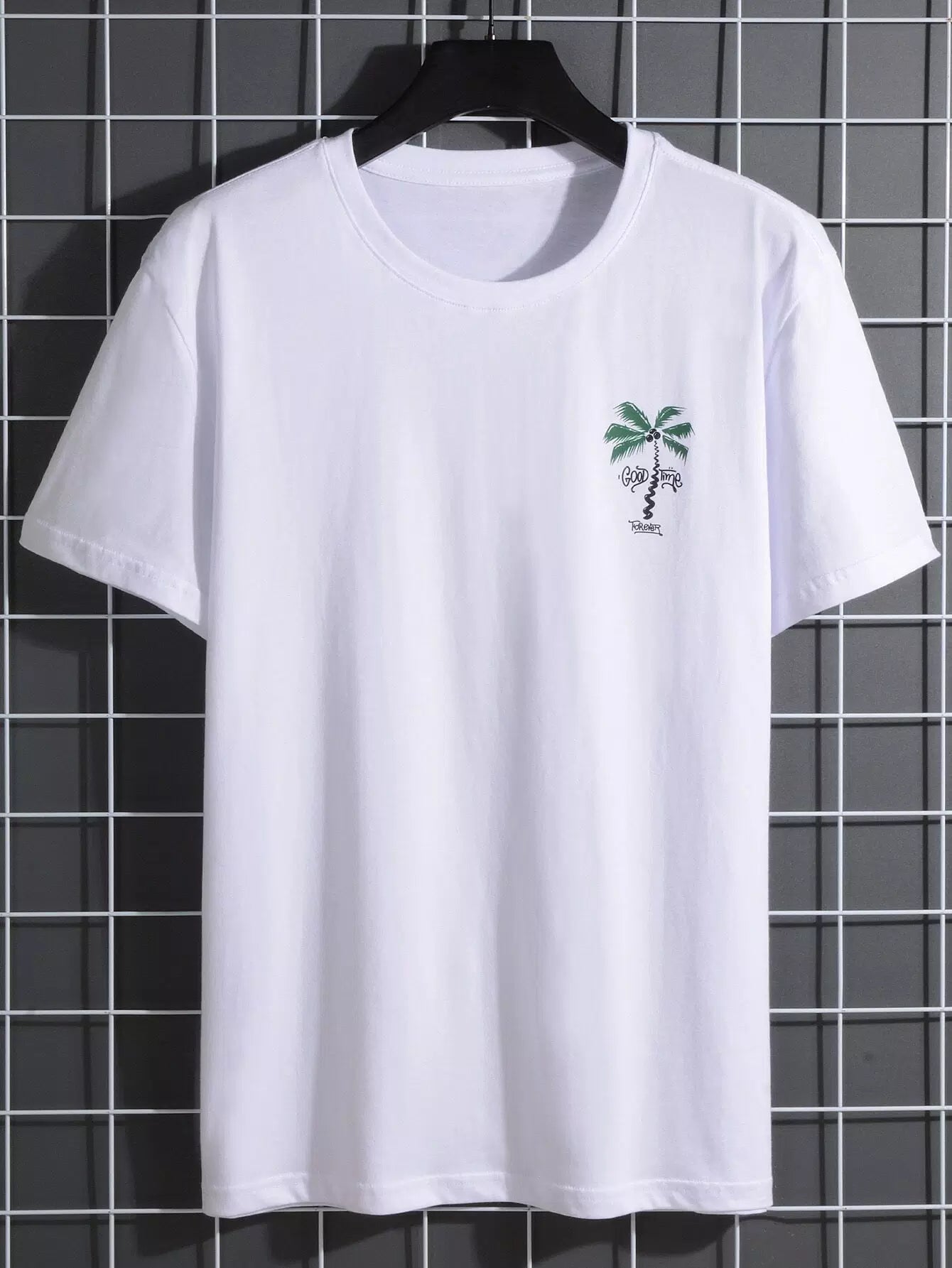تي شيرت رجالي بطبعة حروف ونباتات استوائية