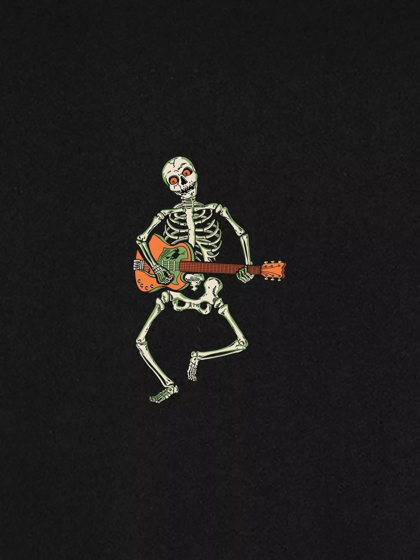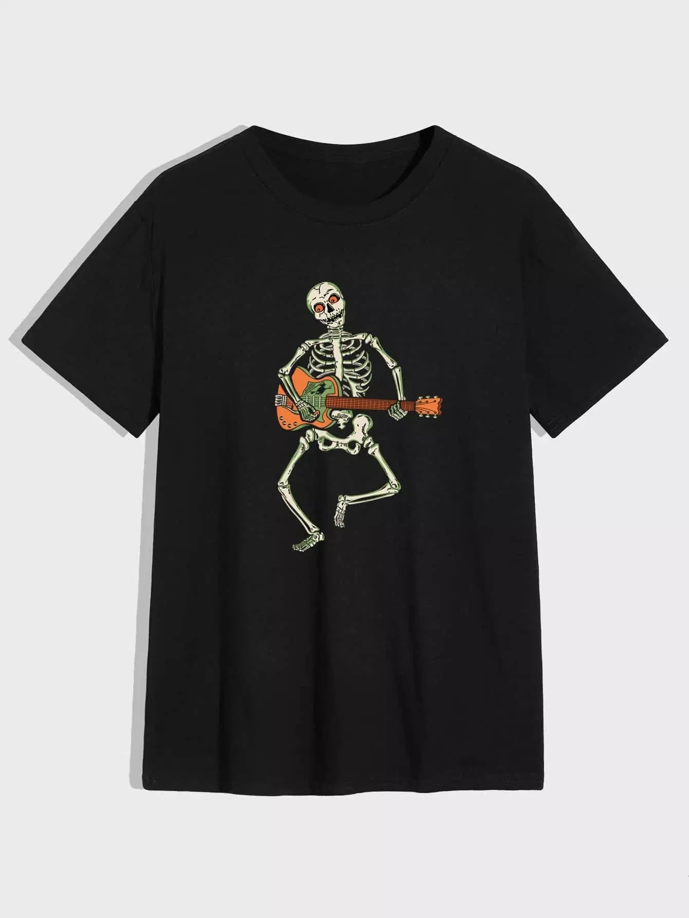 تي شيرت رجالي بطبعة آلة موسيقية وهيكل عظمي