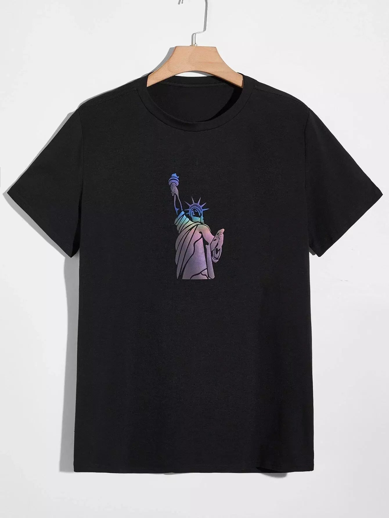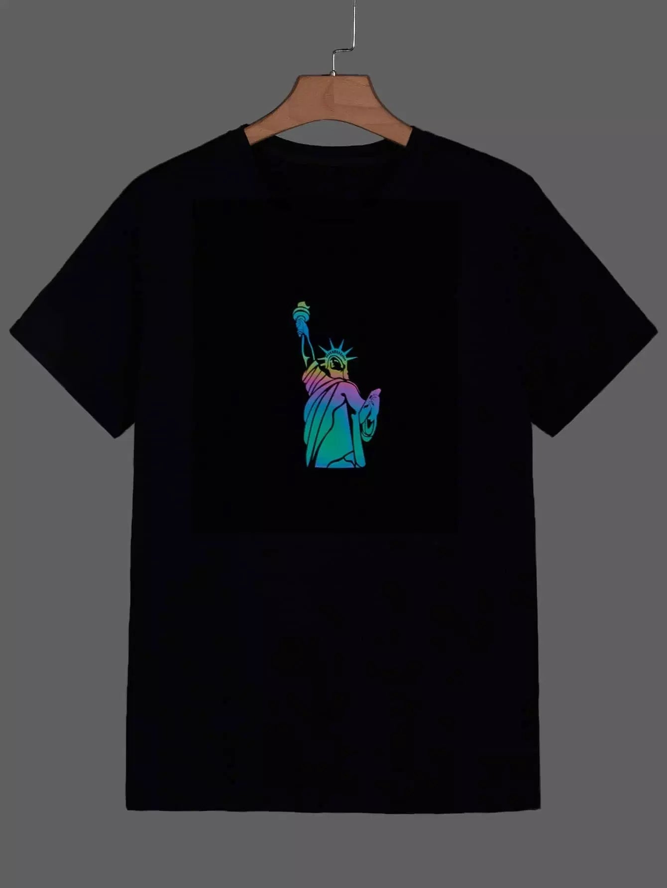 تي شيرت رجالي بطبعة تمثال الحرية العاكسة