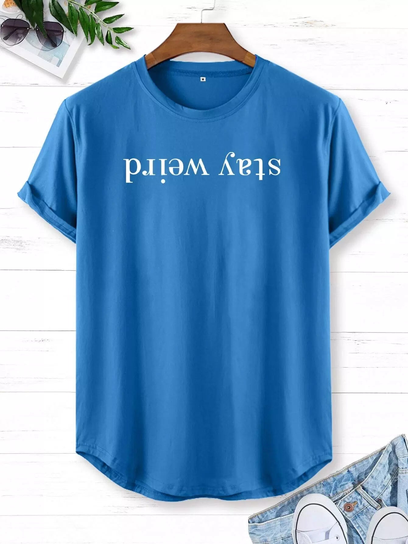 تي شيرت رجالي برقبة دائرية مزين بشعار جرافيكي