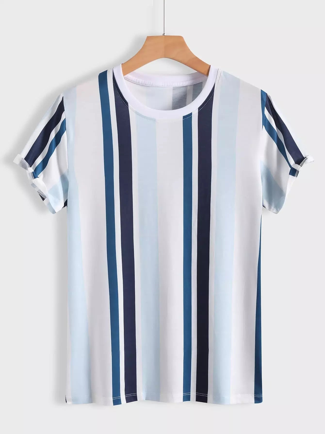 تي شيرت رجالي مخطط برقبة مستديرة