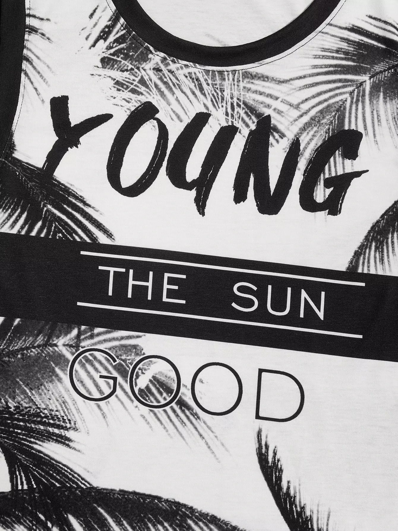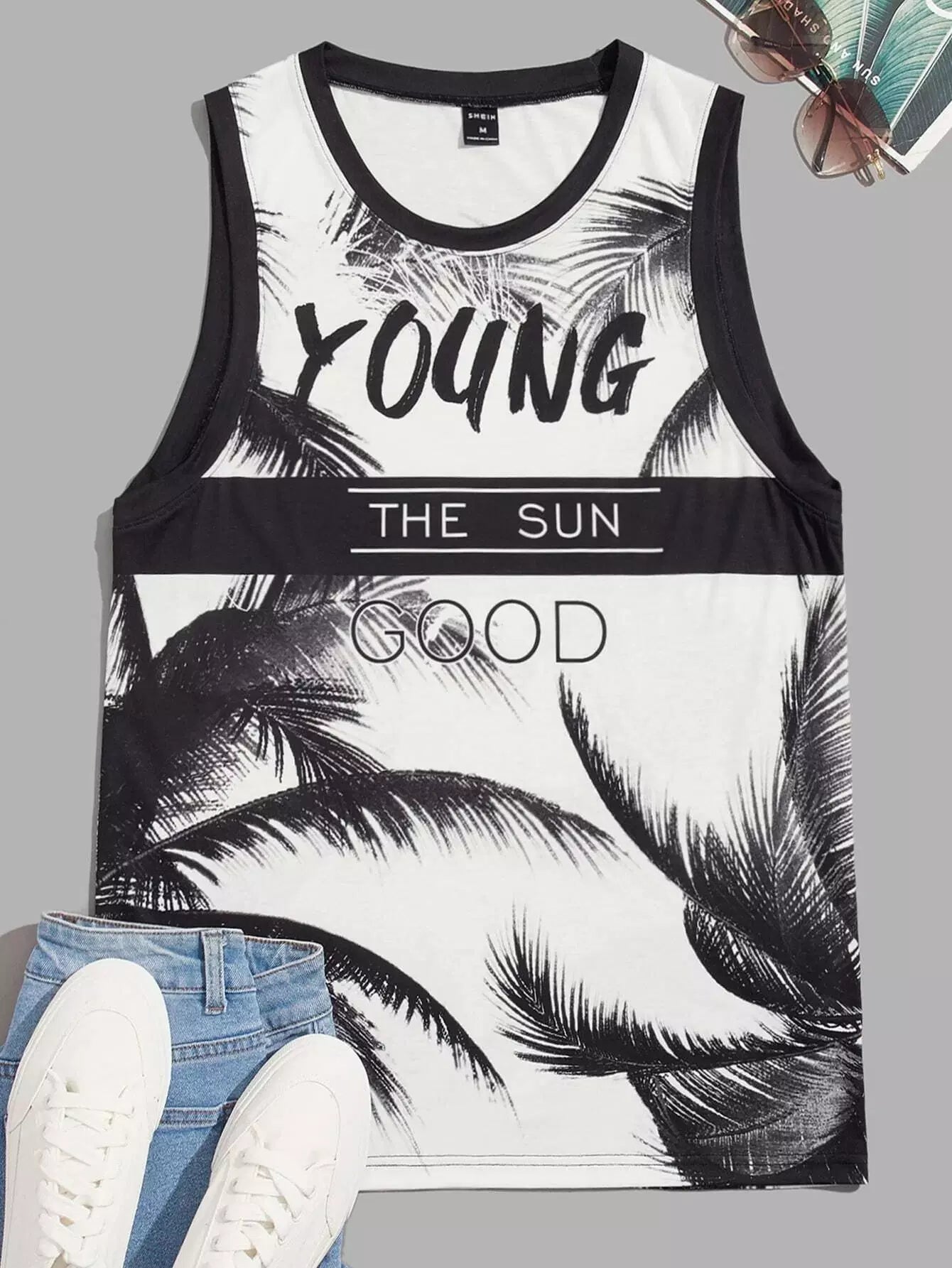 تيشيرت بدون أكمام بدون أكمام رجالي برسومات استوائية ورسومات حروف