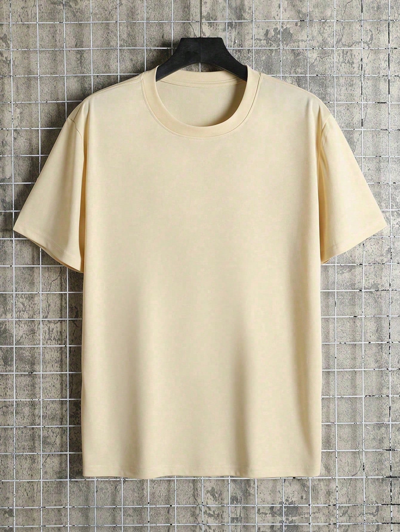 تيشيرت رجالي صيفي كاجوال بأكمام قصيرة ورقبة دائرية مزين بشعار وطبعة فنية