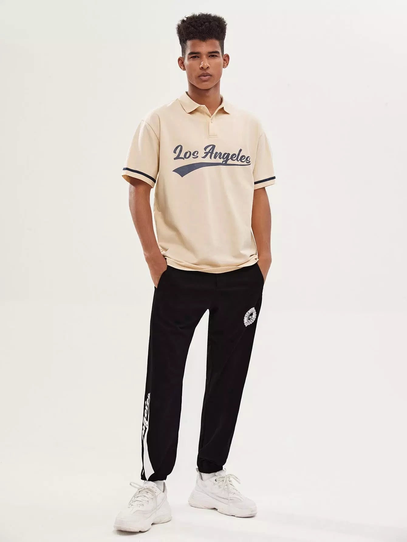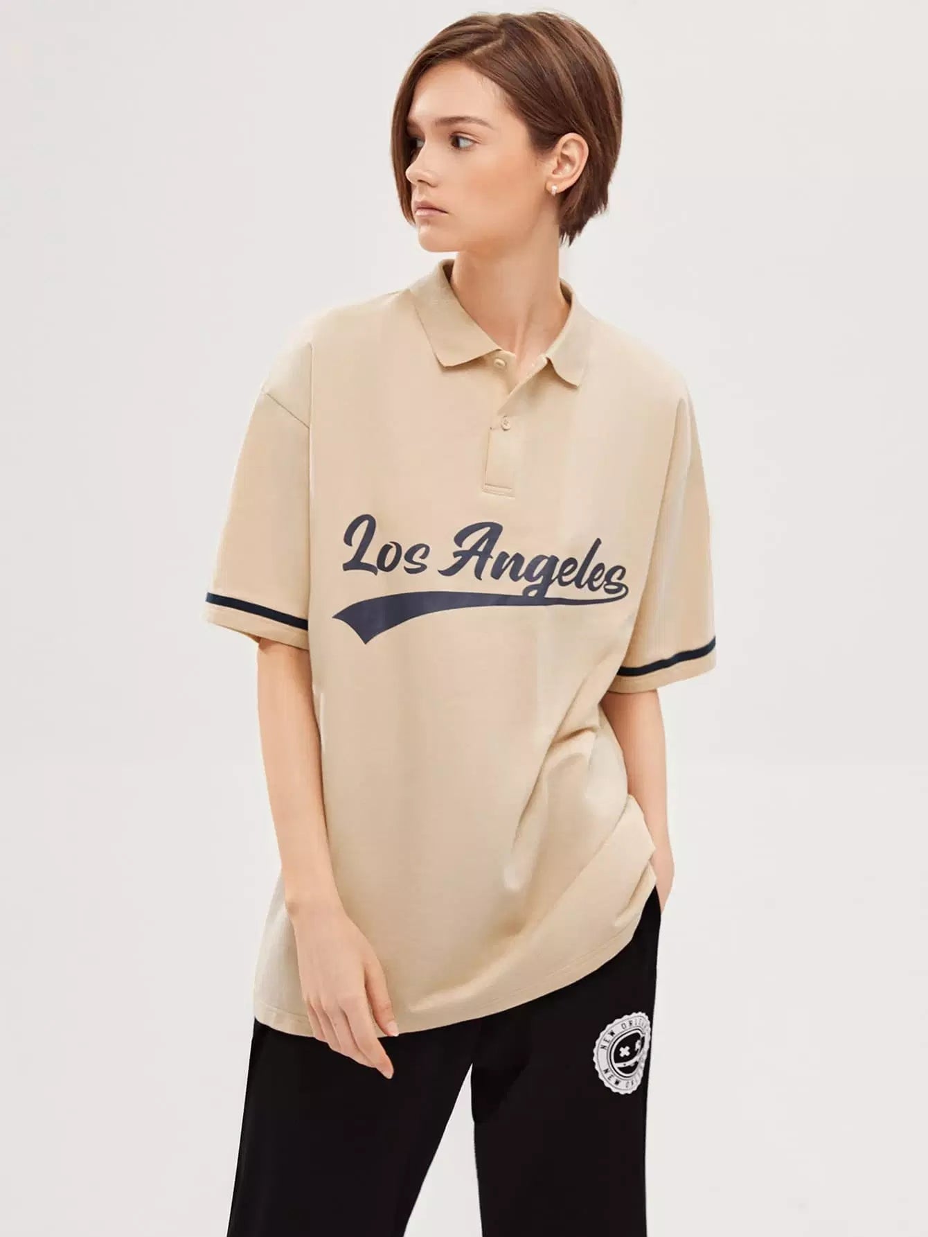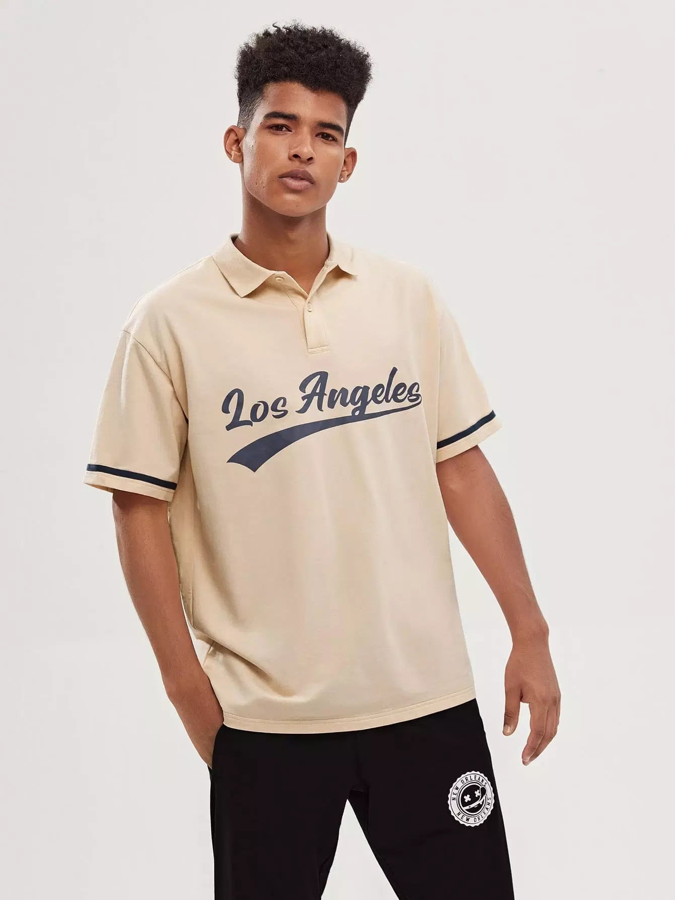 1 قطعة قميص بولو جرافيك برسومات حرف واحد