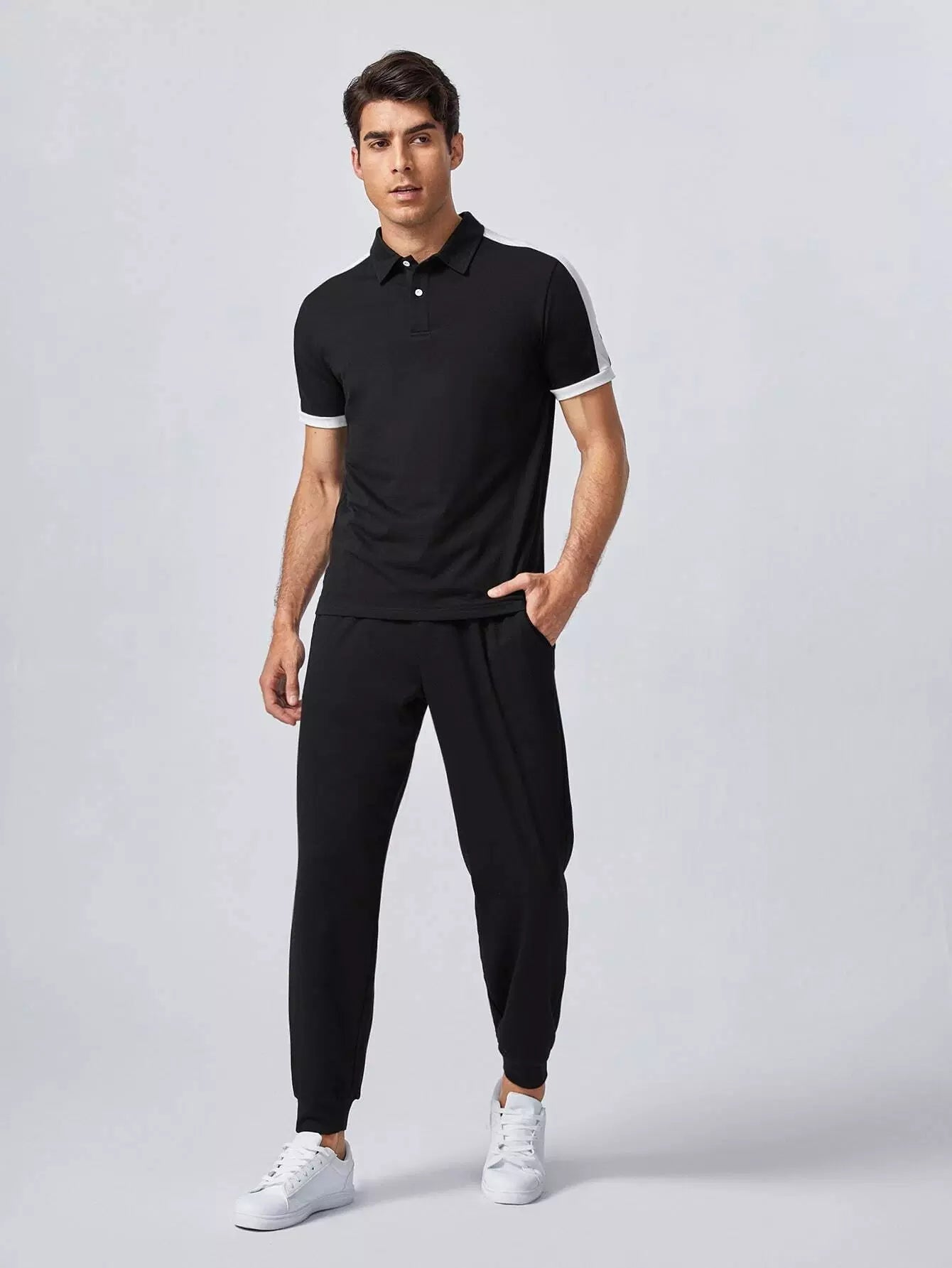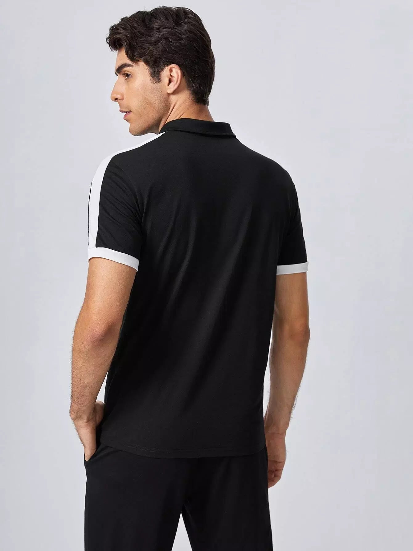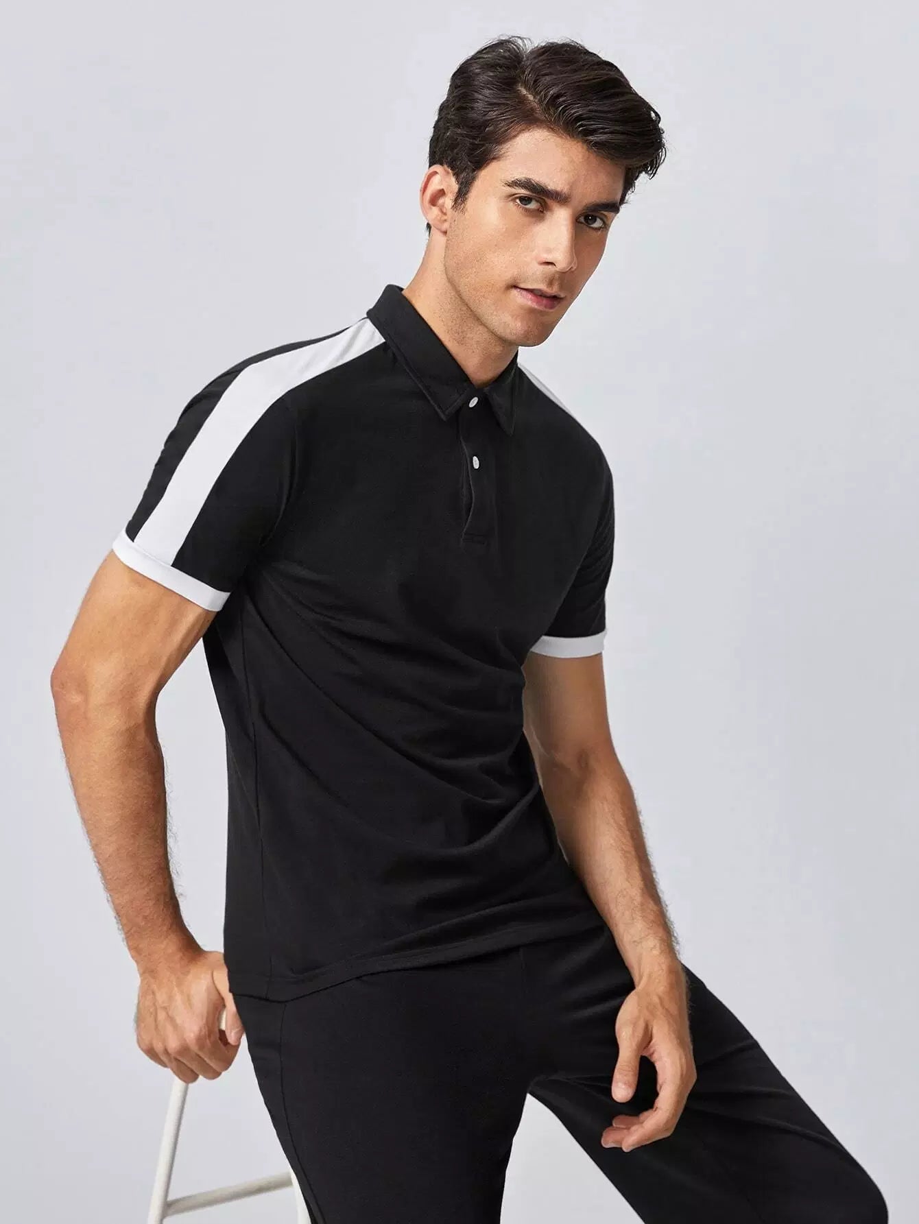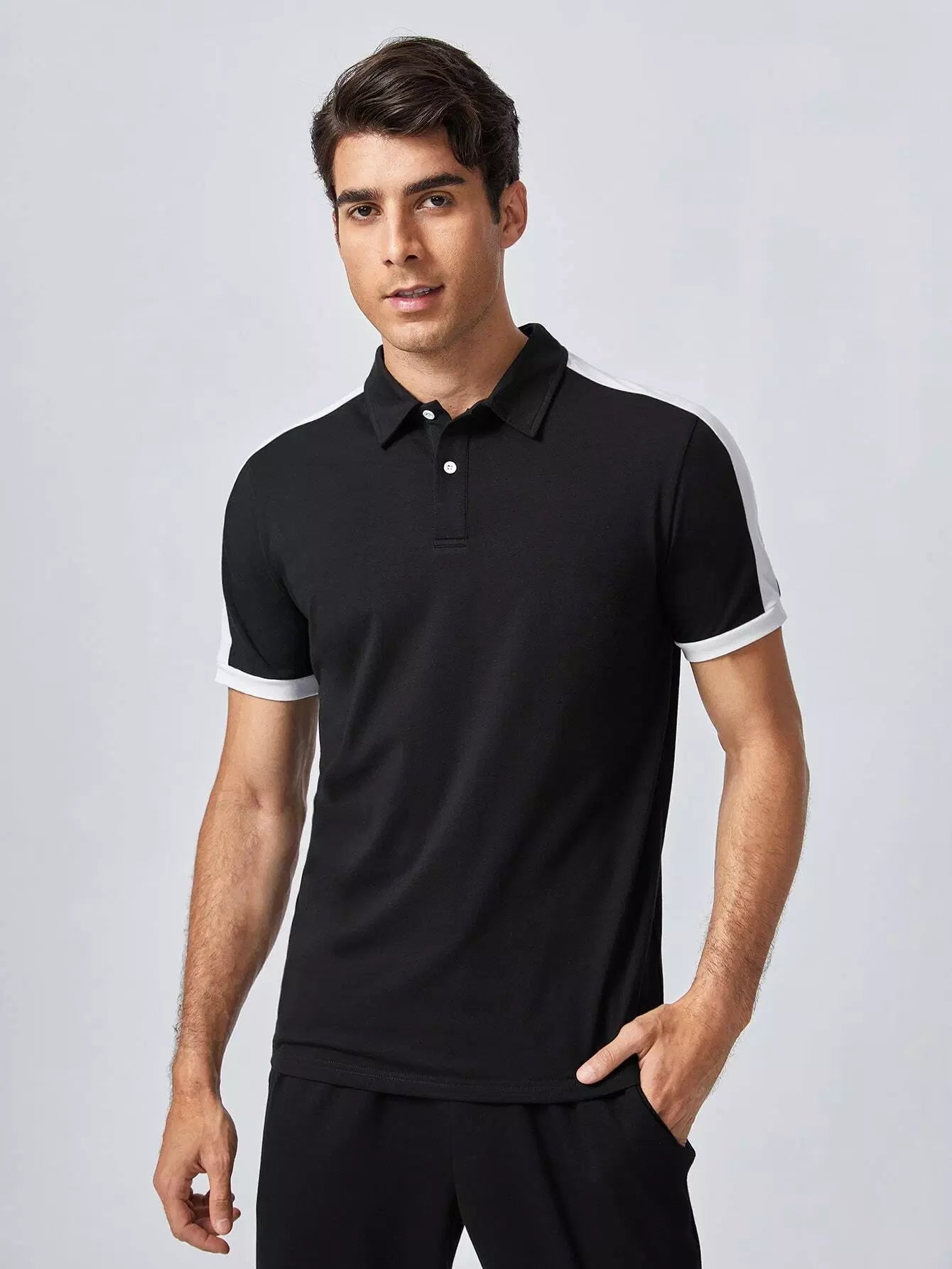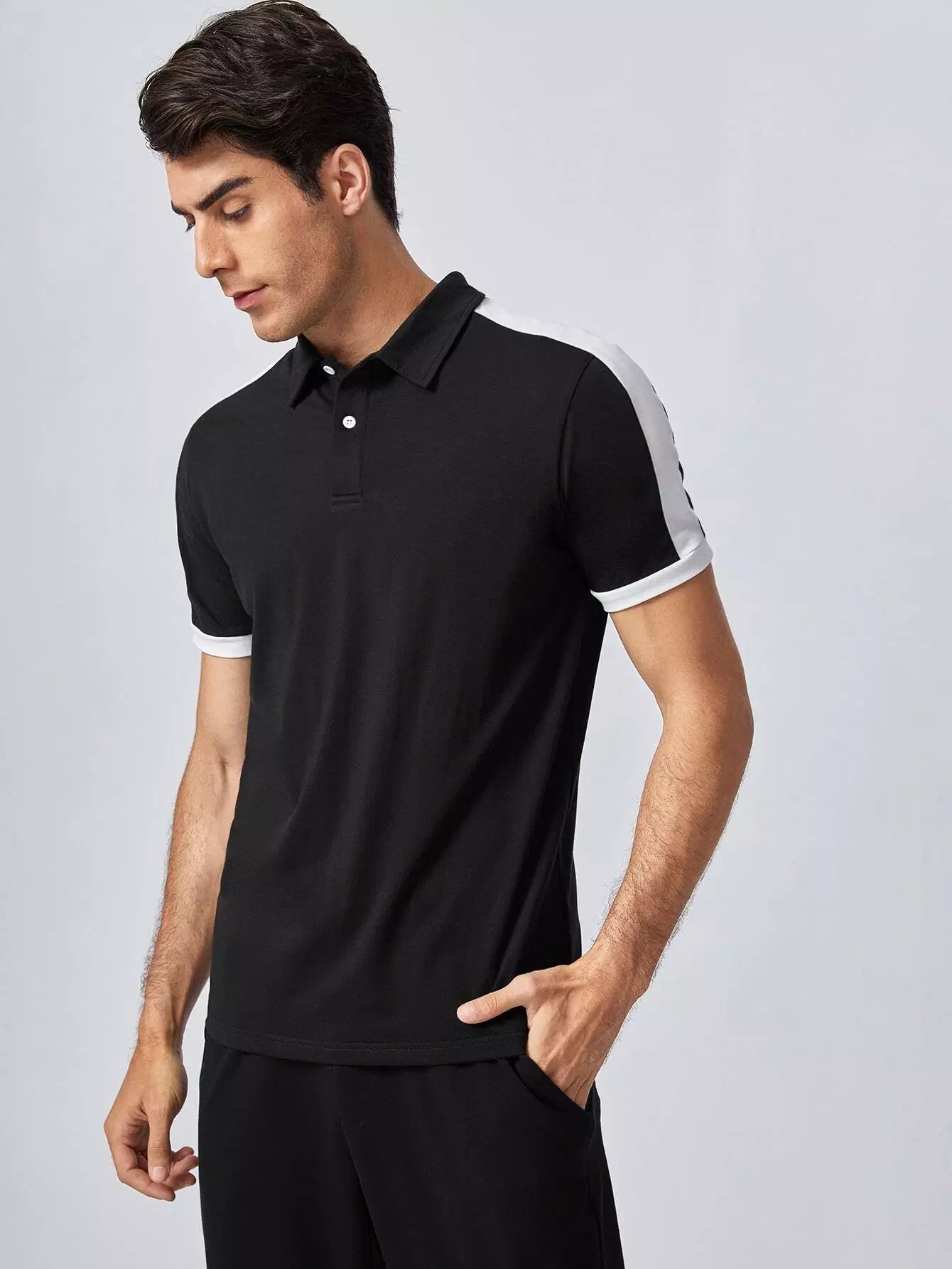 قميص بولو رجالي ذو طبقات جانبية متباينة