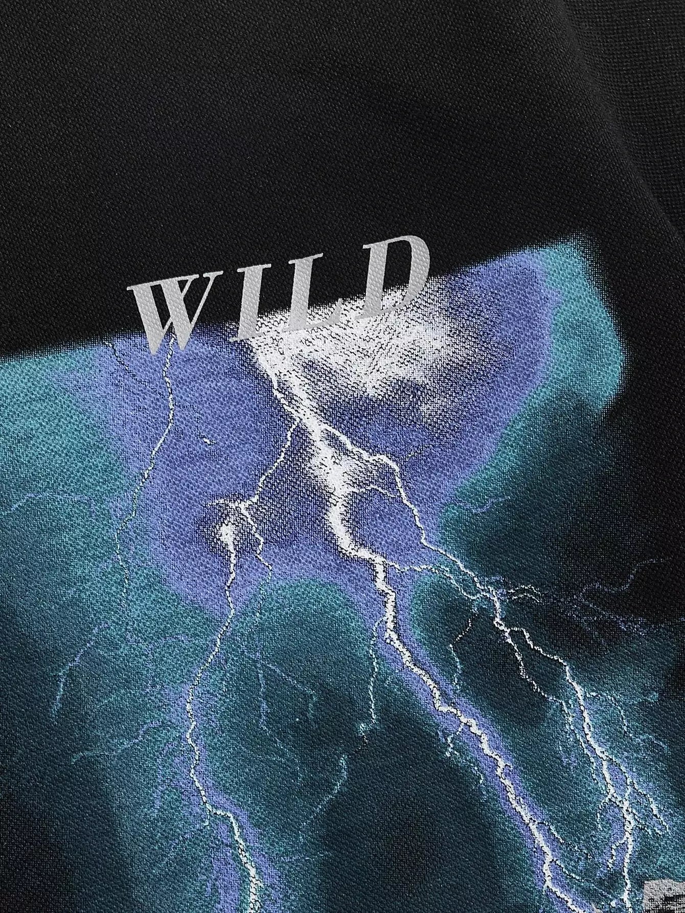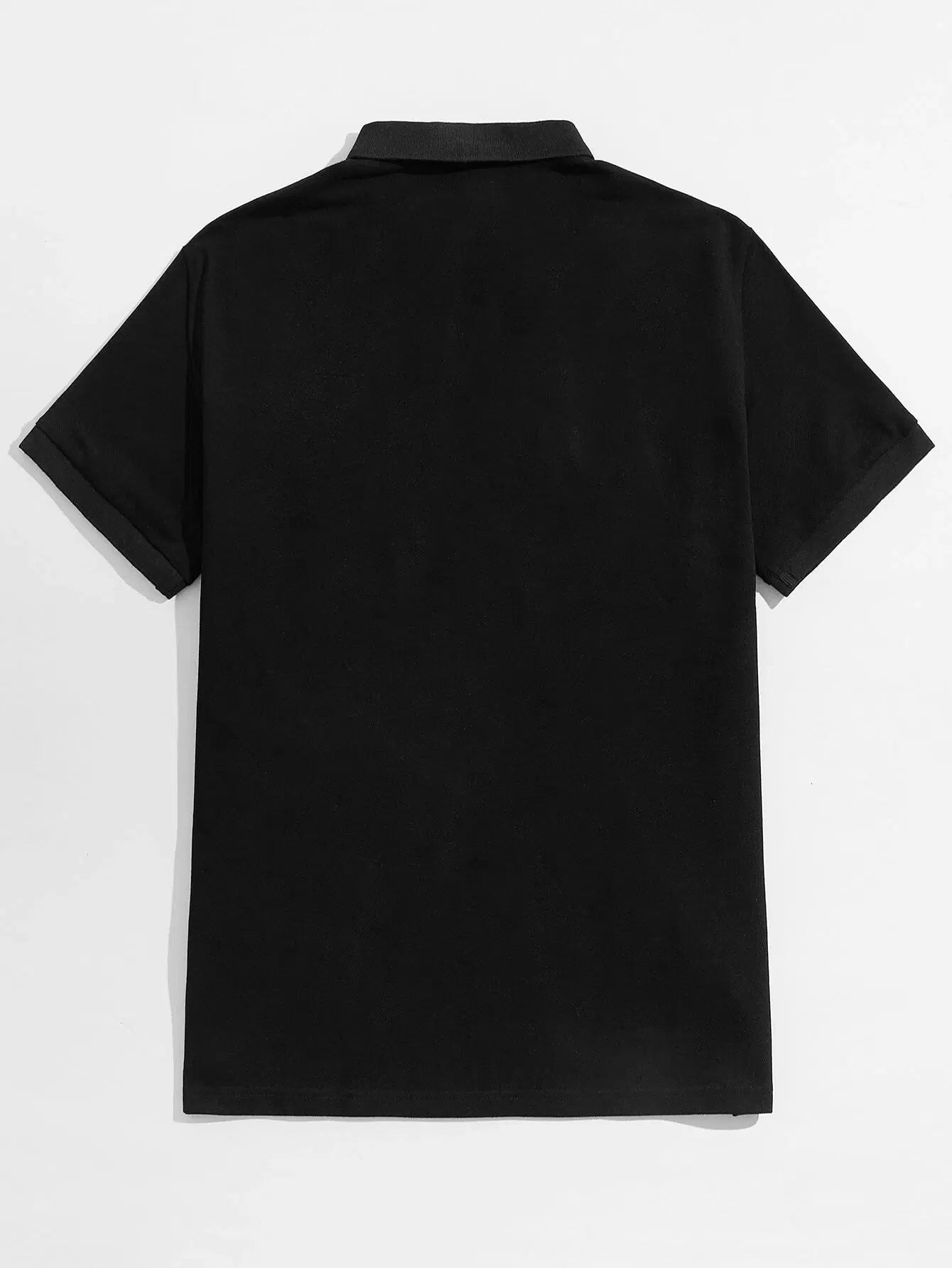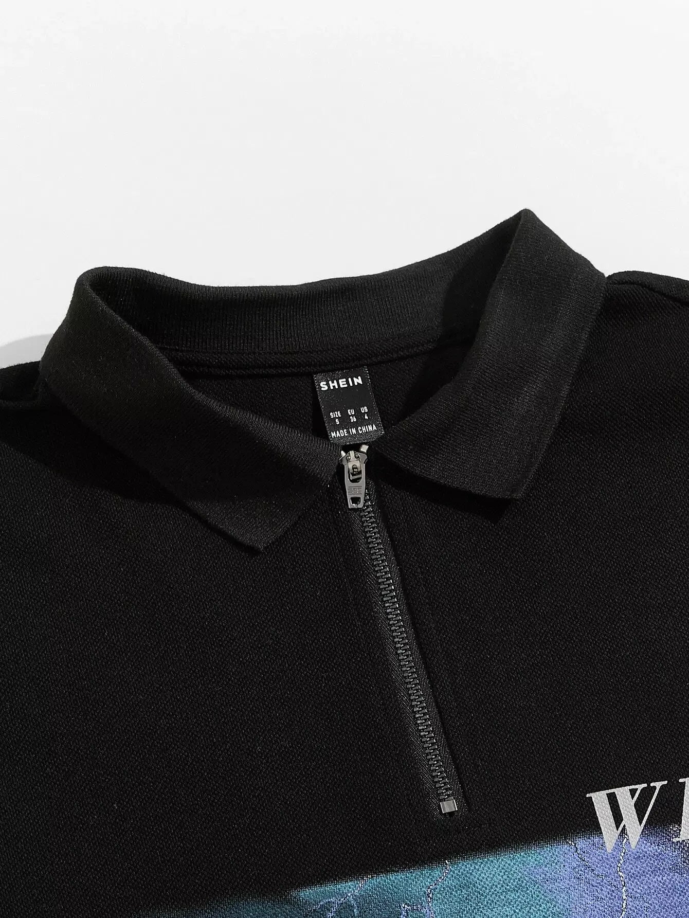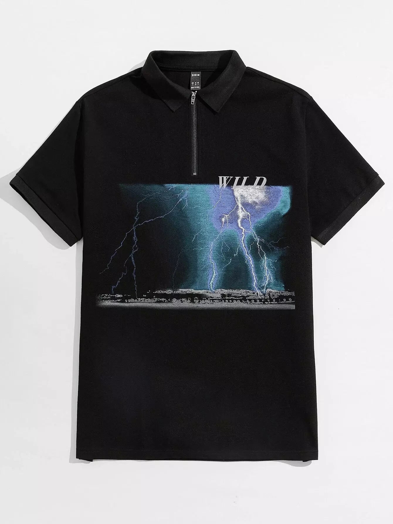 قميص بولو رجالي بنصف سحاب وطبعة حروف وبرق